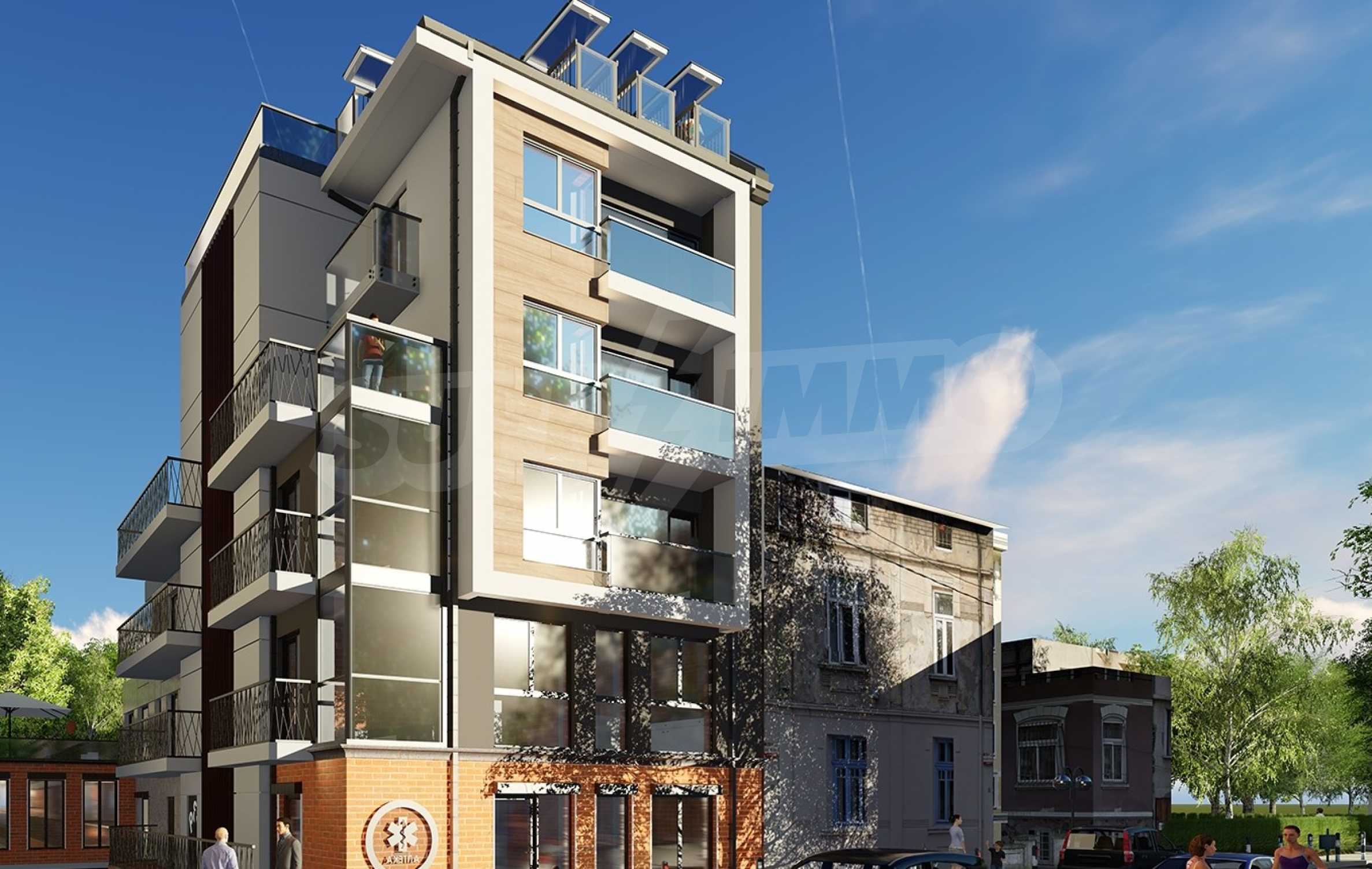 In the building (with an area of nearly 1600 square meters and 5 floors) are designed 2 commercial premises (one can be converted into a two-bedroom apartment with landscaped yard), 7 apartments with one and two bedrooms (with the possibility of combining apartments), garages and parking lots, ensuring the peaceful parking of all residents and 5 basements. High level of energy efficiency, spacious terraces with views, modern vision and low percentage of common areas are some of the priorities in the design of the site. Central heating, a combination of high quality thermal insulation panels and PVC windows, guarantee the comfort of new owners.