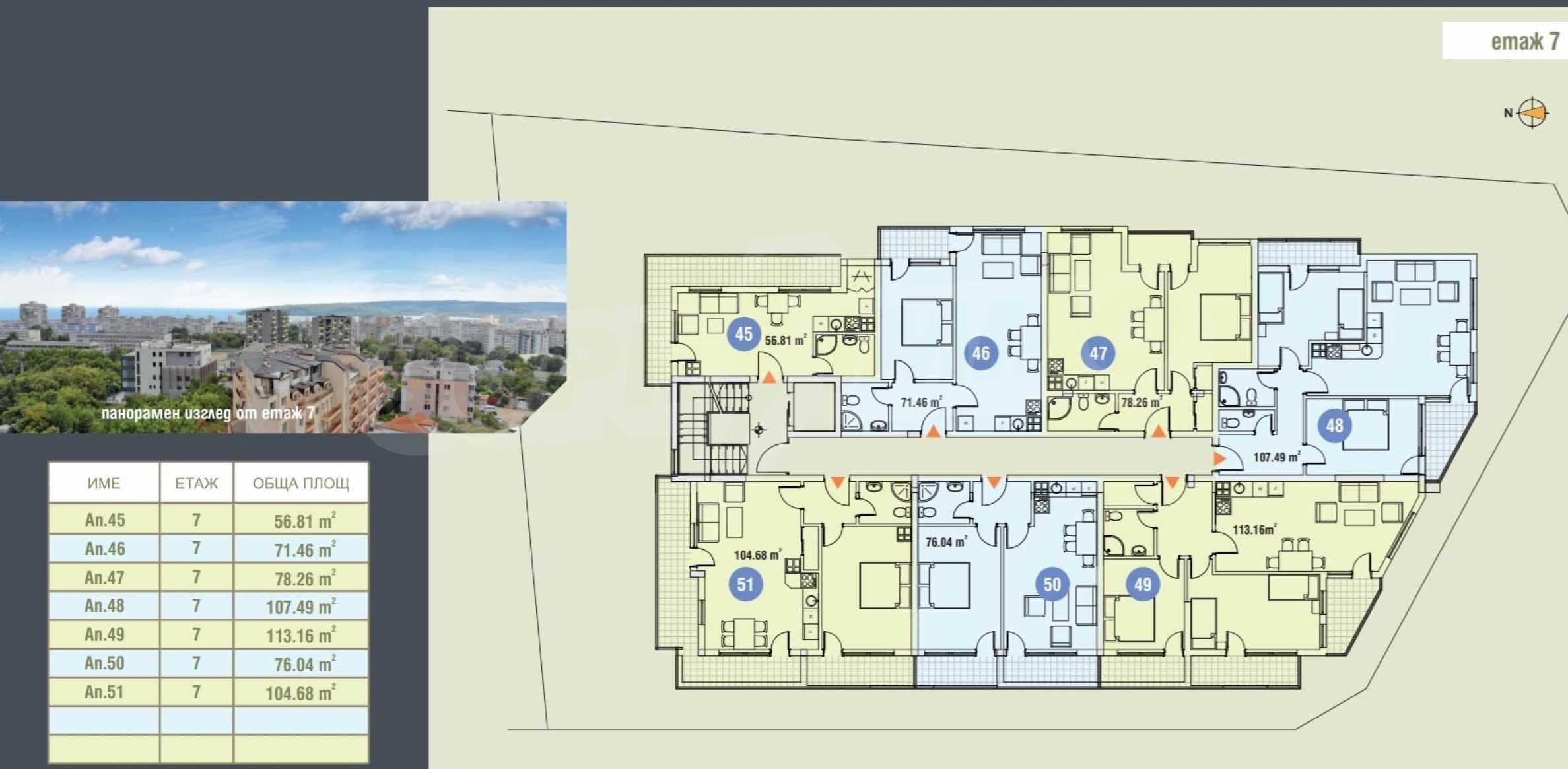 The modern building we present to you is located in one of the most promising areas of Varna, combining the necessary amenities of the city and the benefits of living close to nature. The area is surrounded by forest and has pleasant panoramic views of the city and the sea. Due to the altitude and winds, the air in the neighborhood is proven to be cleaner than in the central part of the city.
