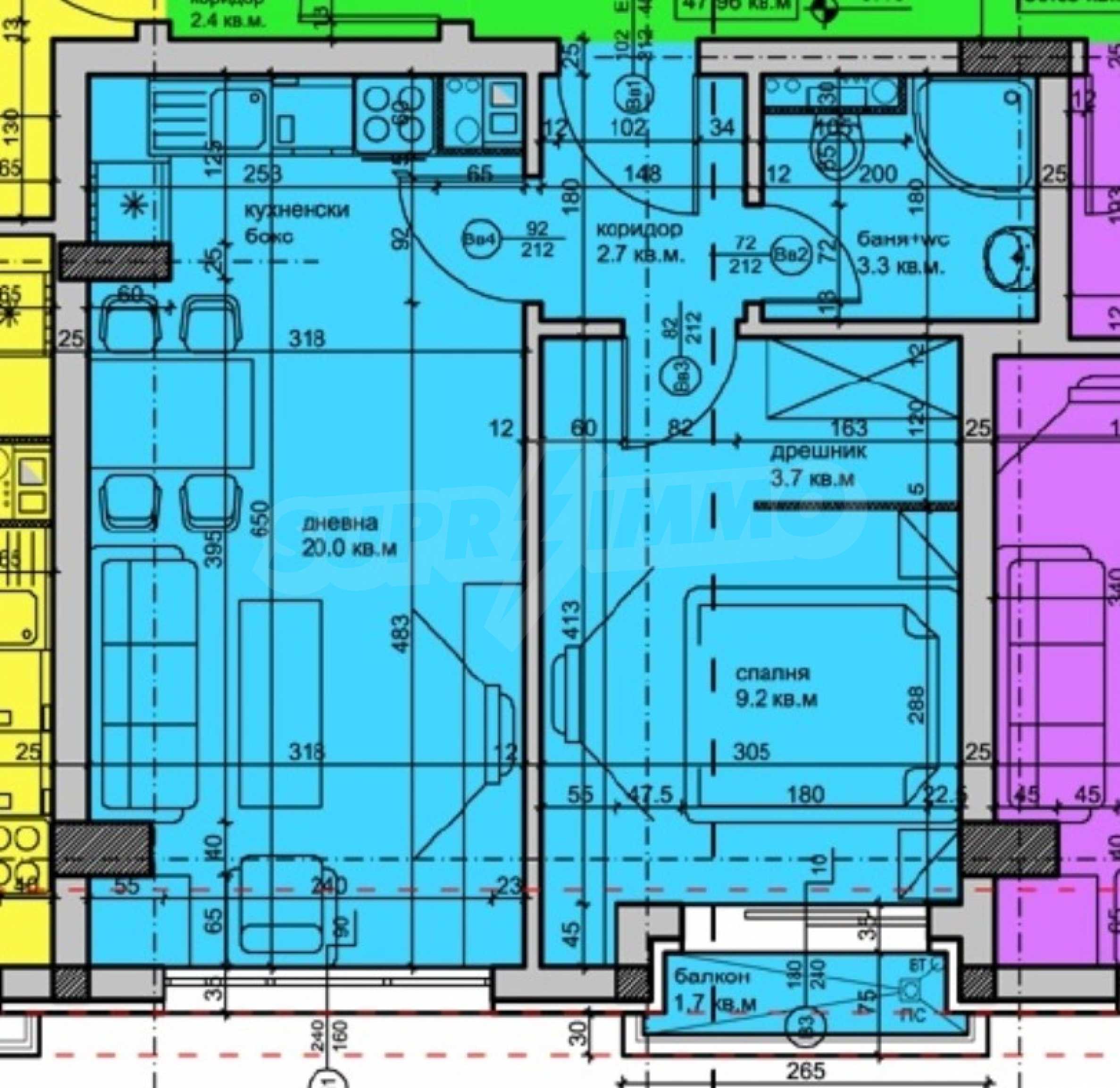 The area has excellent infrastructure, developed communications and transport, quick access to all parts of the city, many kindergartens, schools, parks, medical centers, retail chains and hypermarkets, recreation areas. The neighborhood is preferred because of the well-developed infrastructure, the proximity to the ideal center of Sofia, convenient public transport and metro station.