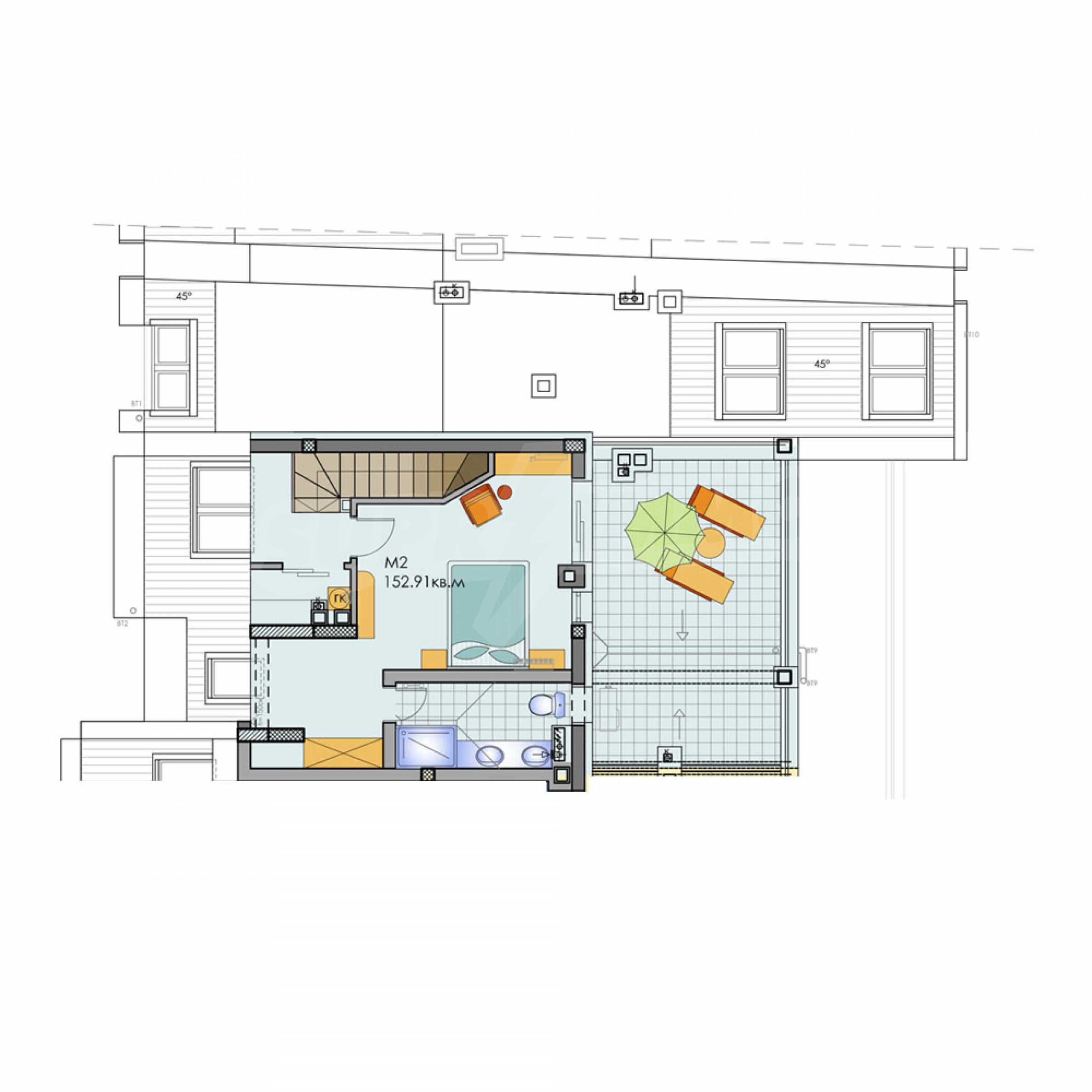 We offer a penthouse on 2 levels in a new luxury residential complex in Vitosha district. Located at the foot of the mountain, the complex reveals panoramic views of Vitosha Mountain. The location provides peace and quiet, while providing quick and easy access to the main roads of Sofia - Simeonovsko Shosse Blvd. and Okolovrasten Pat Str., As well as to Studentski Grad and the city center.