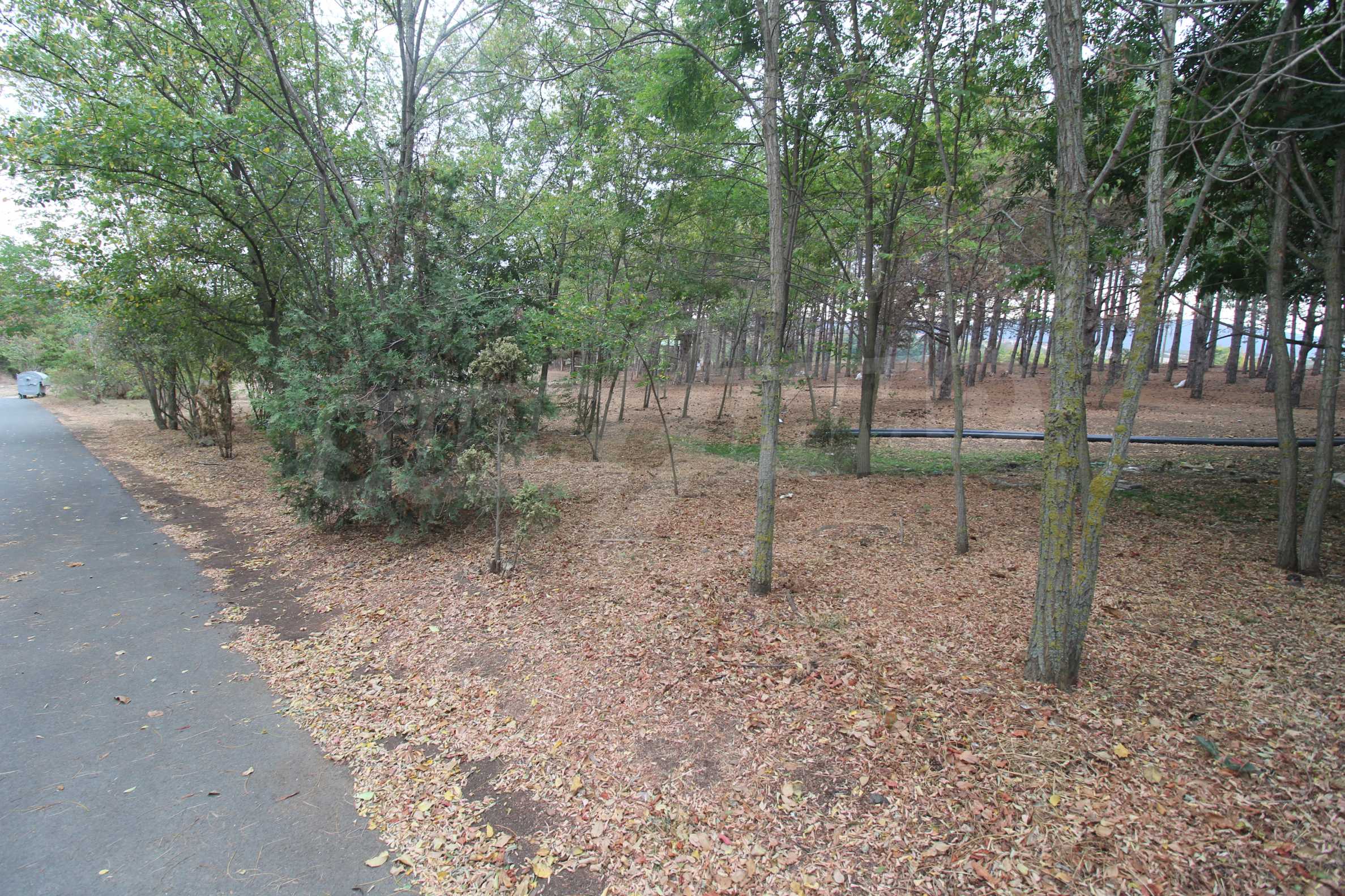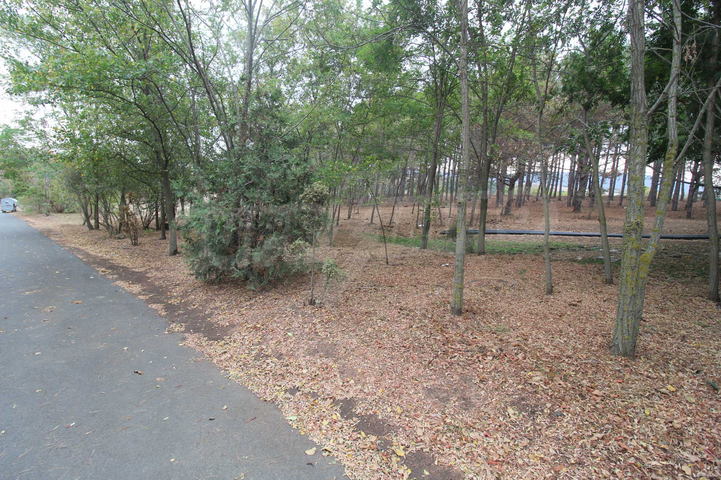 The plot is located in a wooded area and in close proximity to a holiday village with houses.