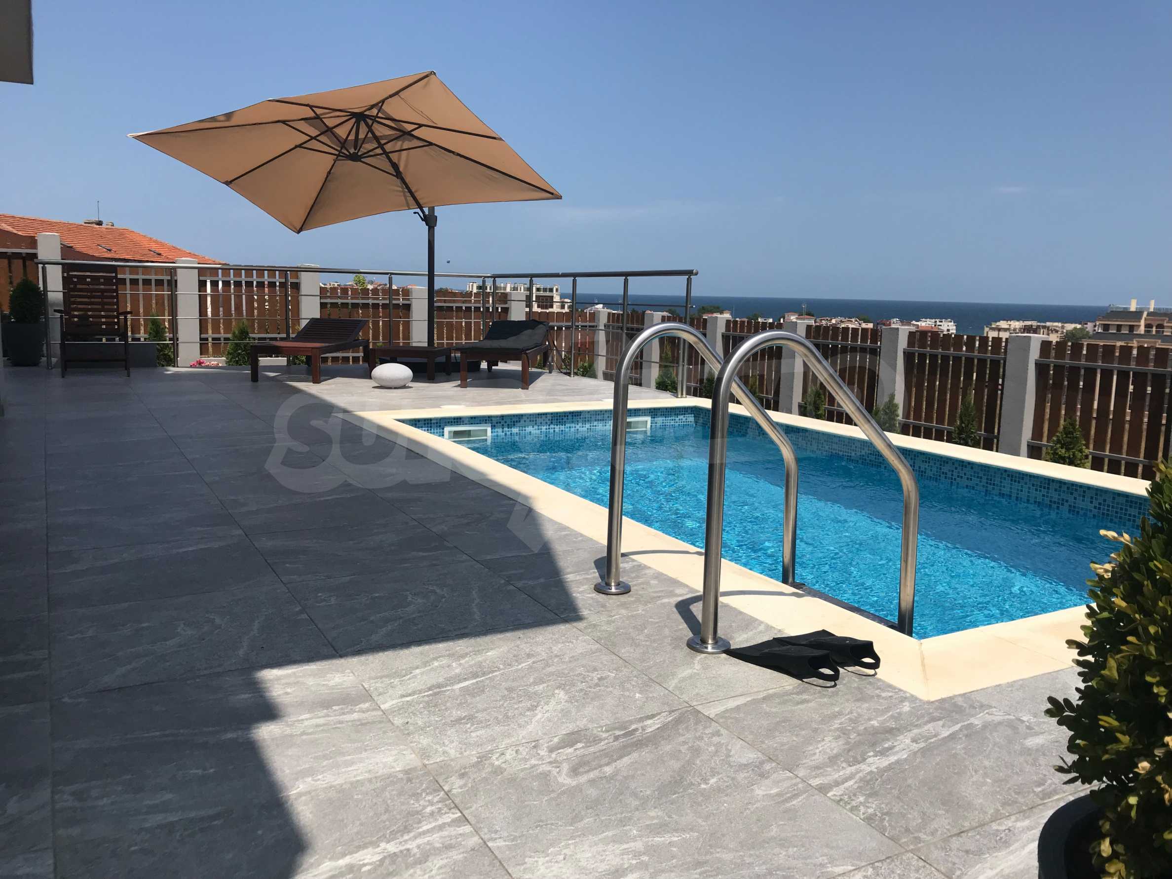 This new house, which we present to you, impresses with its modern vision and views of the sea. The property is newly built, three-story-tall has a swimming pool, and is close to the seashore.