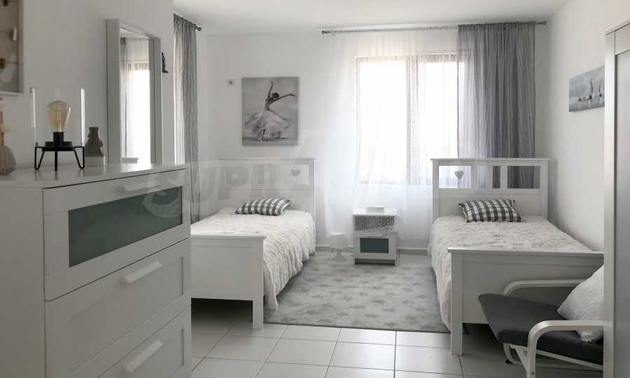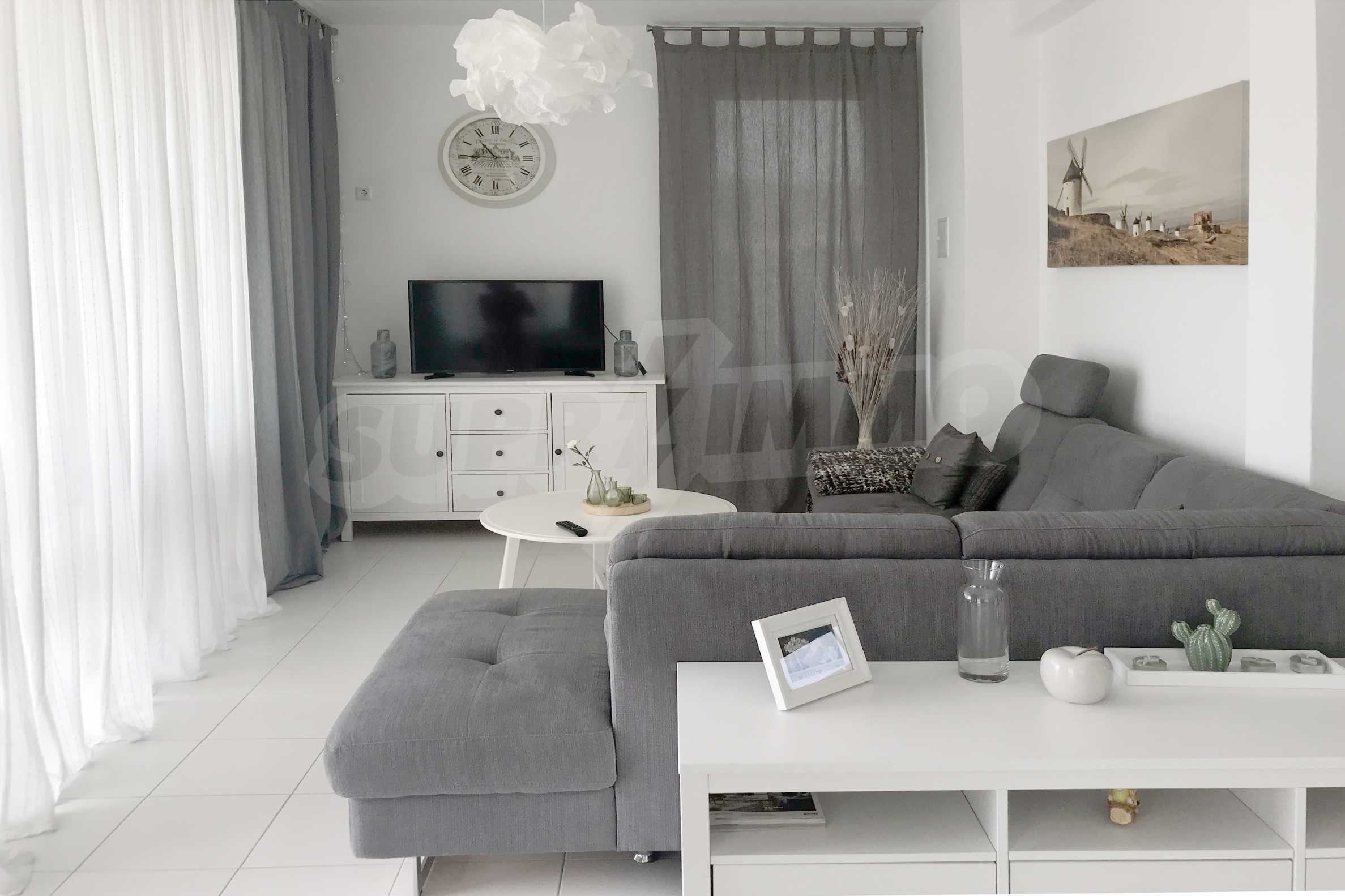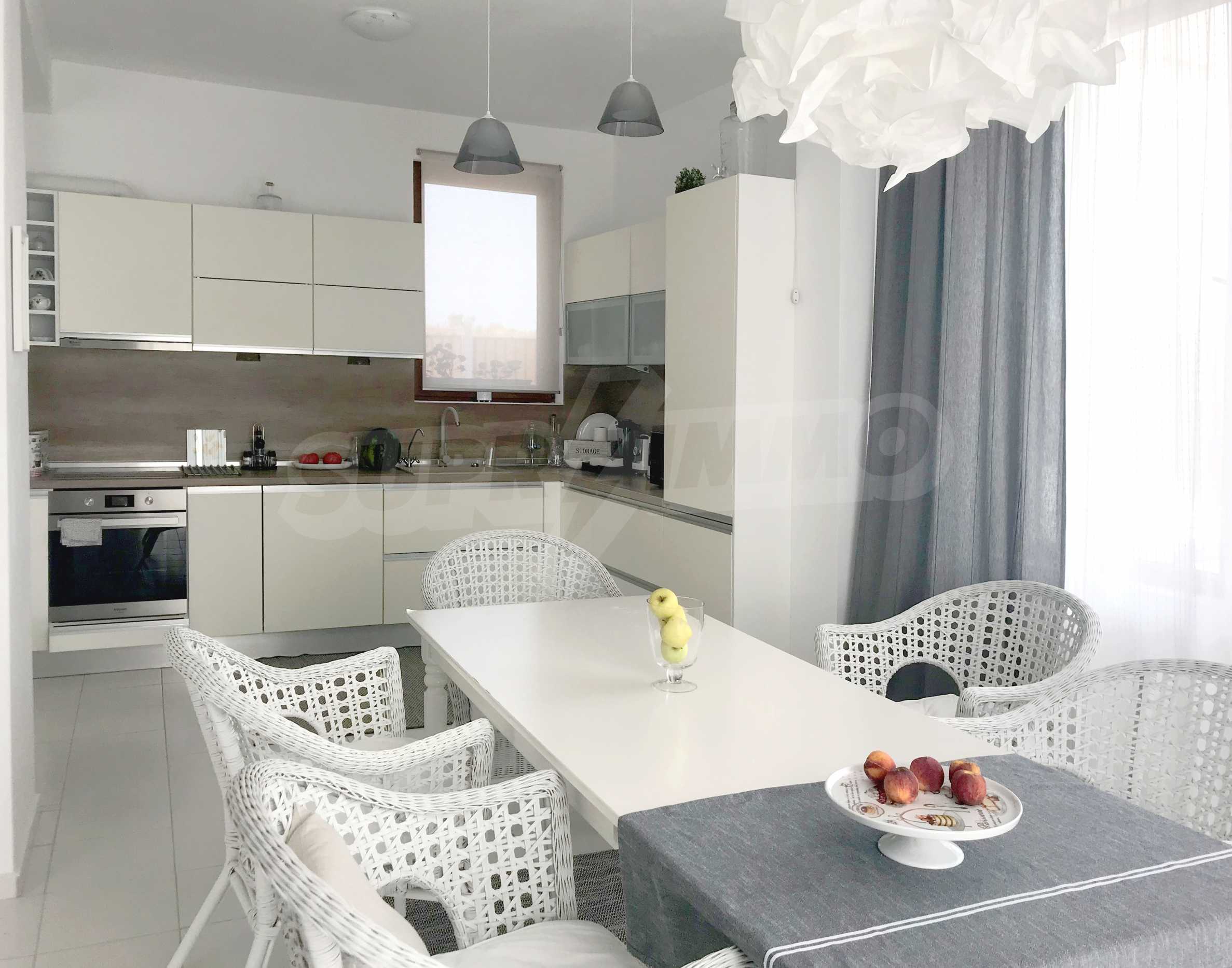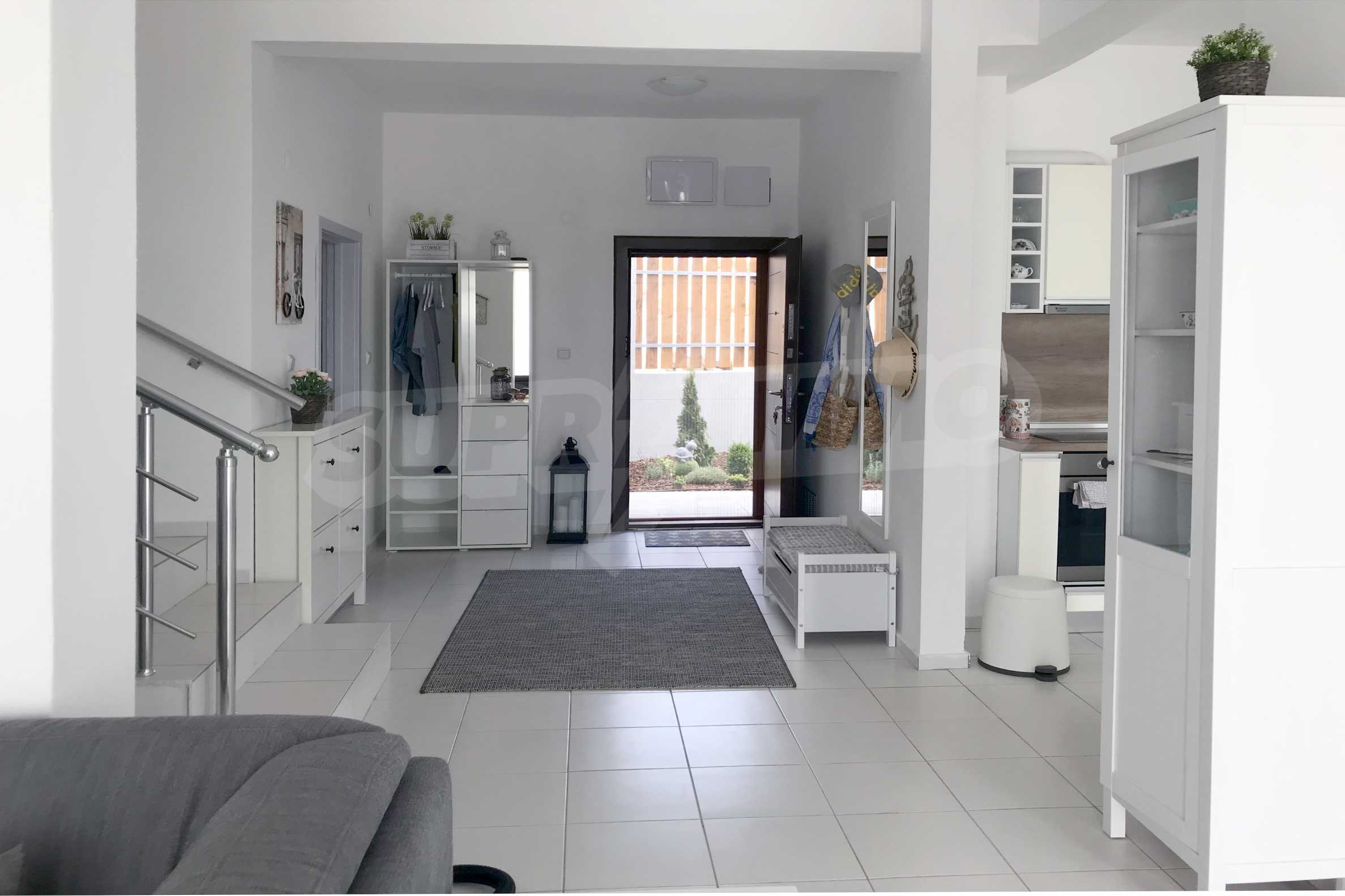 The house is sold fully furnished in pleasant white and gray tones. With cozy, spacious rooms, the property is equipped with all necessities for a modern household: modern kitchen appliances, built-in bathroom systems, high-class furniture, attractive decorations and lightning solutions, stylish design which optimally uses up space and provides plenty of natural light.