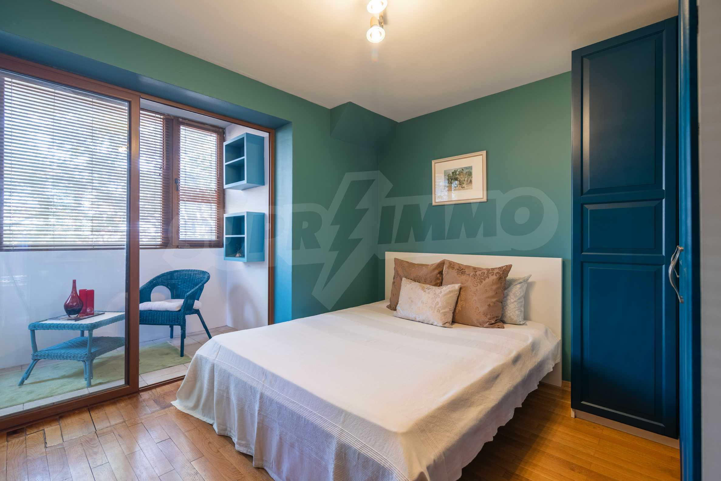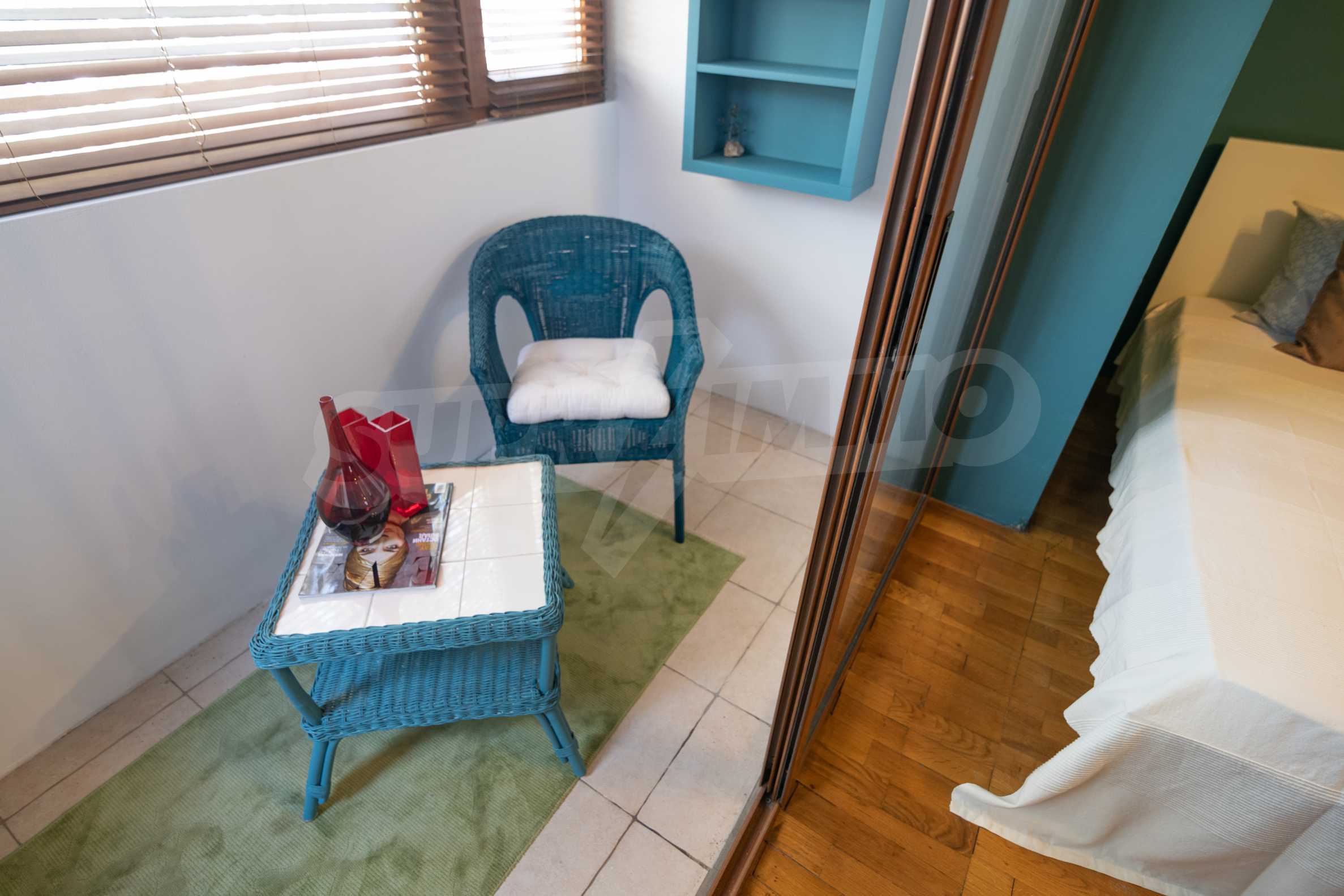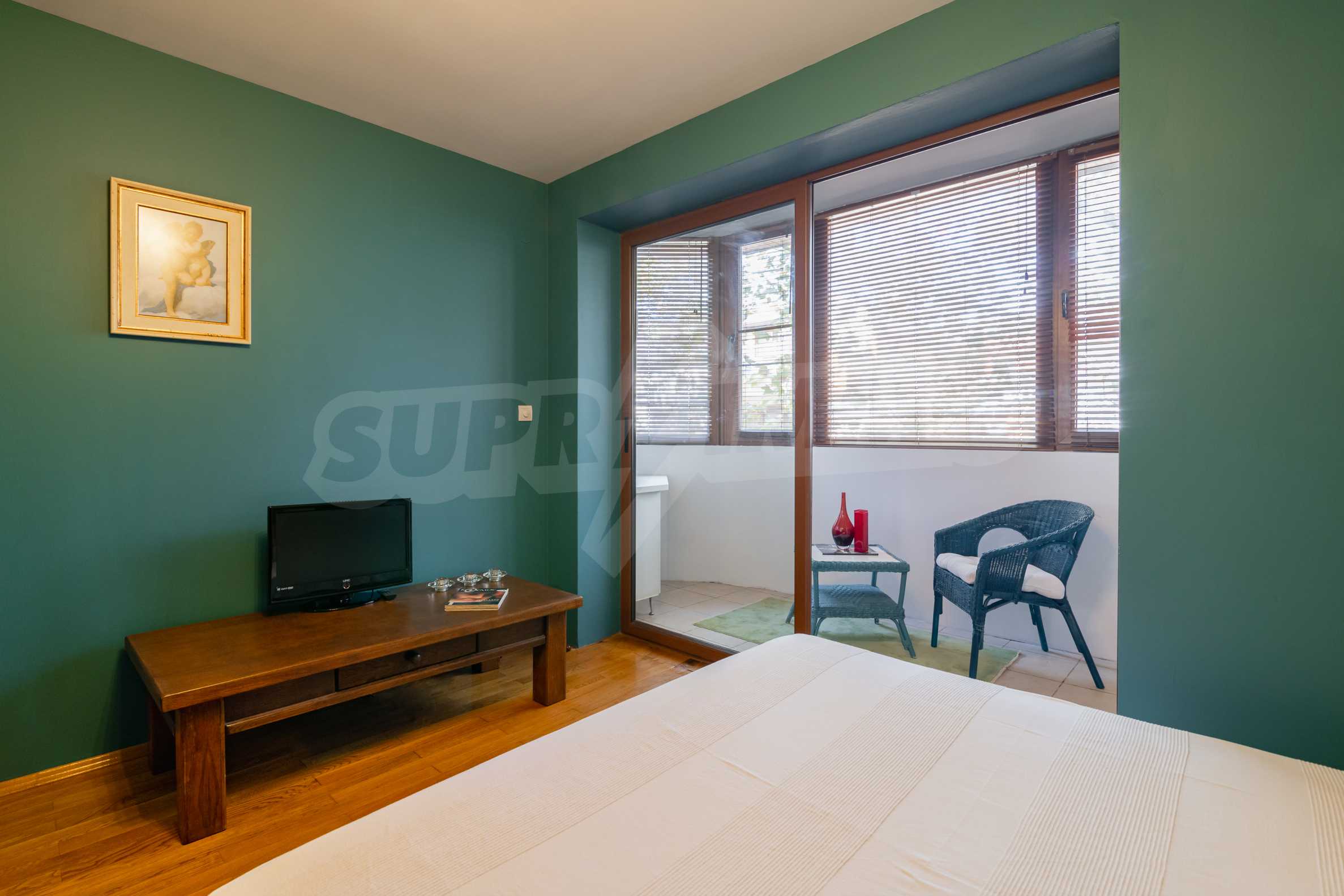 - The blinds in the bedroom are wooden.