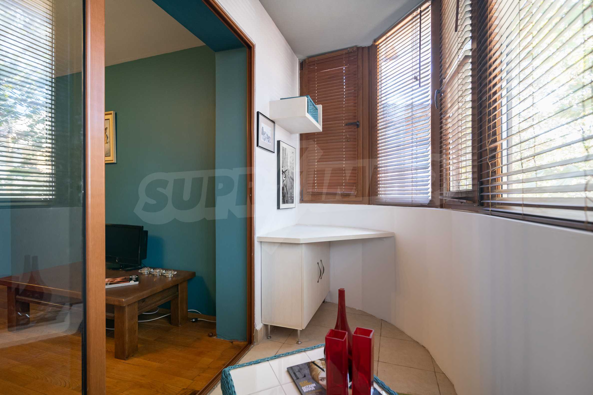 - There is a work area with a desk on the glazed balcony to the bedroom.