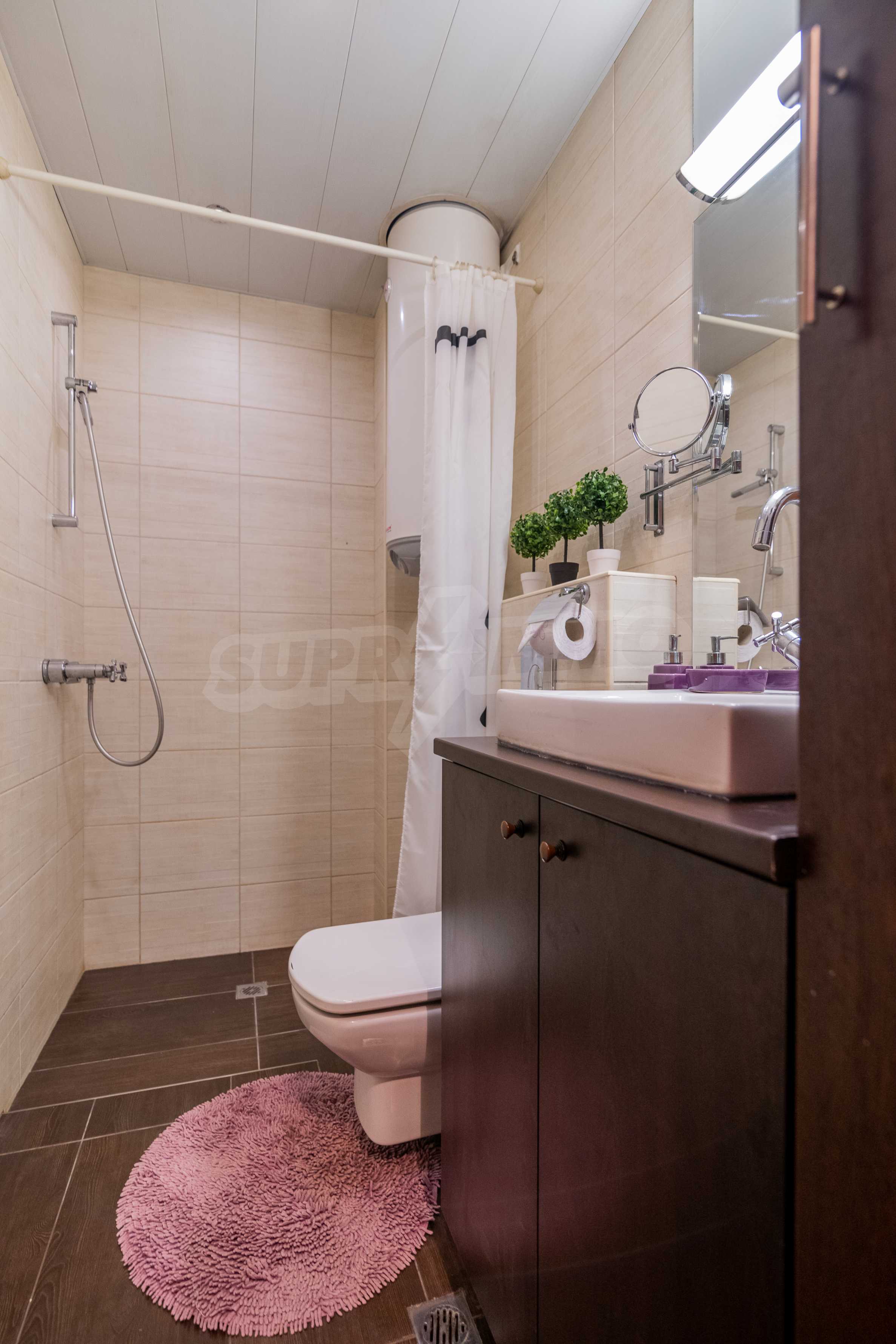 - The toilet and the bathroom are in one room, a boiler is used for water heating.