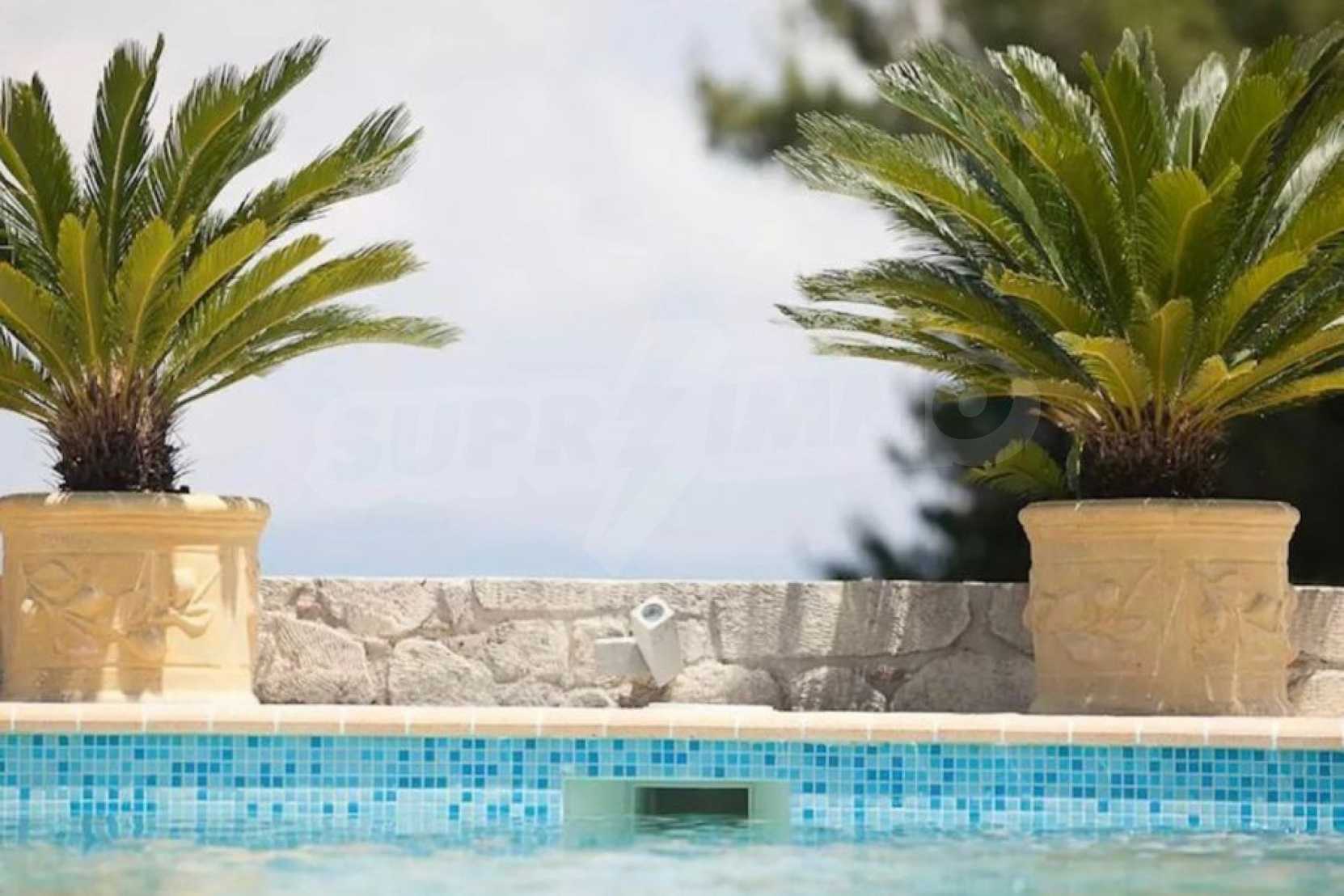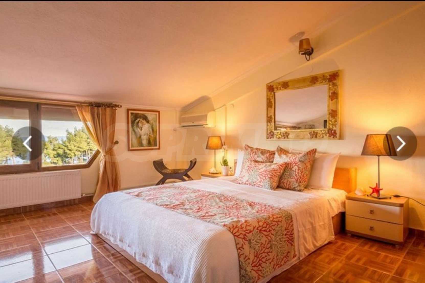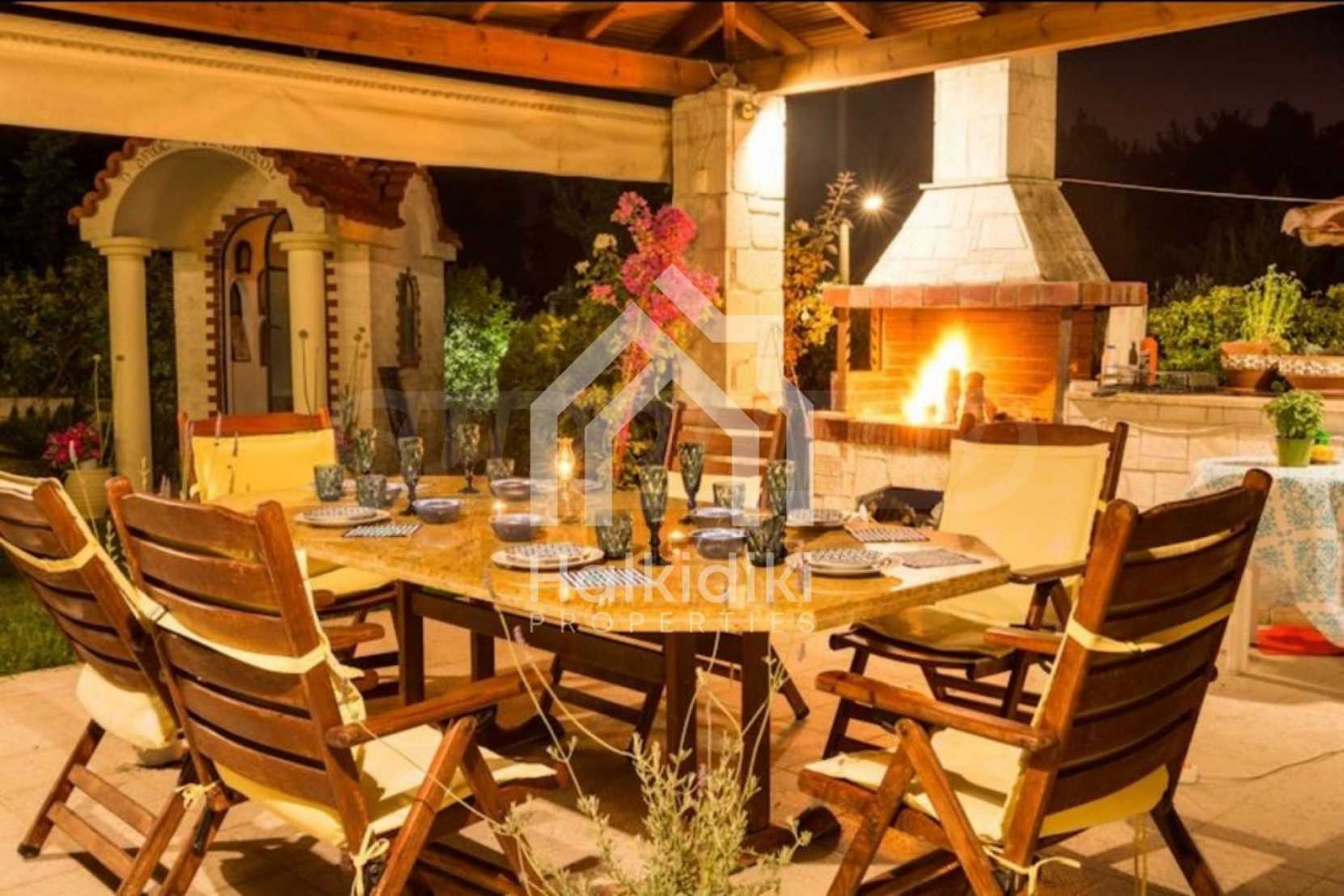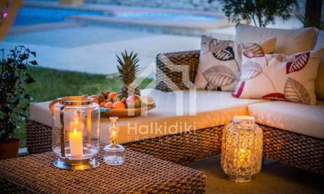 Three-storey detached house, in a residential complex, in Kassandra, Halkidiki, with private pool and magical sea. The property is surrounded by an acre of garden, it was built in 2010 and the renovation took place in 2019. On the ground floor there is the living room connected with the dining room and the kitchen and a wc. On the first floor there are two bedrooms with shared bathroom and on the second floor there is a master bedroom 35 m². The house has big balconies, wooden joinery, kiosk, barbecue, security door, fitted closet and kitchen.