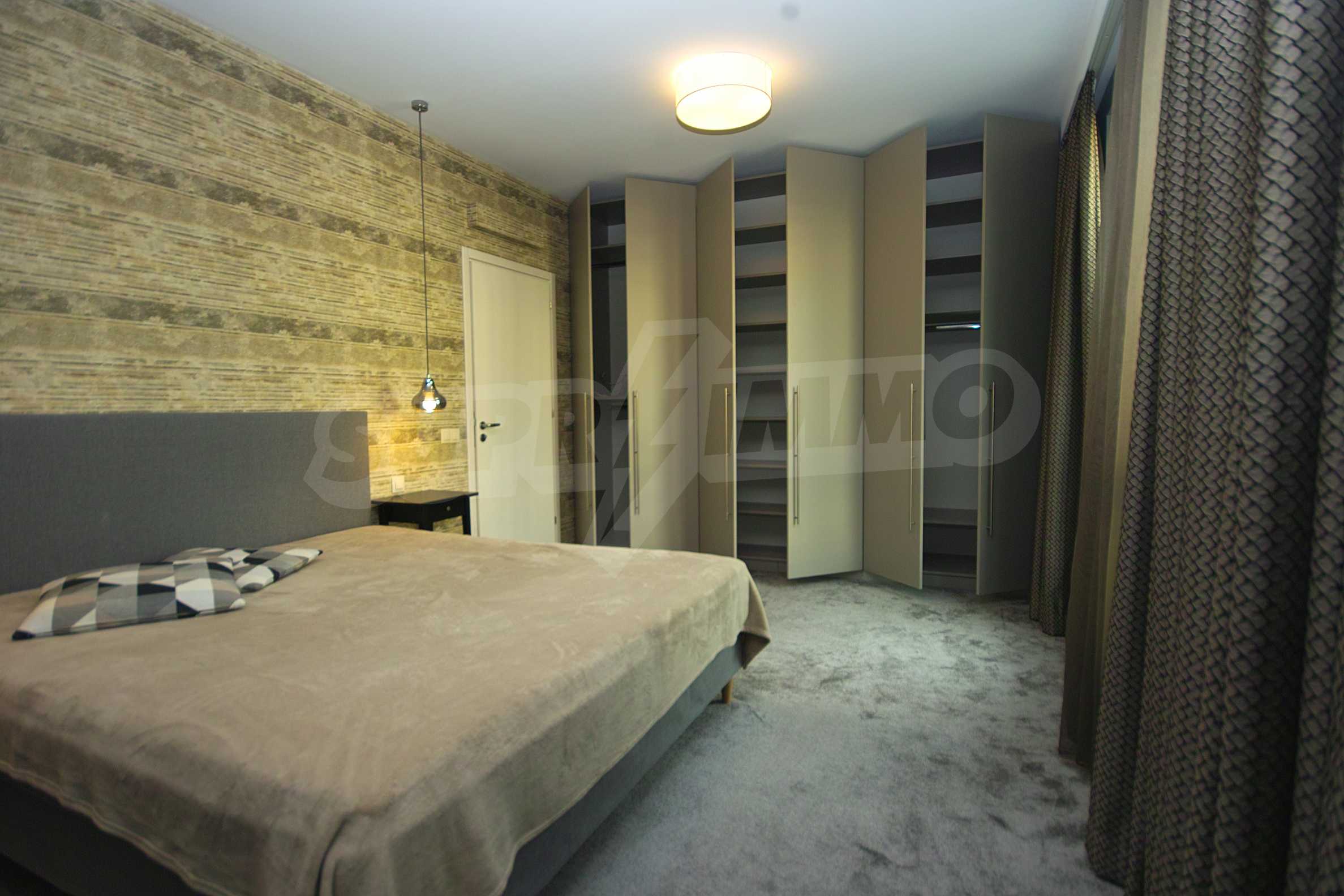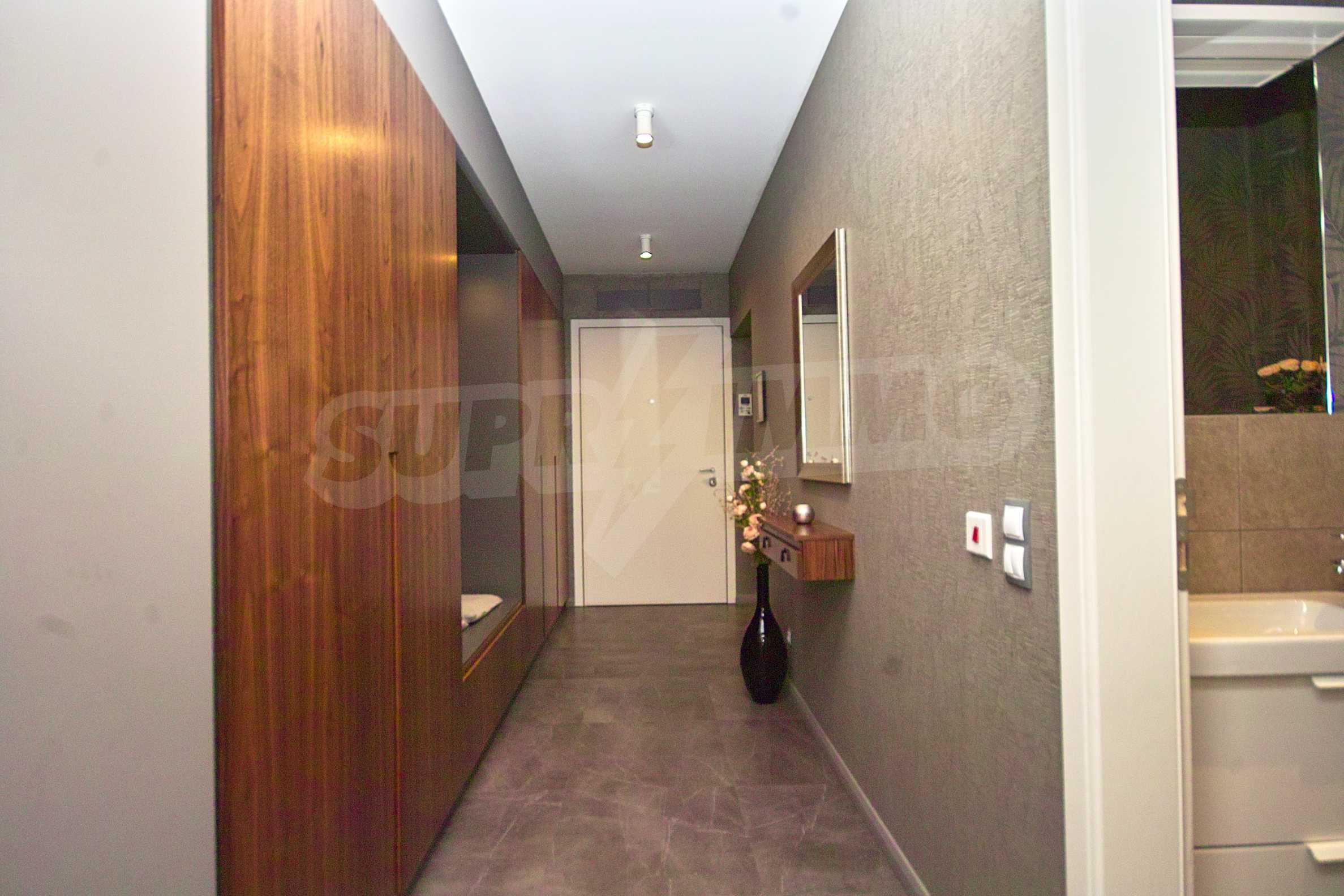 The heating and hot water are with central heating. The apartment is brand new, fully furnished and equipped with everything a household needs, including the highest class appliances and designer furniture. It is wired for security system, internet and cable TV. The windows are high class, with triple glazing and maximum degree of insulation.