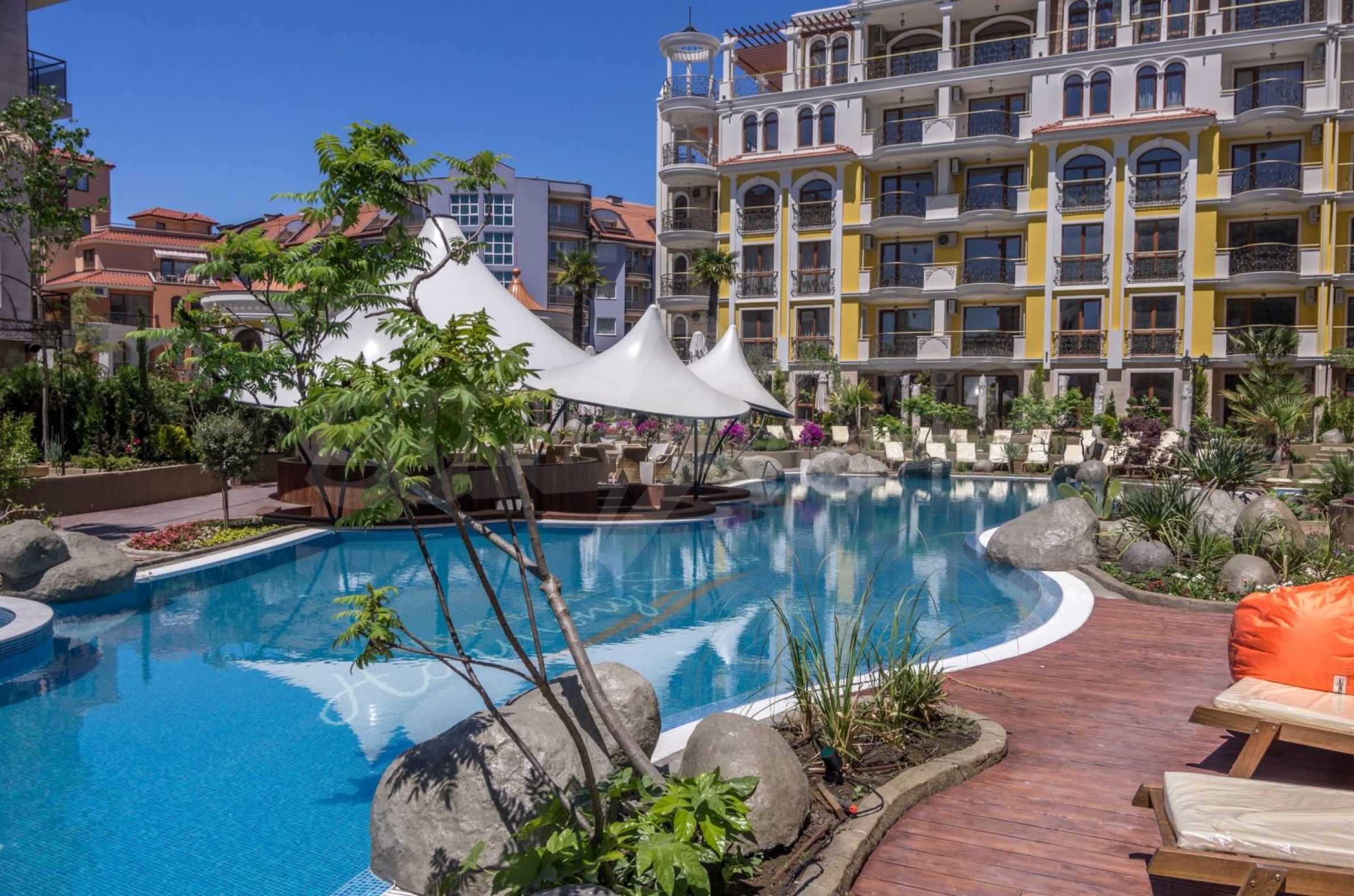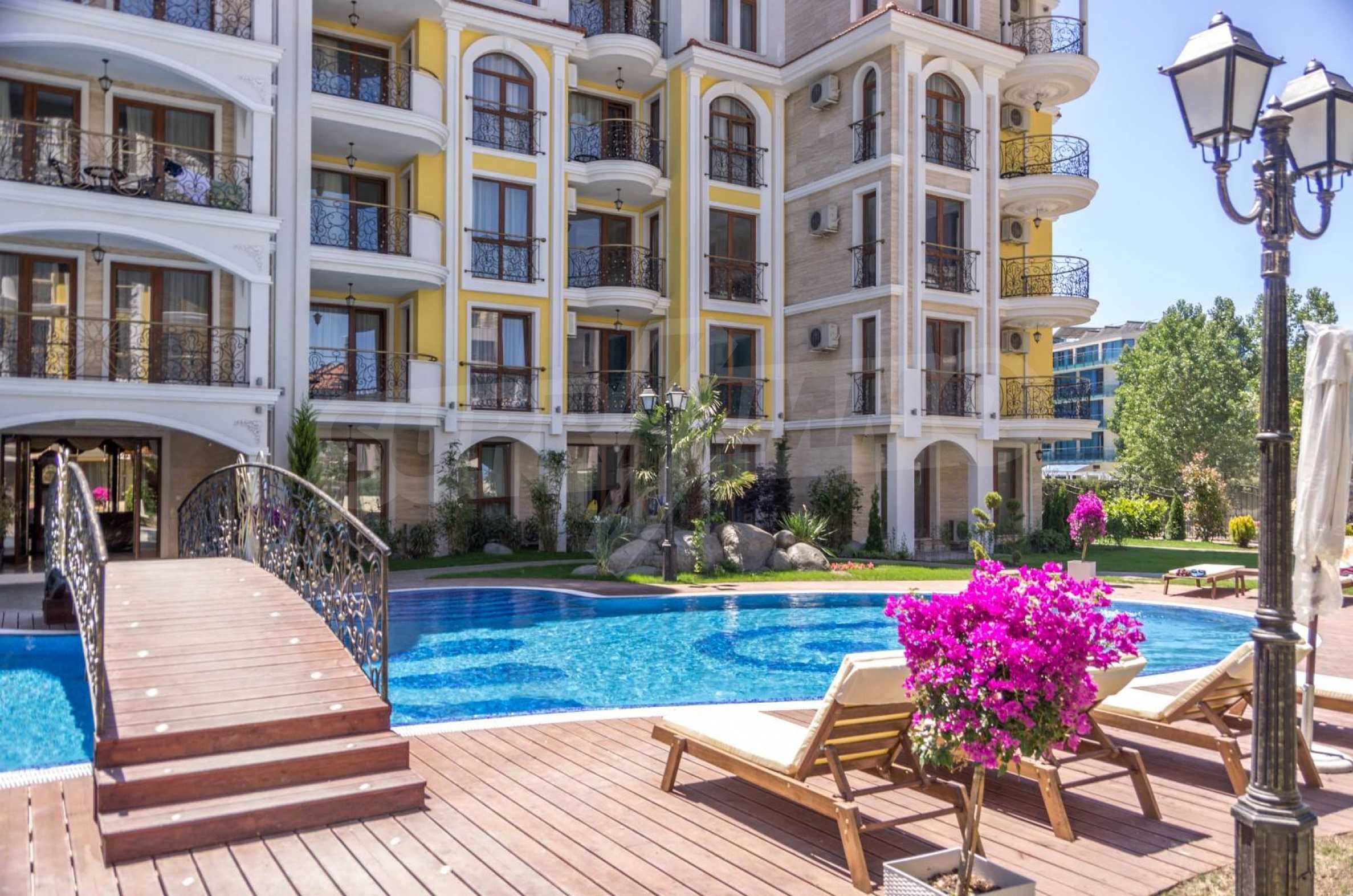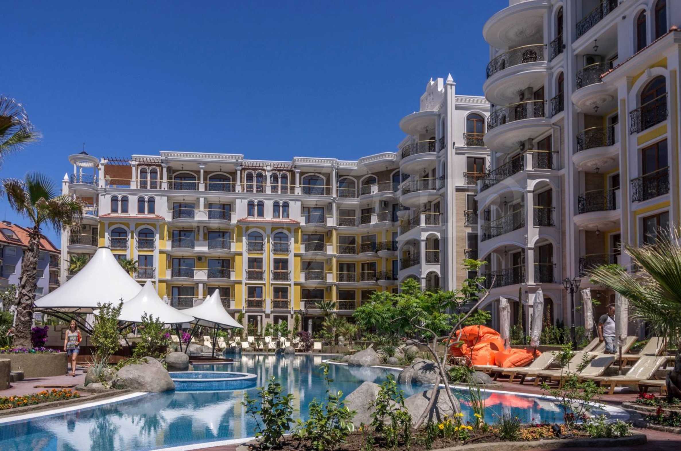 The apartment of 60.72 m2, which we present for sale, is located on the 5th floor in an elite complex, only 300 meters from the beach of Sunny Beach.