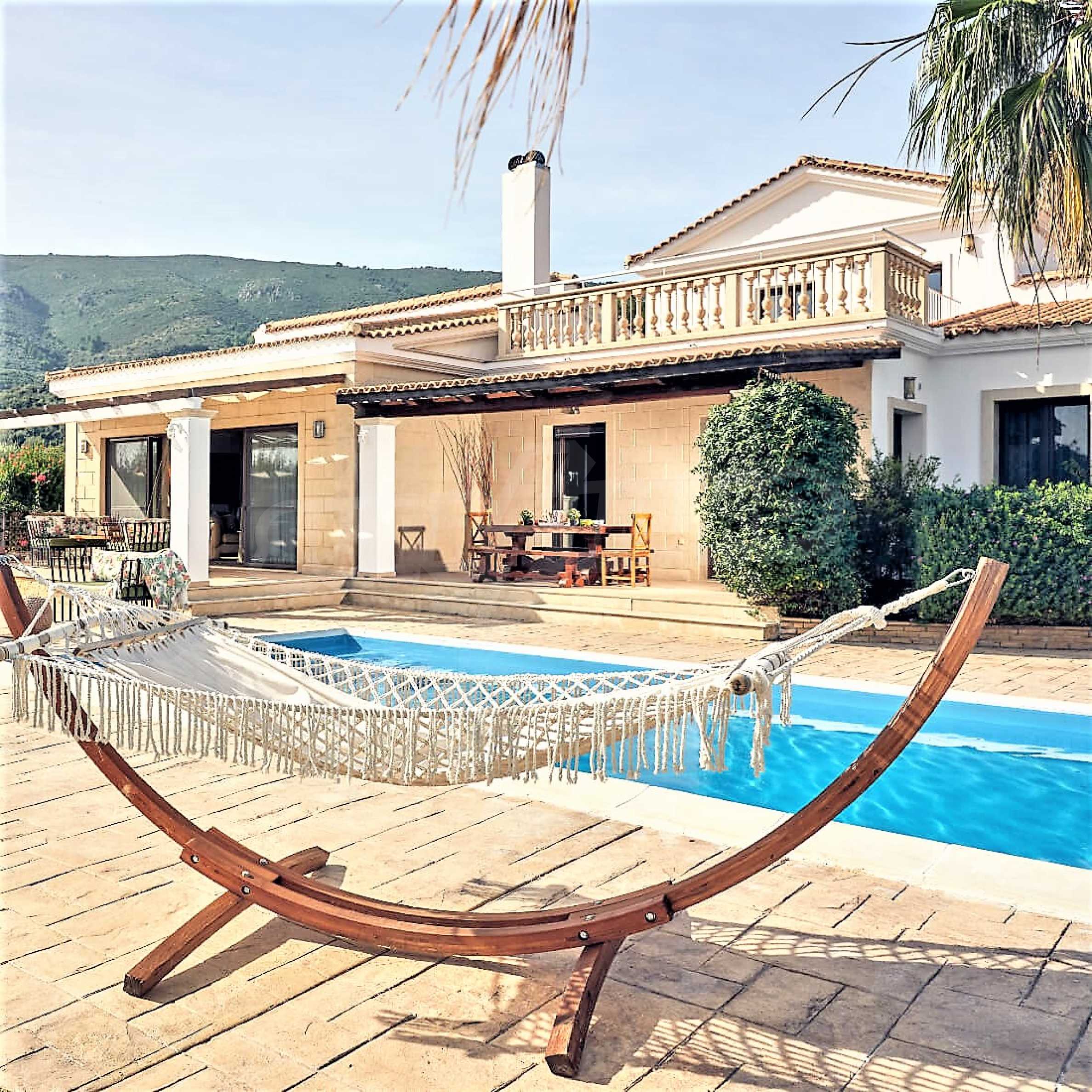 This is an extremely luxurious property with a beautiful garden and pool, as well as endless sea views. The villa is built on two levels and consists of 4 bedrooms, 4 bathrooms, 2 living rooms and a spacious kitchen, spacious terraces and verandas, a summer kitchen and outdoor seating areas. The property is located on top of a private hill with unobstructed views of the Ionian Sea, secluded in the untouched, pristine natural environment, but also close to Lagana, where you will find everything you need, shops, typical restaurants and taverns, but also modern bars, clubs and cafeterias.