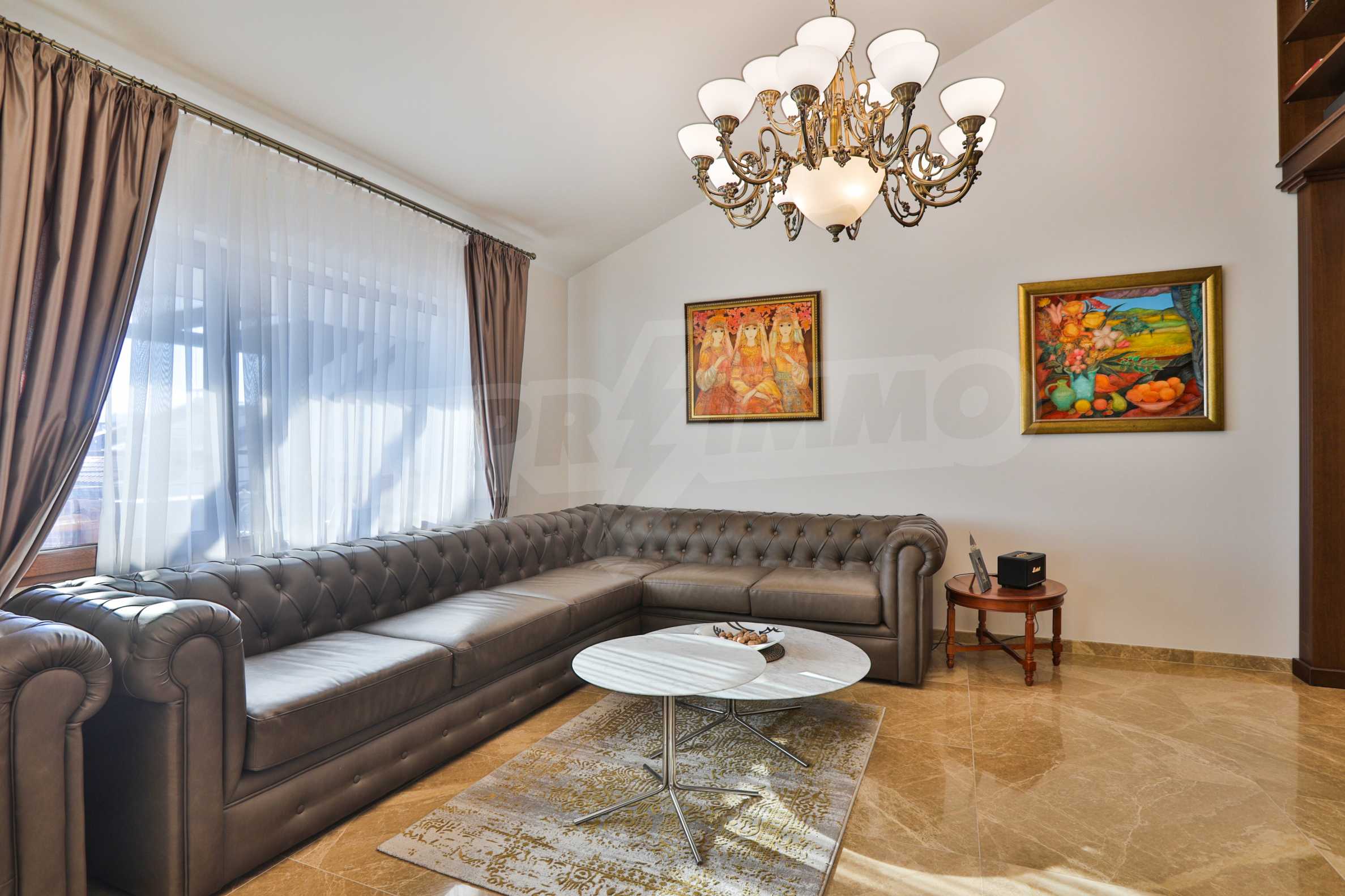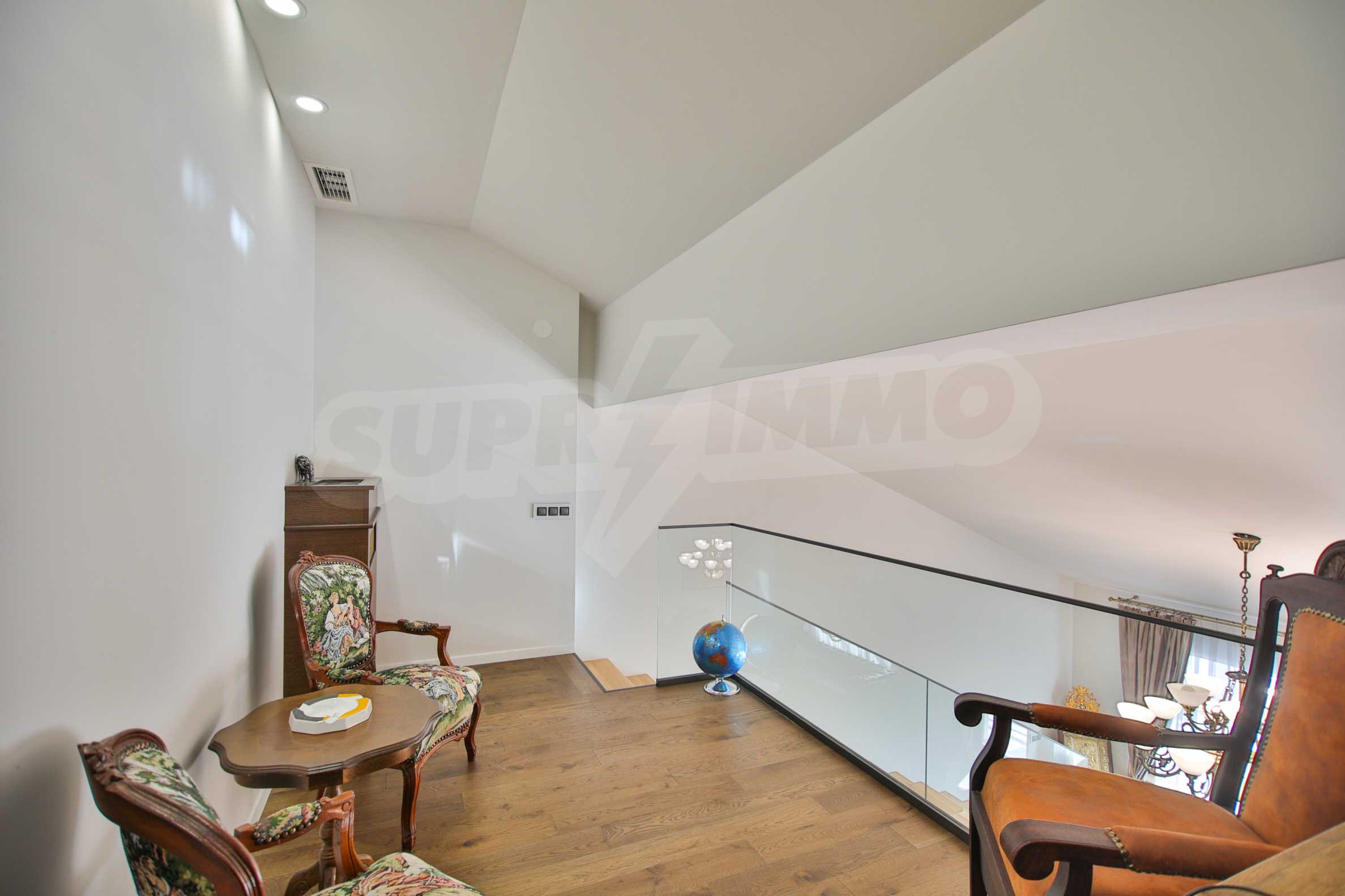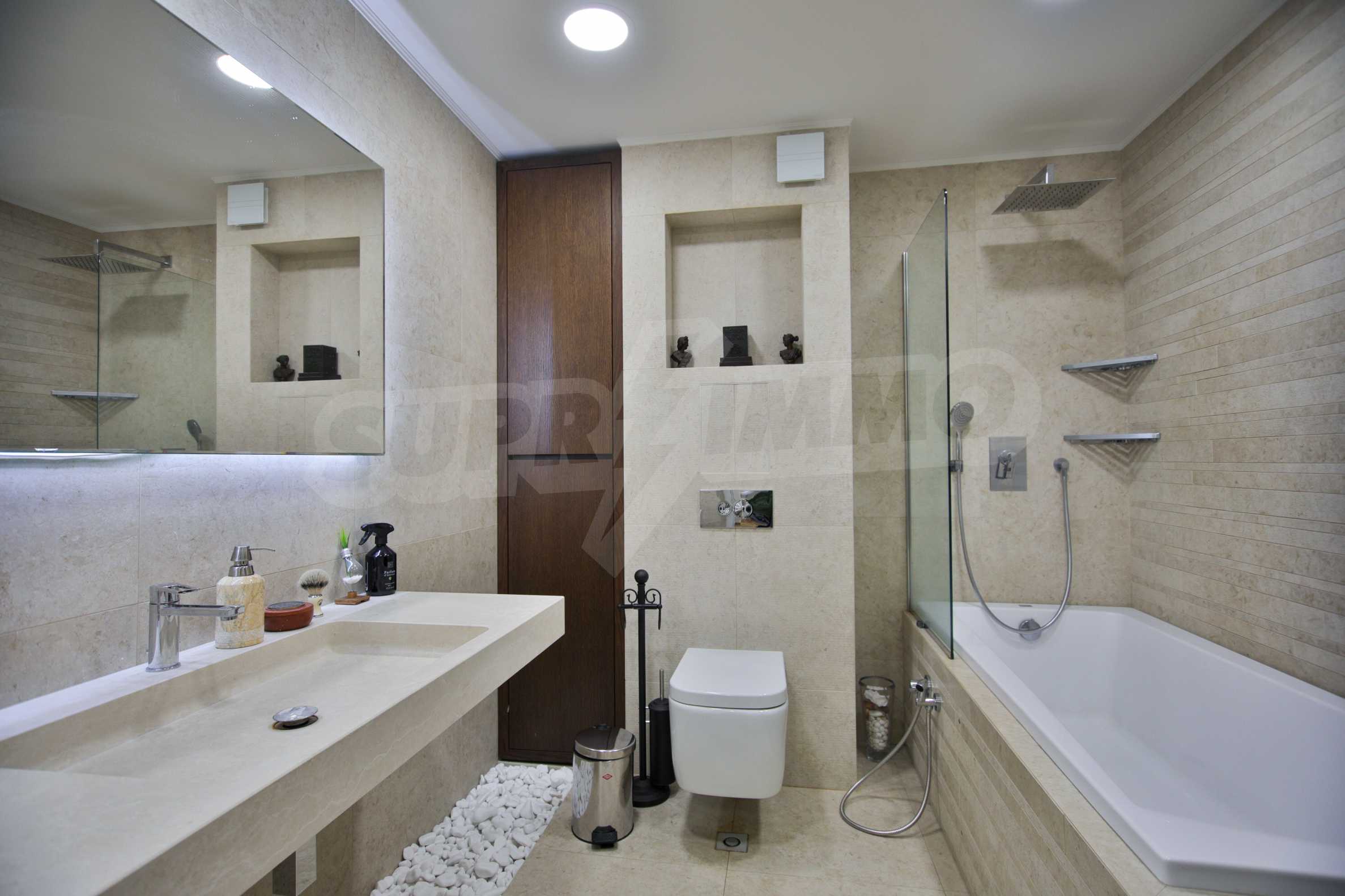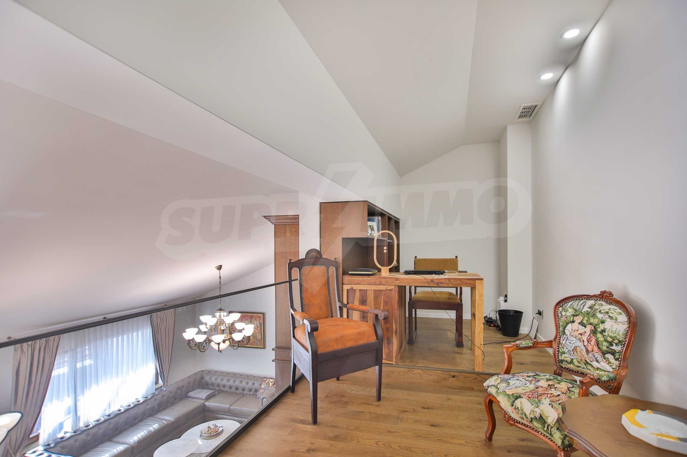 The apartment consists of a large entrance hall with ceilings over five meters, three spacious and bright bedrooms - luxuriously furnished, sunny living room with dining area and kitchen, fully equipped with high class appliances of the brands Faber and Eurolux, kitchen countertop - granite and all solid wood elements. An internal staircase in the living room leads to the office above the kitchen, which is an area with separate ventilation, the apartment has two spacious bathrooms with toilets - luxuriously executed by Martinelli, marble and granite. All lighting fixtures in the apartment are BRUSSARDI brand.