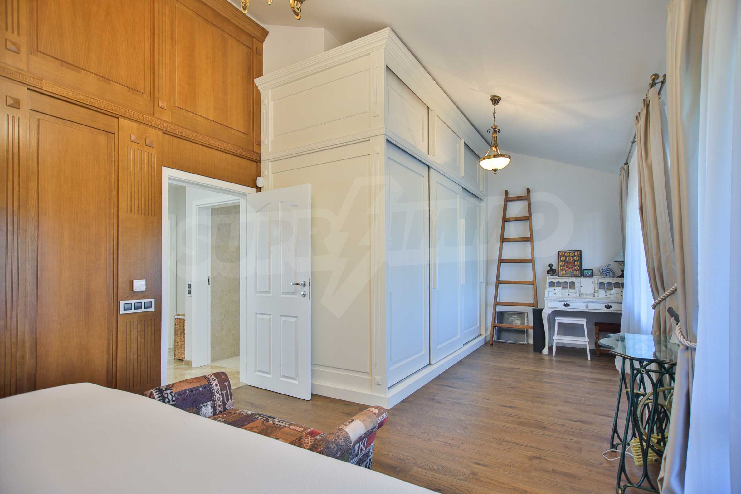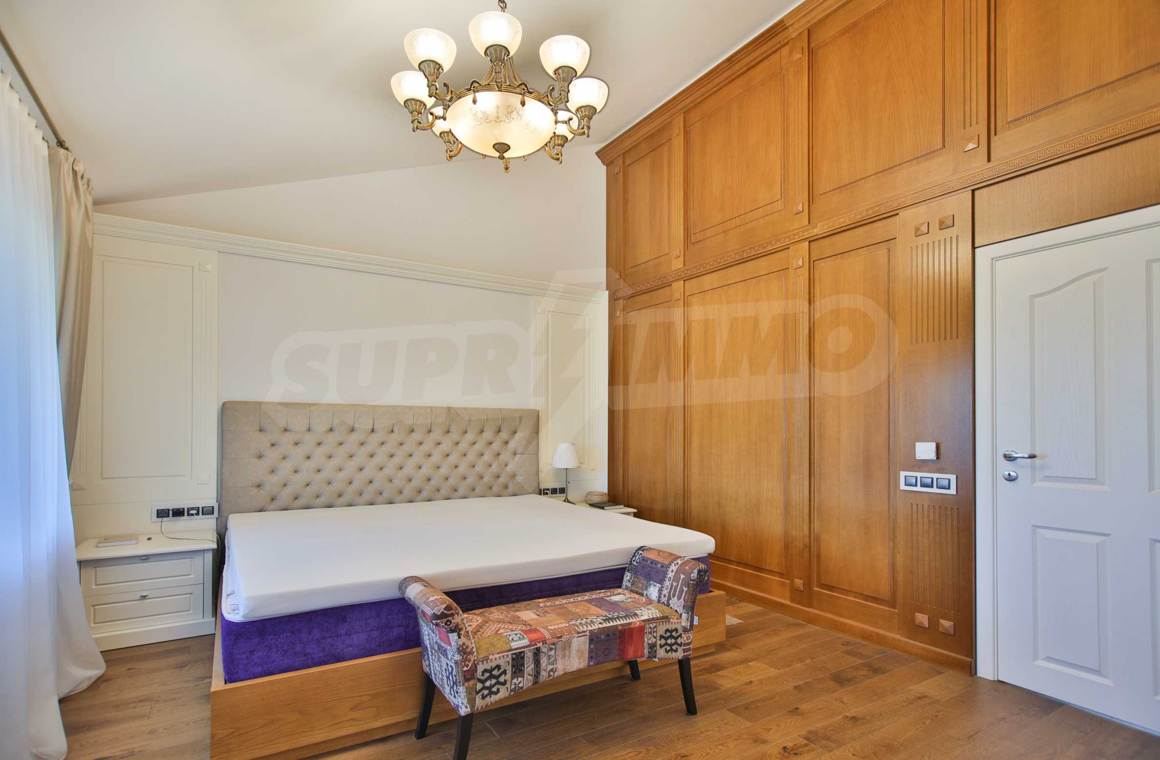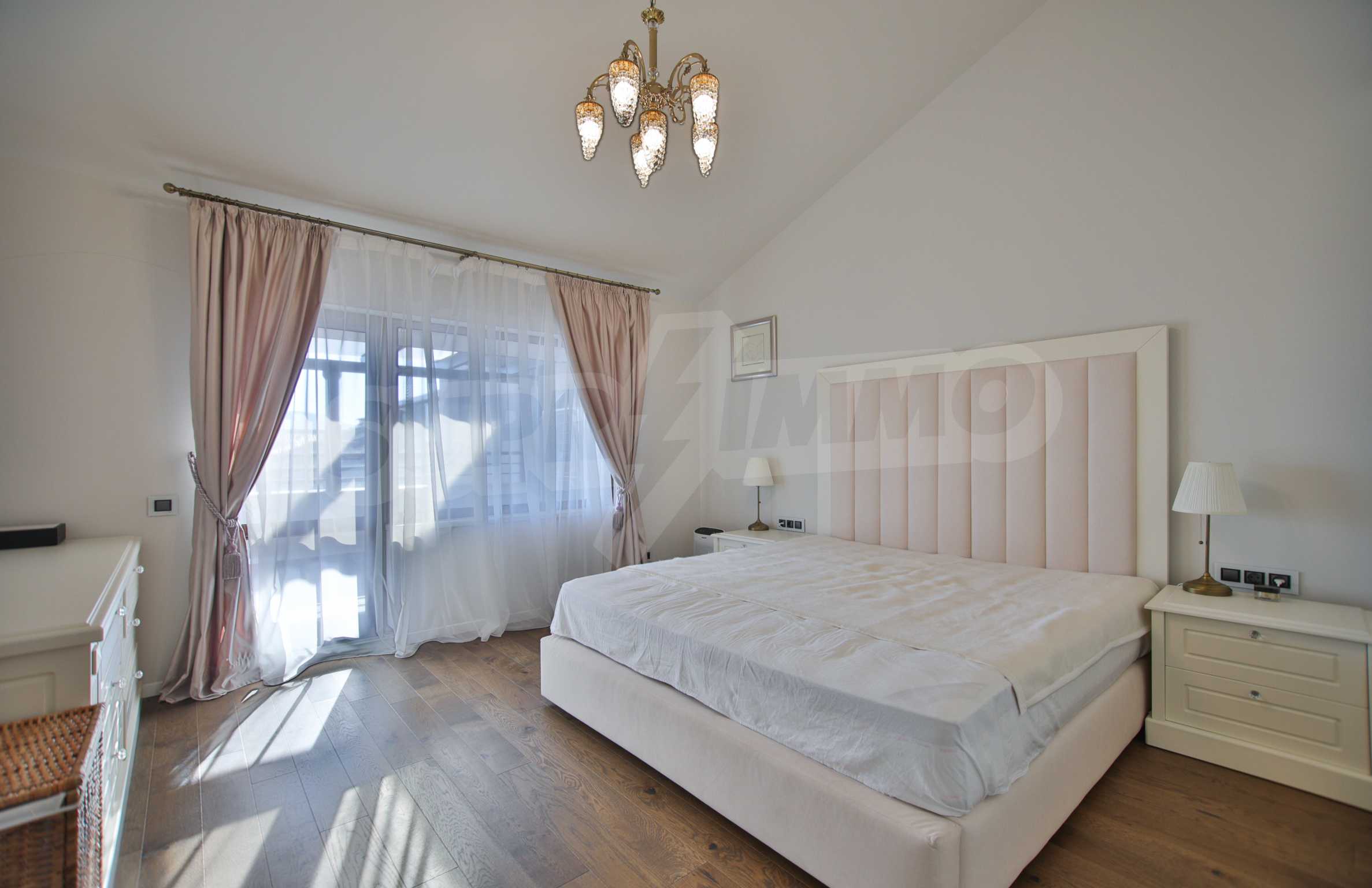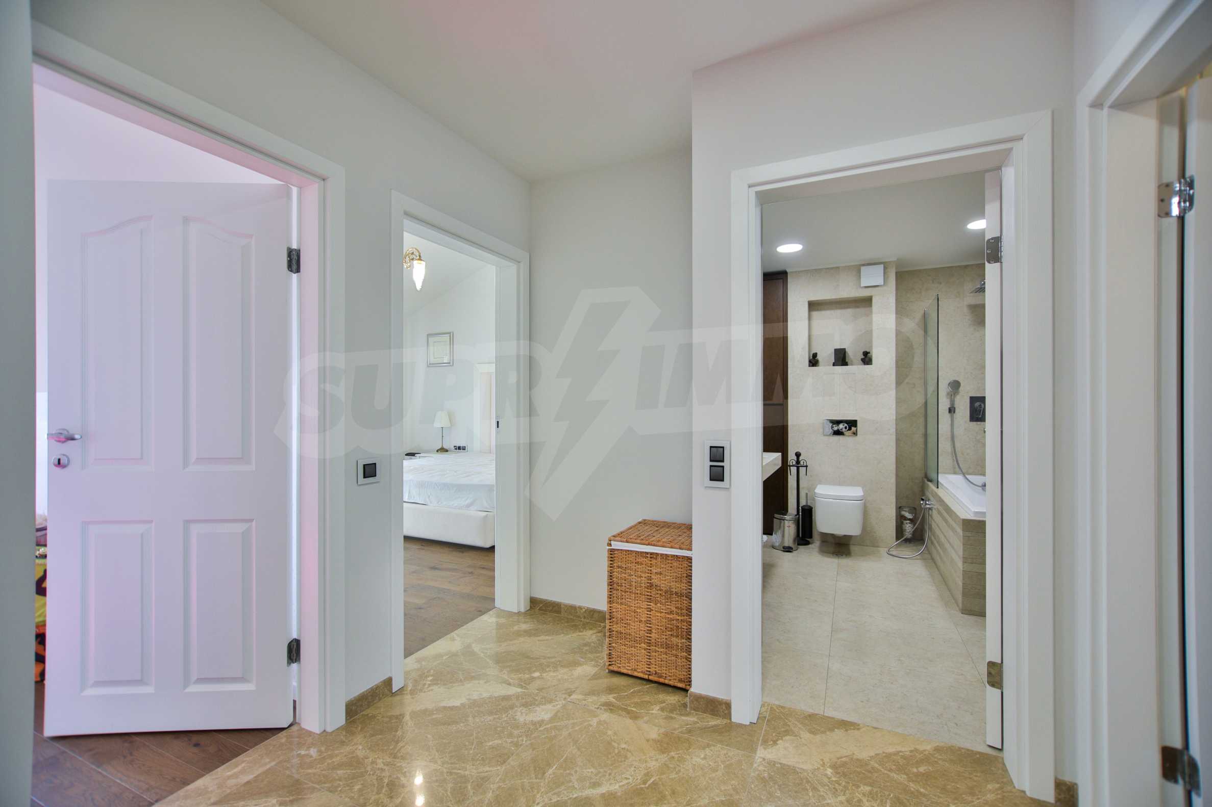 The apartment consists of a large entrance hall with ceilings over five meters, three spacious and bright bedrooms - luxuriously furnished, sunny living room with dining area and kitchen, fully equipped with high class appliances of the brands Faber and Eurolux, kitchen countertop - granite and all solid wood elements. An internal staircase in the living room leads to the office above the kitchen, which is an area with separate ventilation, the apartment has two spacious bathrooms with toilets - luxuriously executed by Martinelli, marble and granite. All lighting fixtures in the apartment are BRUSSARDI brand.