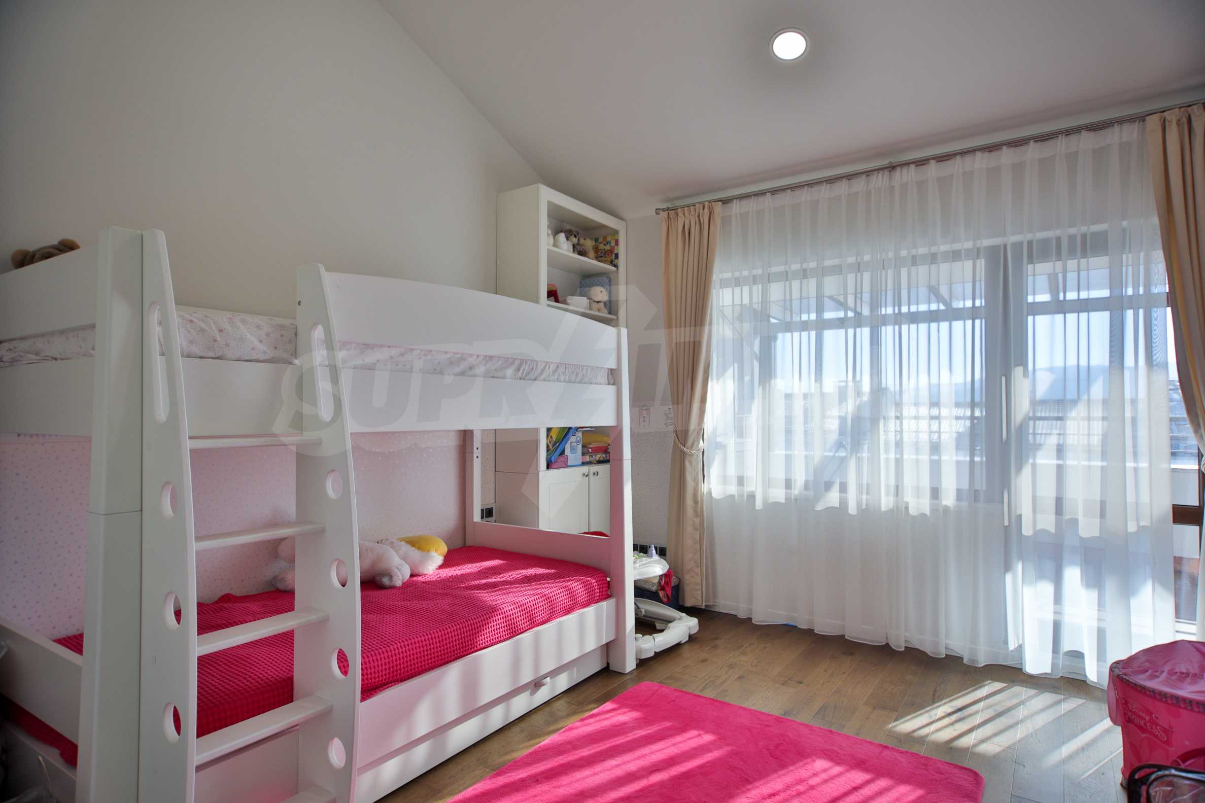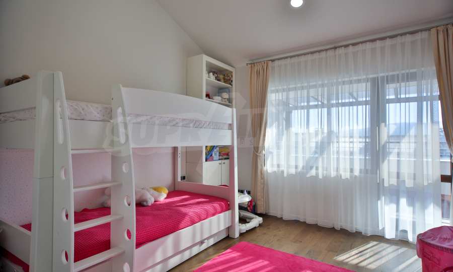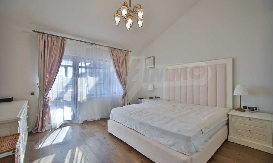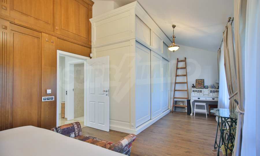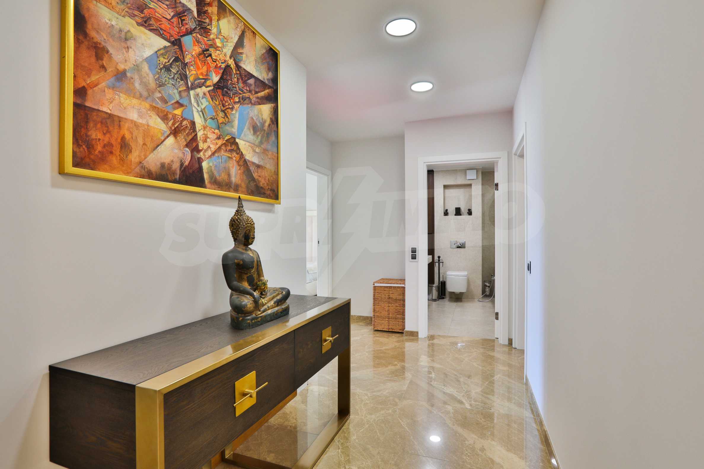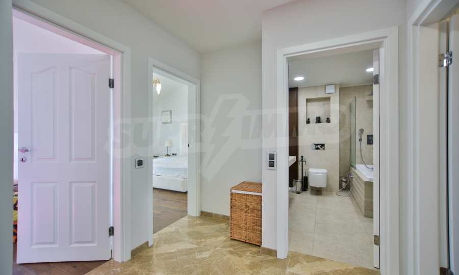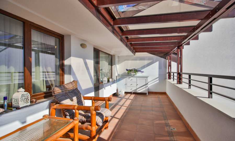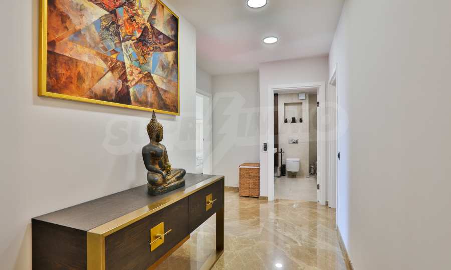 The apartment has panoramic views from all rooms and large balconies to each of them. The floors are made of polished granite in the hallway and corridor, and the living room and bedrooms with natural walnut parquet. The staircase in front of the apartment has built-in wardrobes made of solid wood and is separate on the floor for this apartment. The access is with a floor chip and an armored door to the stairs. The heating system of the leading brand Mitsubishi.