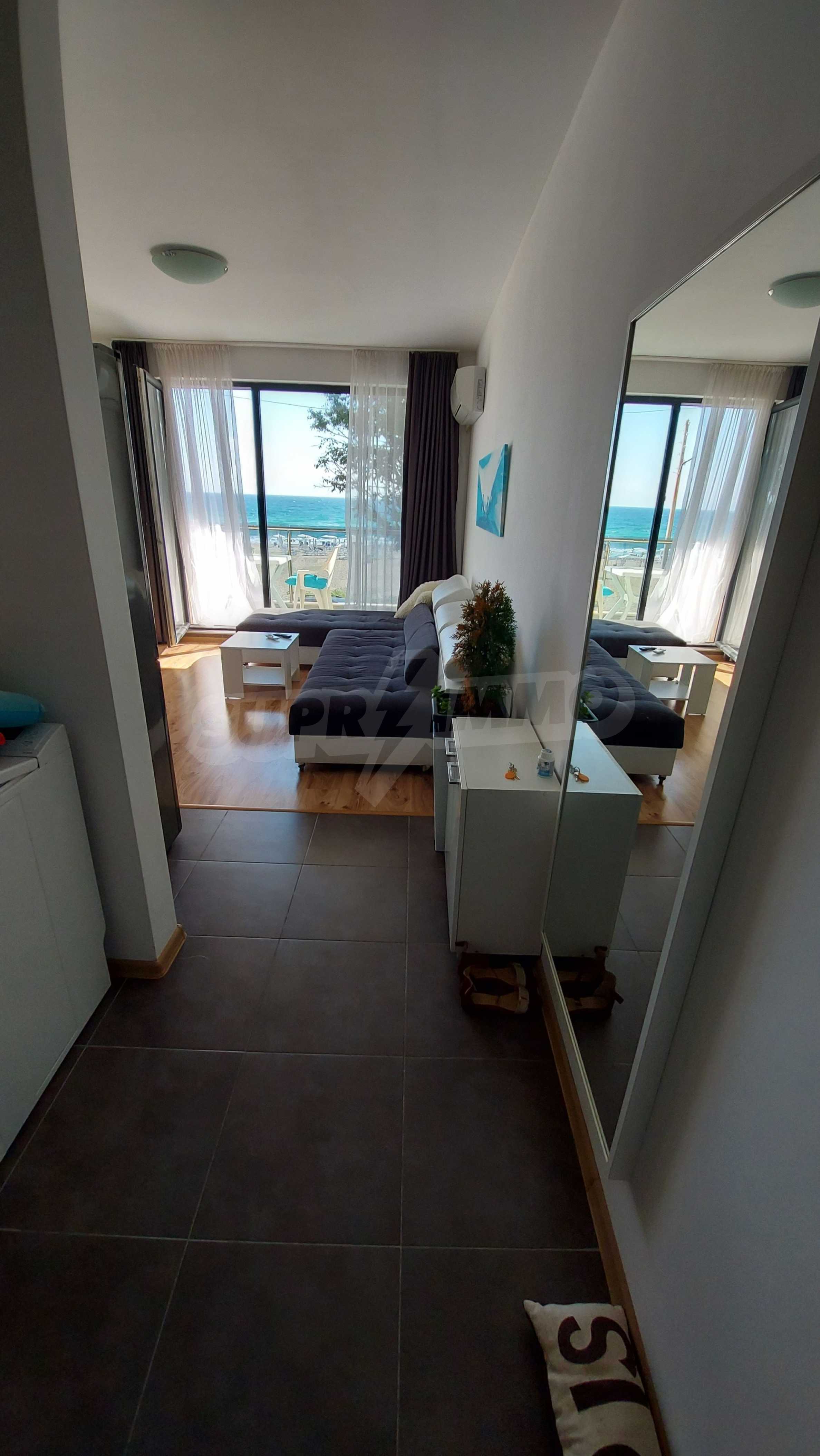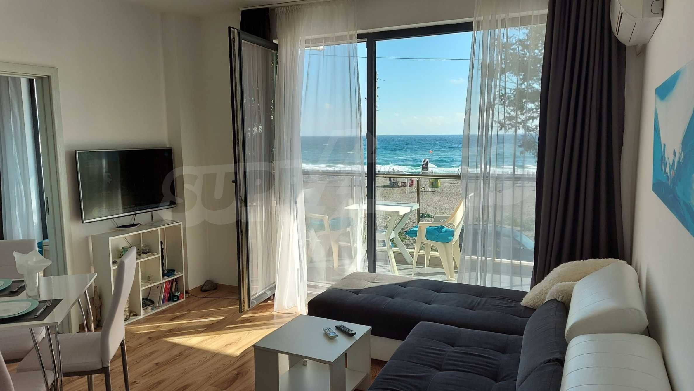 HOT offer in the town of Sozopol - excellent, new one-bedroom apartment on the absolute first line, with frontal views of the sea and Harmanite beach.