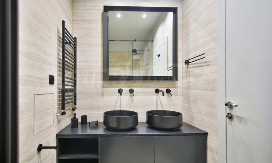 - Bathroom – Italian faience – Imperiale, faucets – Travertino, bathroom accessories Bruma, Sonco and Bianchi.