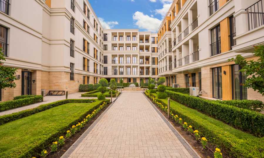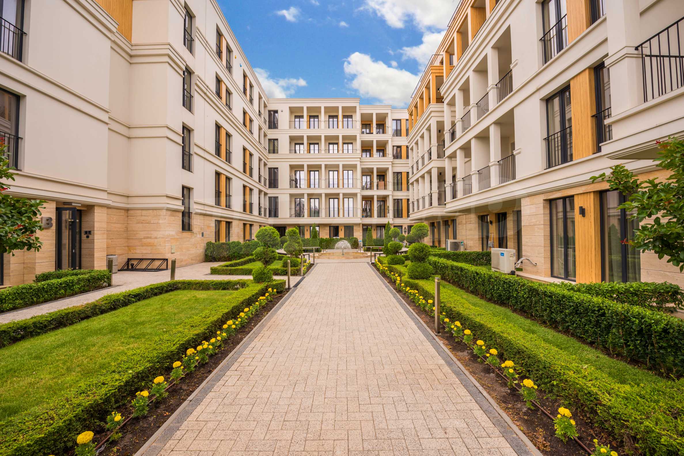 - Comfort and conveniences of living: landscaped park with a fountain and alleys, swimming pool, gazebo with barbecue, secured parking.