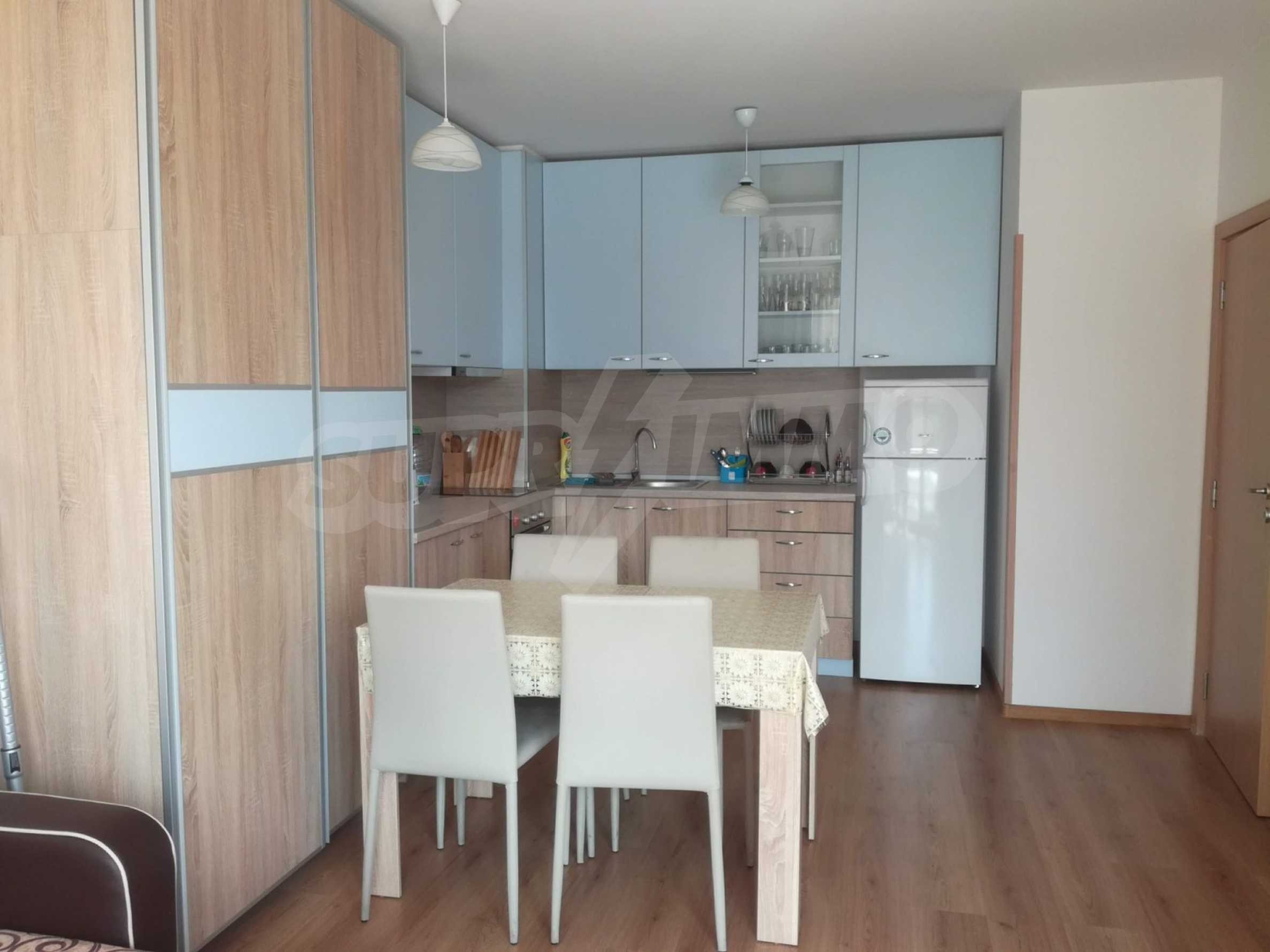 The property is warm, facing south, located on the 2nd floor and has a total area of 58 m2. The apartment consists of a living room with a kitchenette, a bedroom, a bathroom / toilet and a cozy terrace with a pleasant view of a quiet, beautiful yard. Sold with furniture and appliances, 2 air conditioners, washing machine, stove, boiler and more.