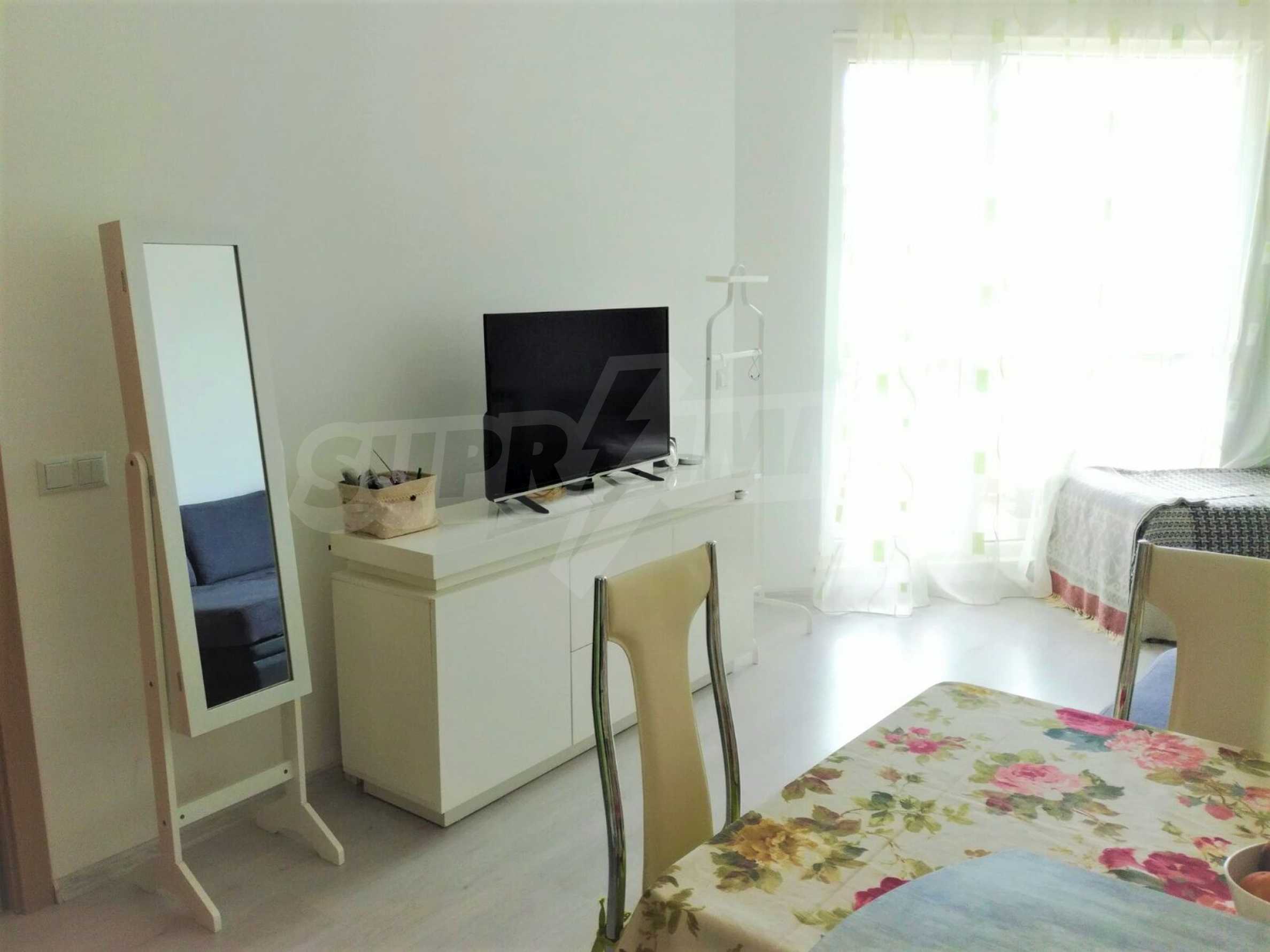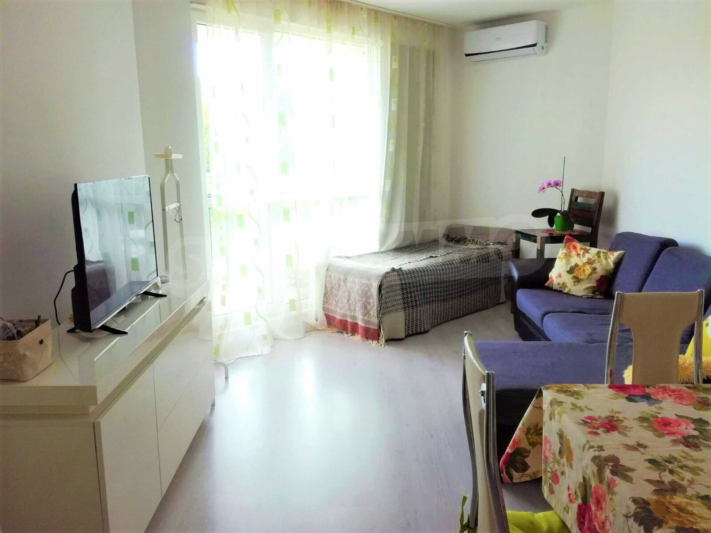 The property is warm, facing south, located on the 2nd floor and has a total area of 58 m2. The apartment consists of a living room with a kitchenette, a bedroom, a bathroom / toilet and a cozy terrace with a pleasant view of a quiet, beautiful yard. Sold with furniture and appliances, 2 air conditioners, washing machine, stove, boiler and more.