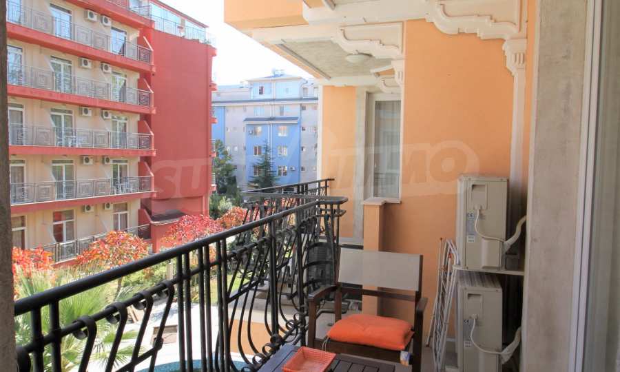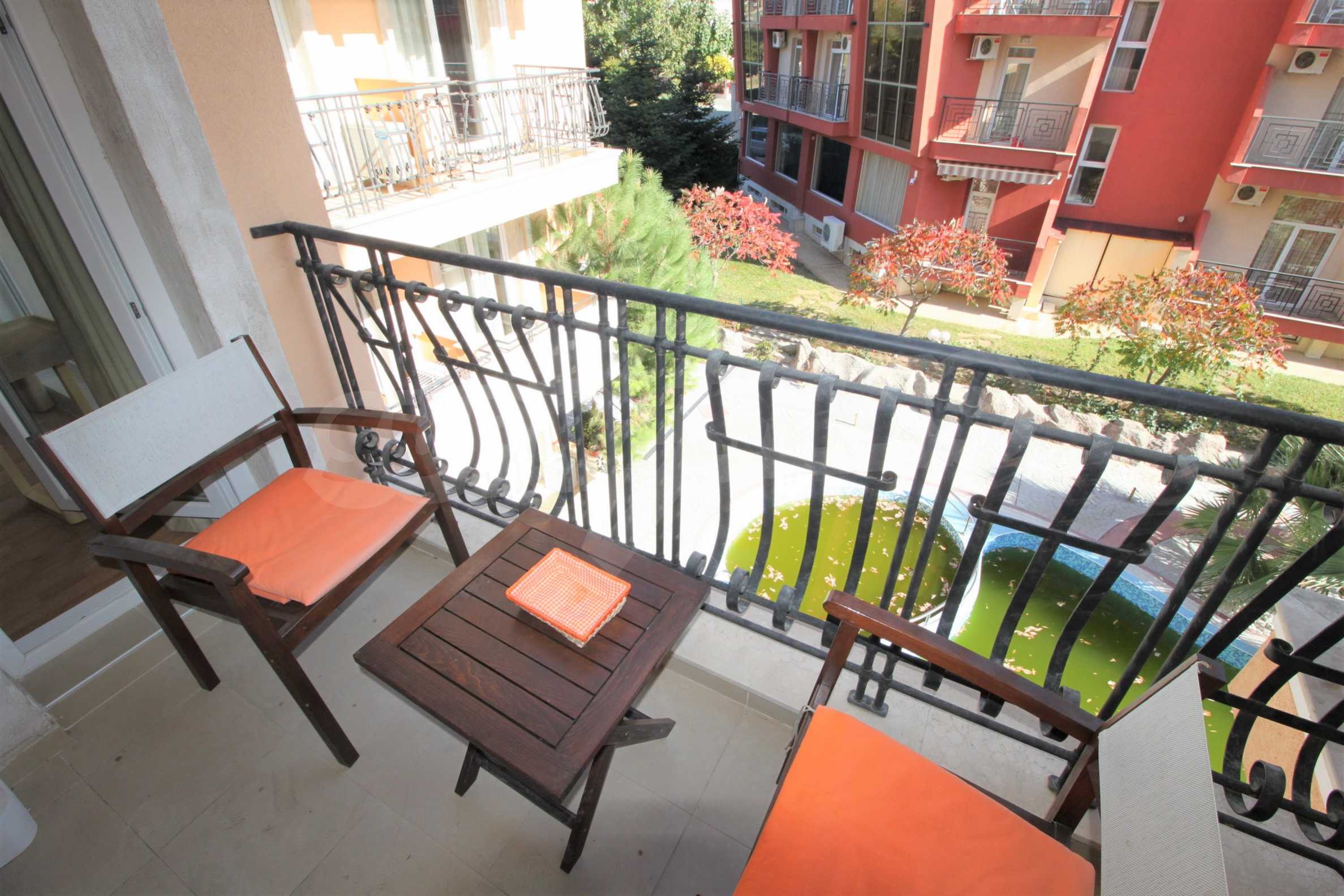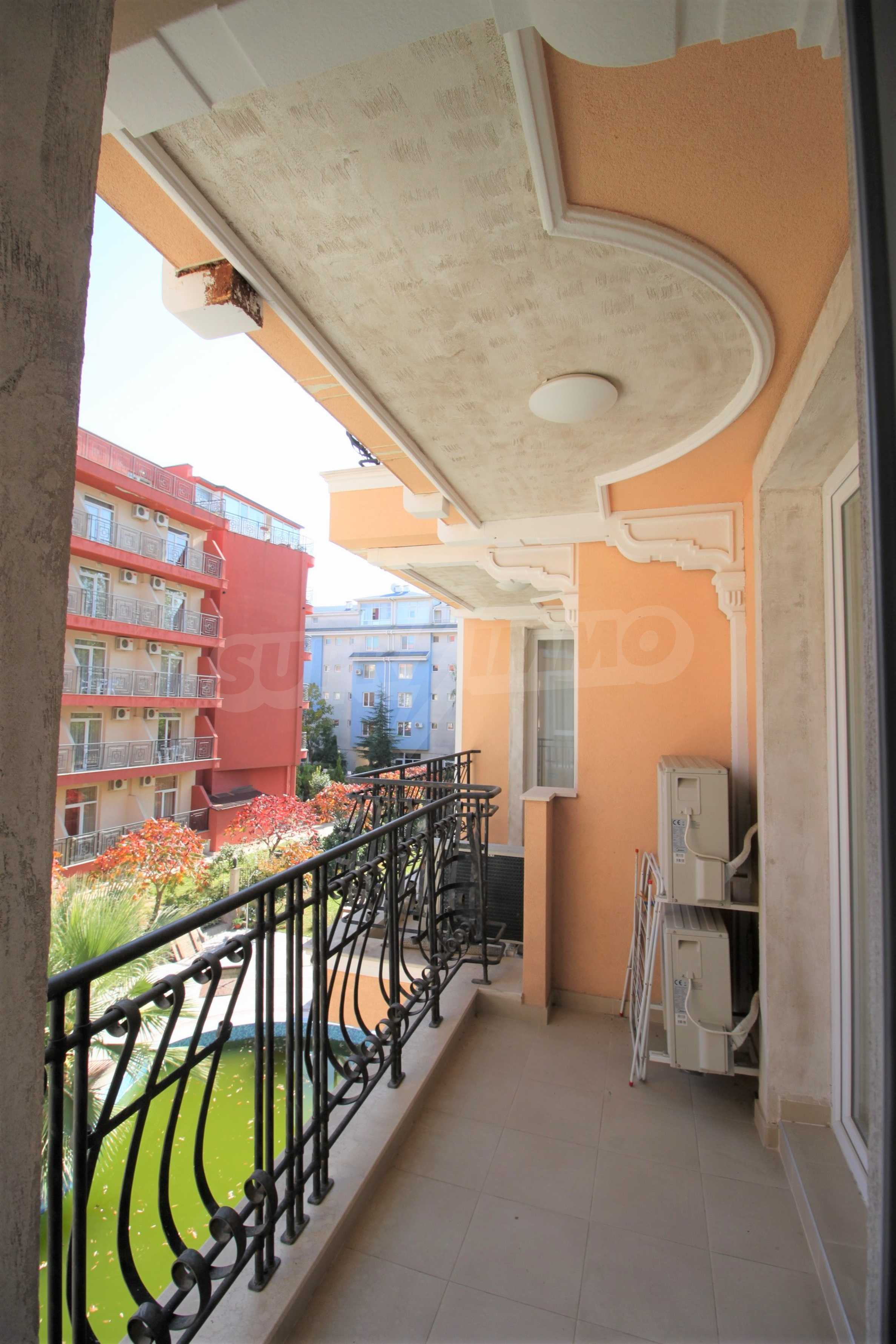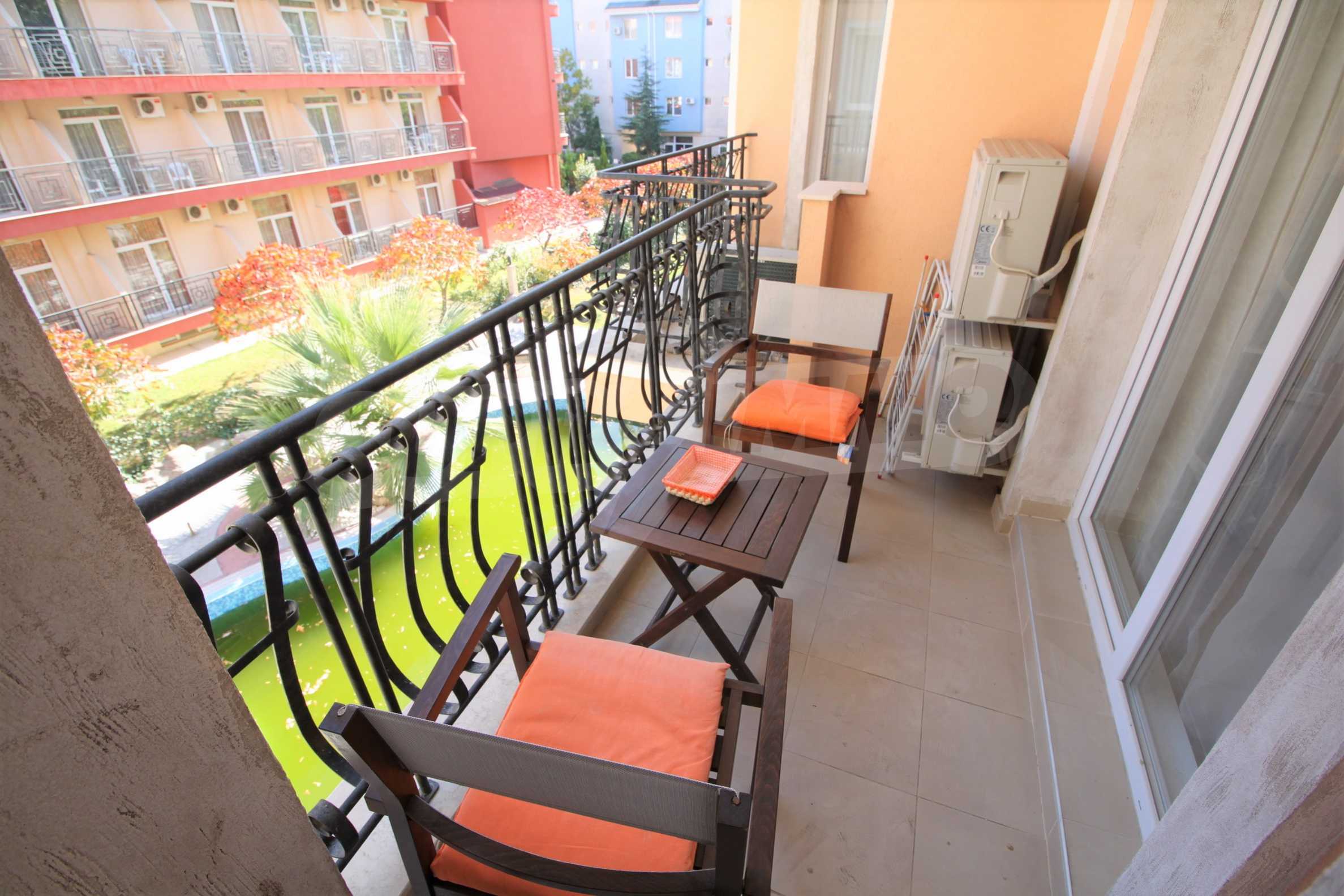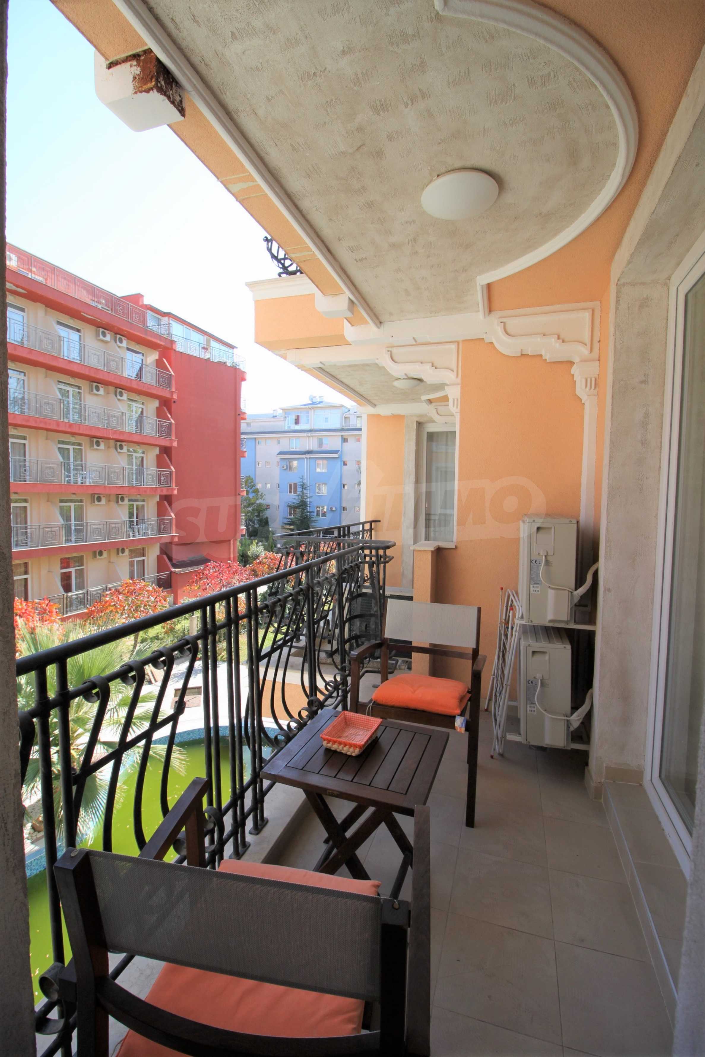 The complex facilities an elegant Mediterranean-style fa?ade, surrounded by park greenery and located in a quiet part of the resort, just 5 minutes from the beach. The area has controlled access, with a nice pool with relaxation area and beautiful landscaping.