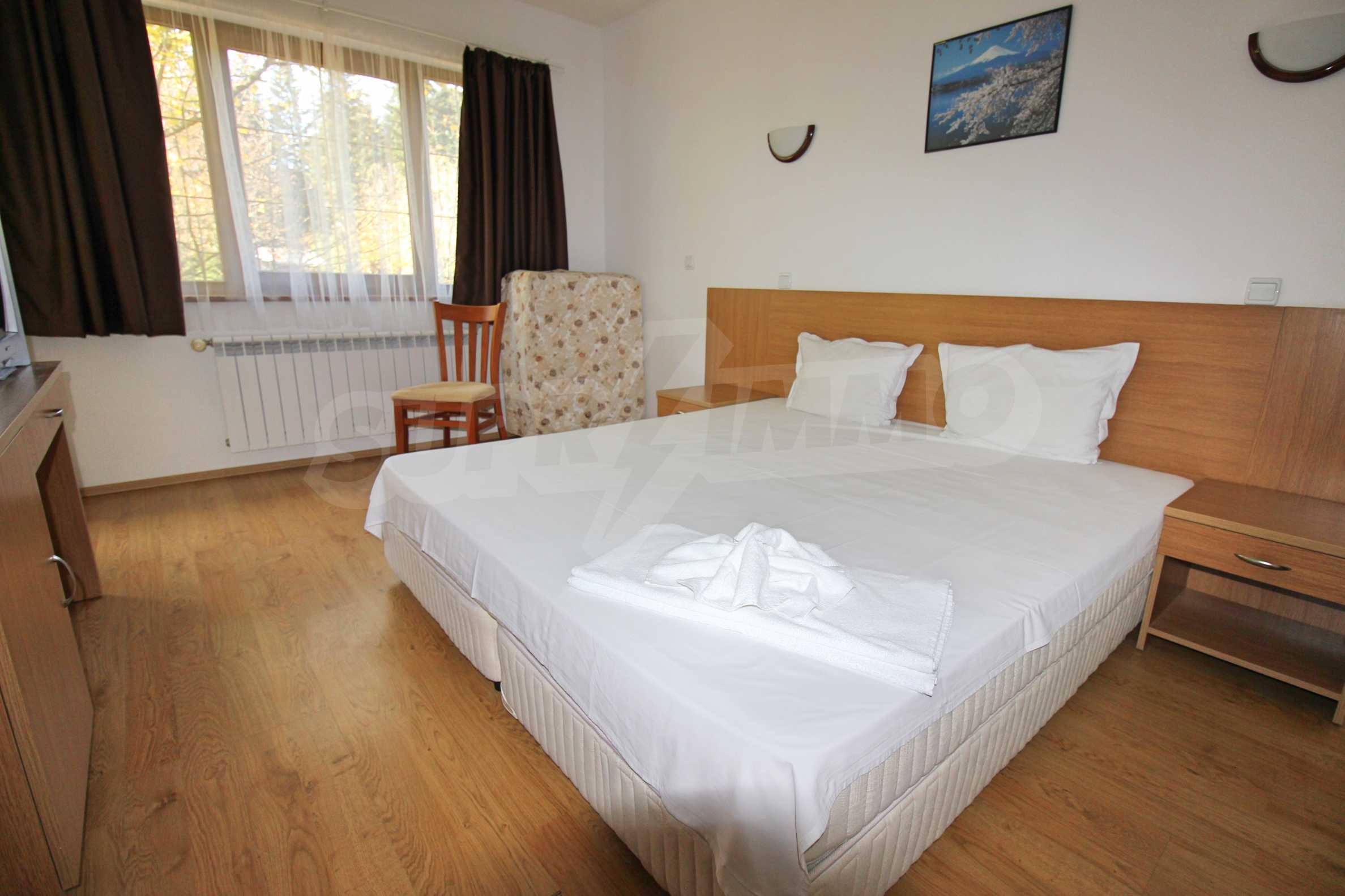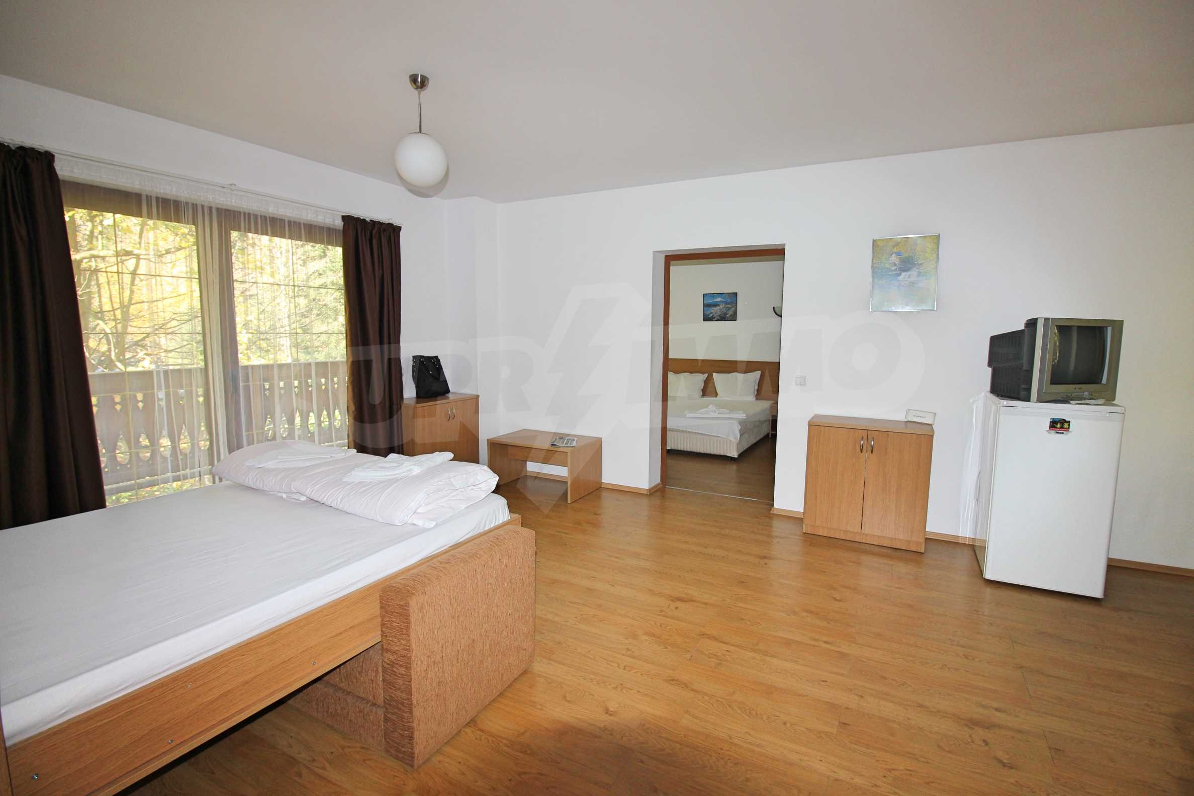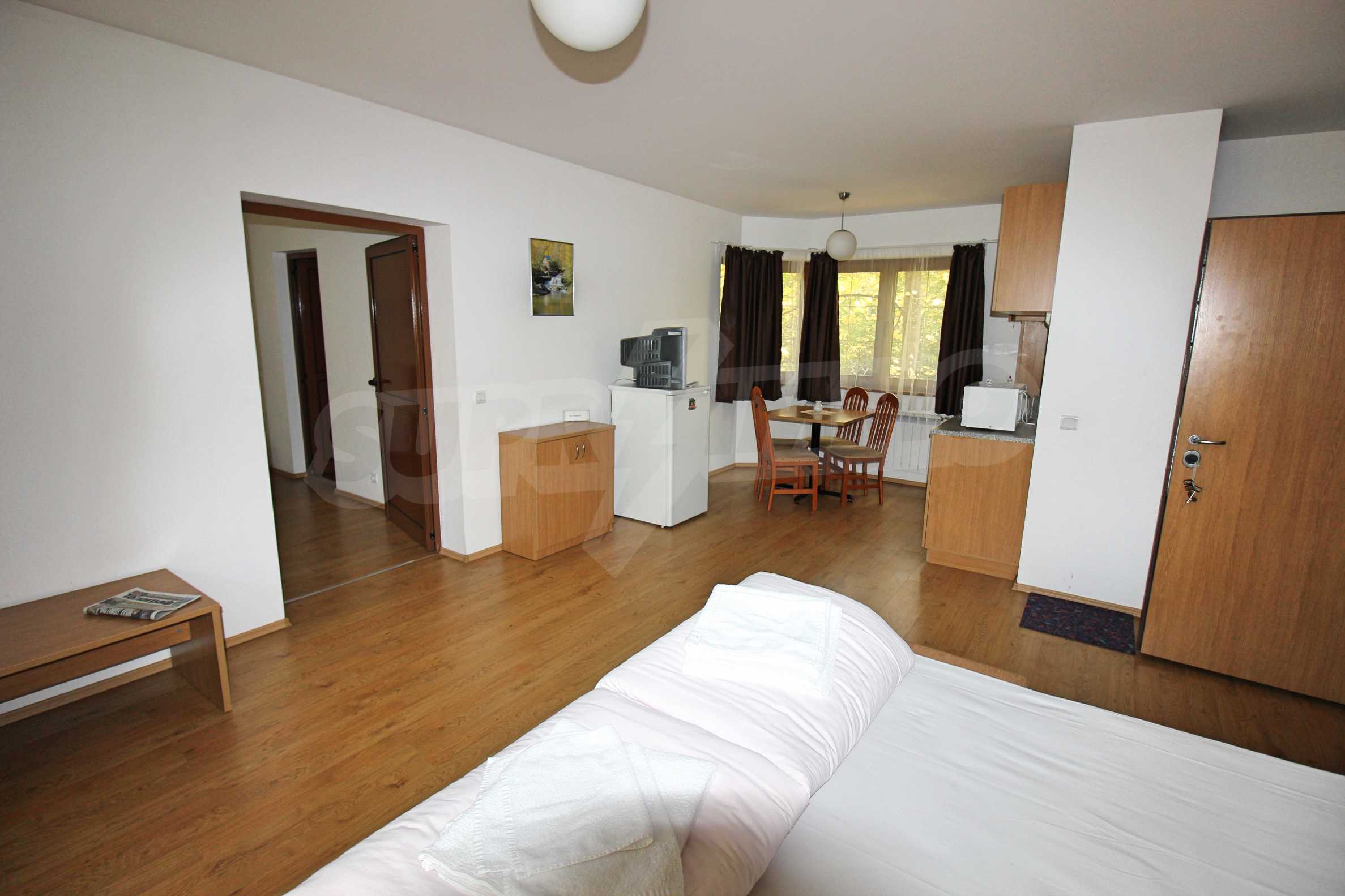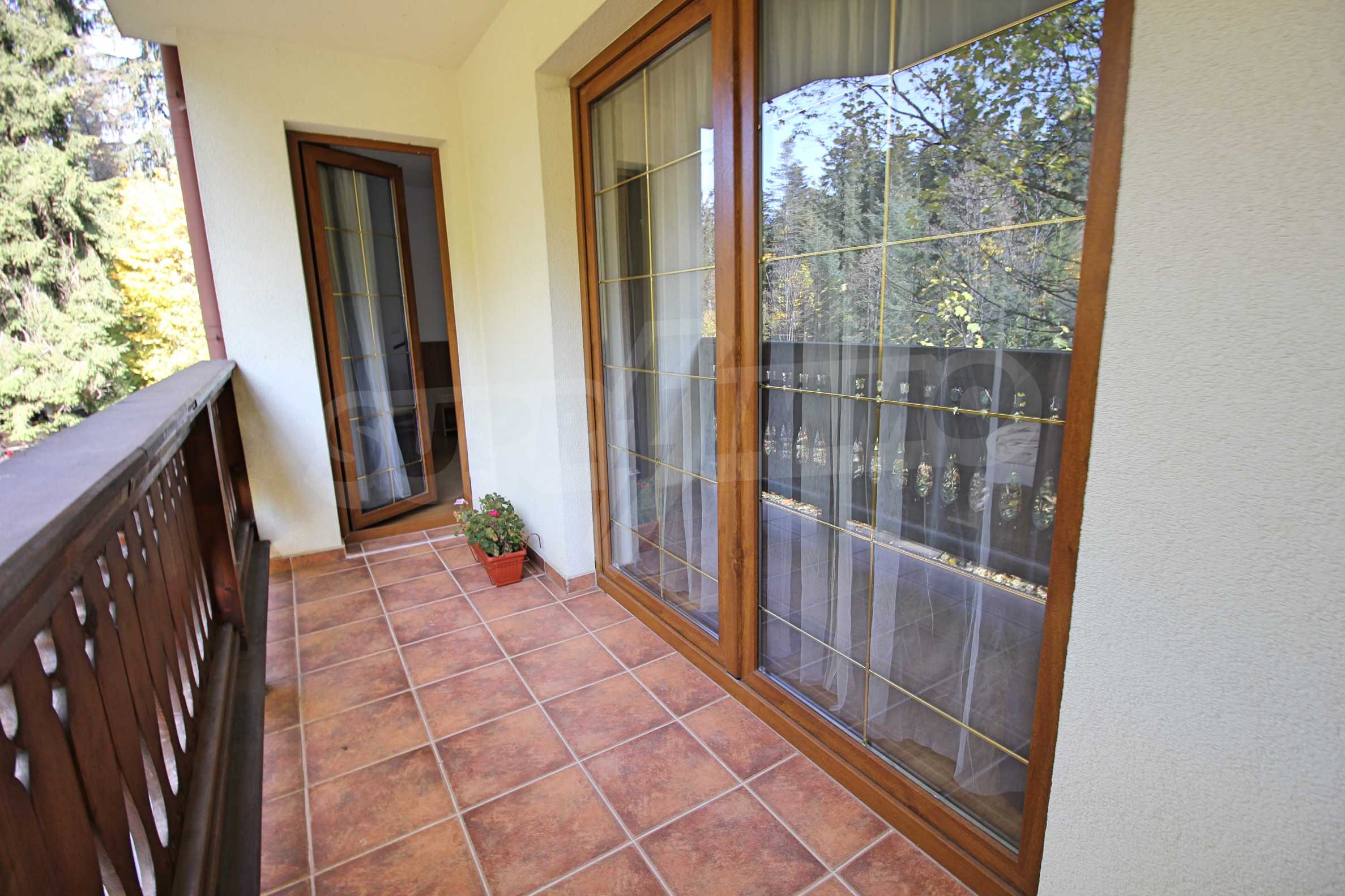 We are glad to present this one-bedroom apartment on the first floor in a gated complex in Borovets. The apartment has a total area of 84 sq.m, with western and northern exposure and the following distribution: entrance hall, kitchenette with dining area, bedroom, bathroom/wc, and balcony. The floors are granite and laminate, the walls are latex, the windows are with PVC window frames. Heating and hot water are provided by an individual boiler and Italian aluminum radiators.