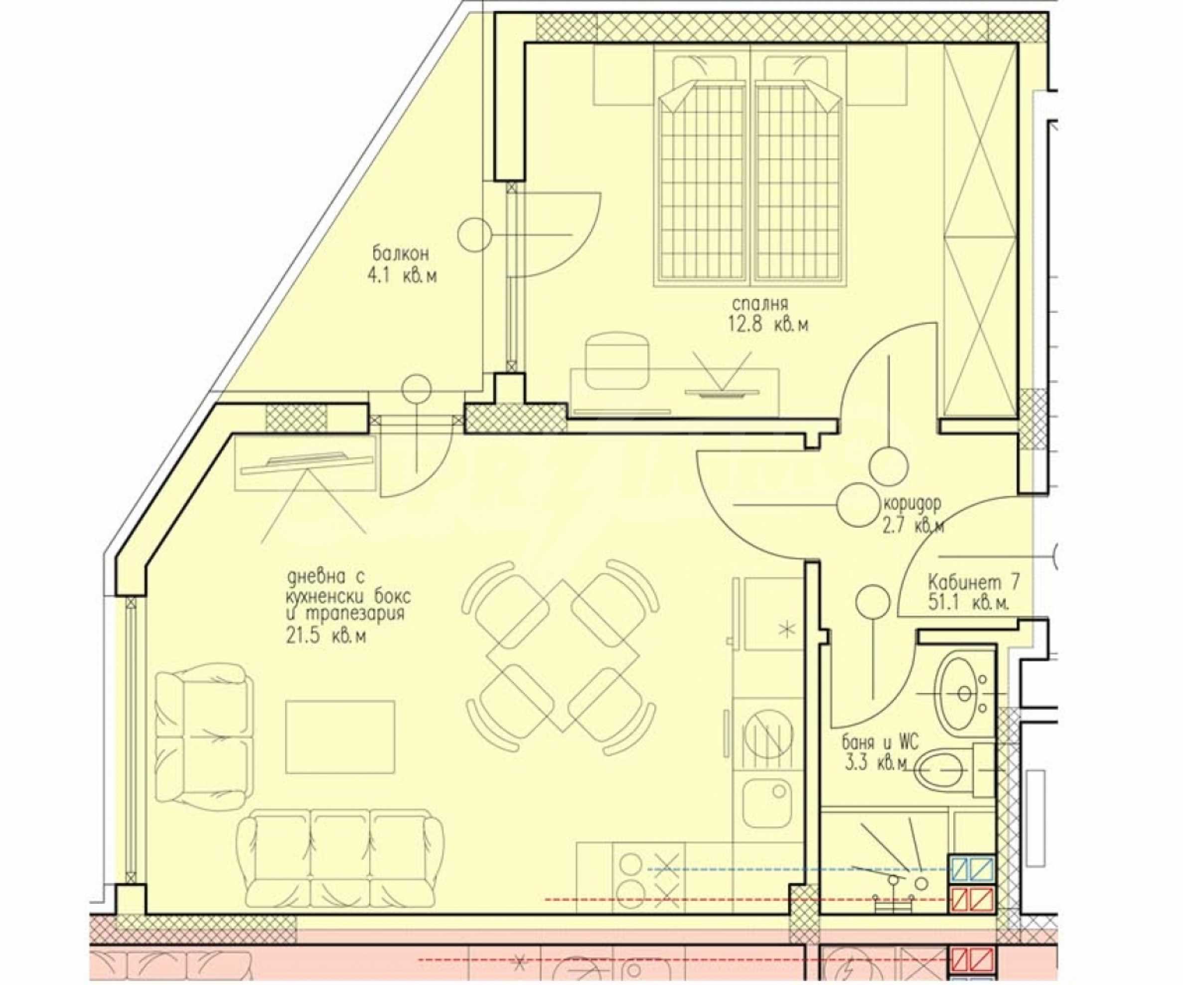The residential building is built on six above-ground floors and one underground, which houses 20 apartments and 7 offices with spacious areas and functional layout. The parking spaces are in the courtyard, the total area of the building is 2136.70 m2. All apartments will be completed according to BDS, with the possibility of finishing "turnkey", at the request of the new owners.