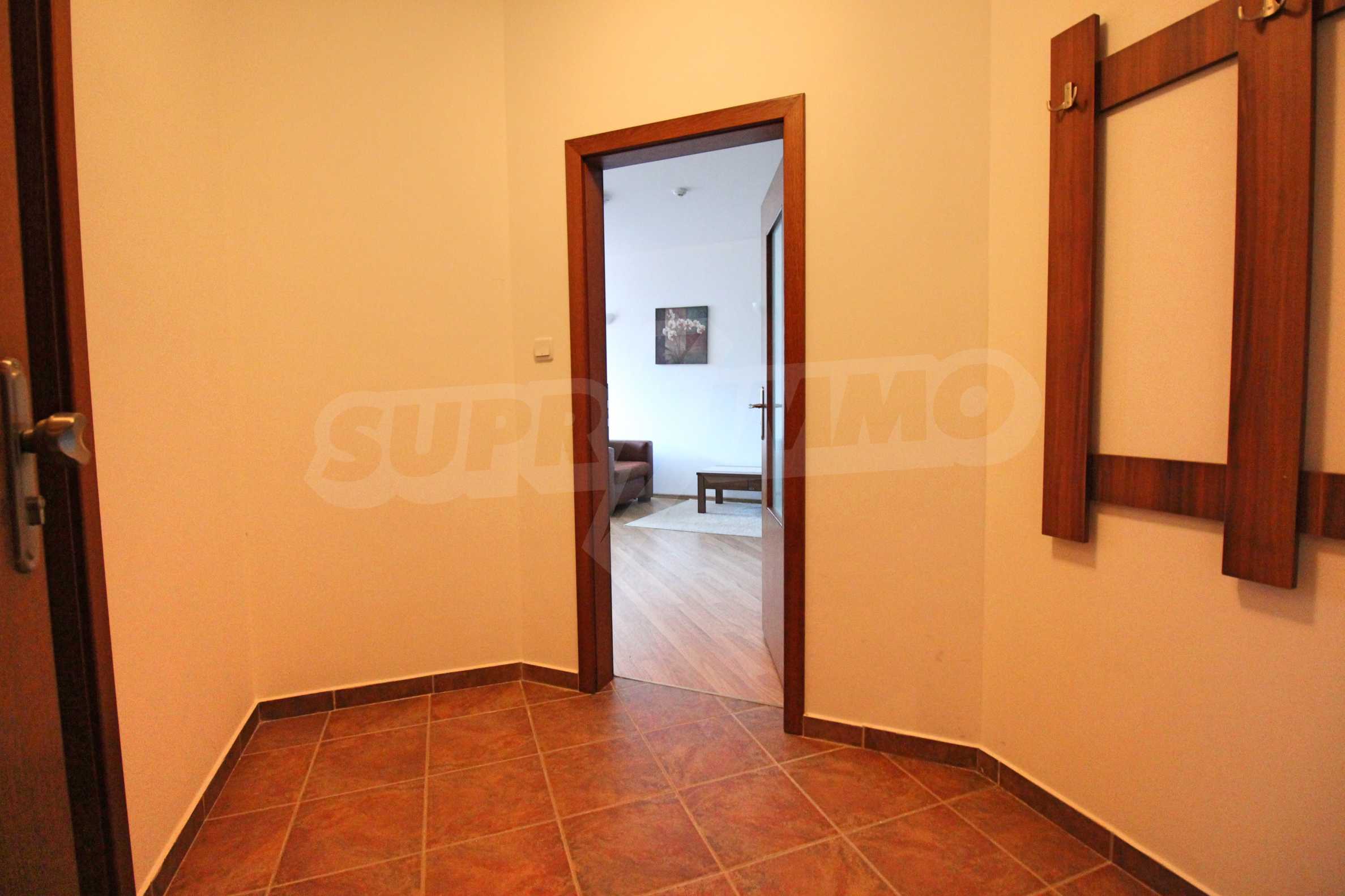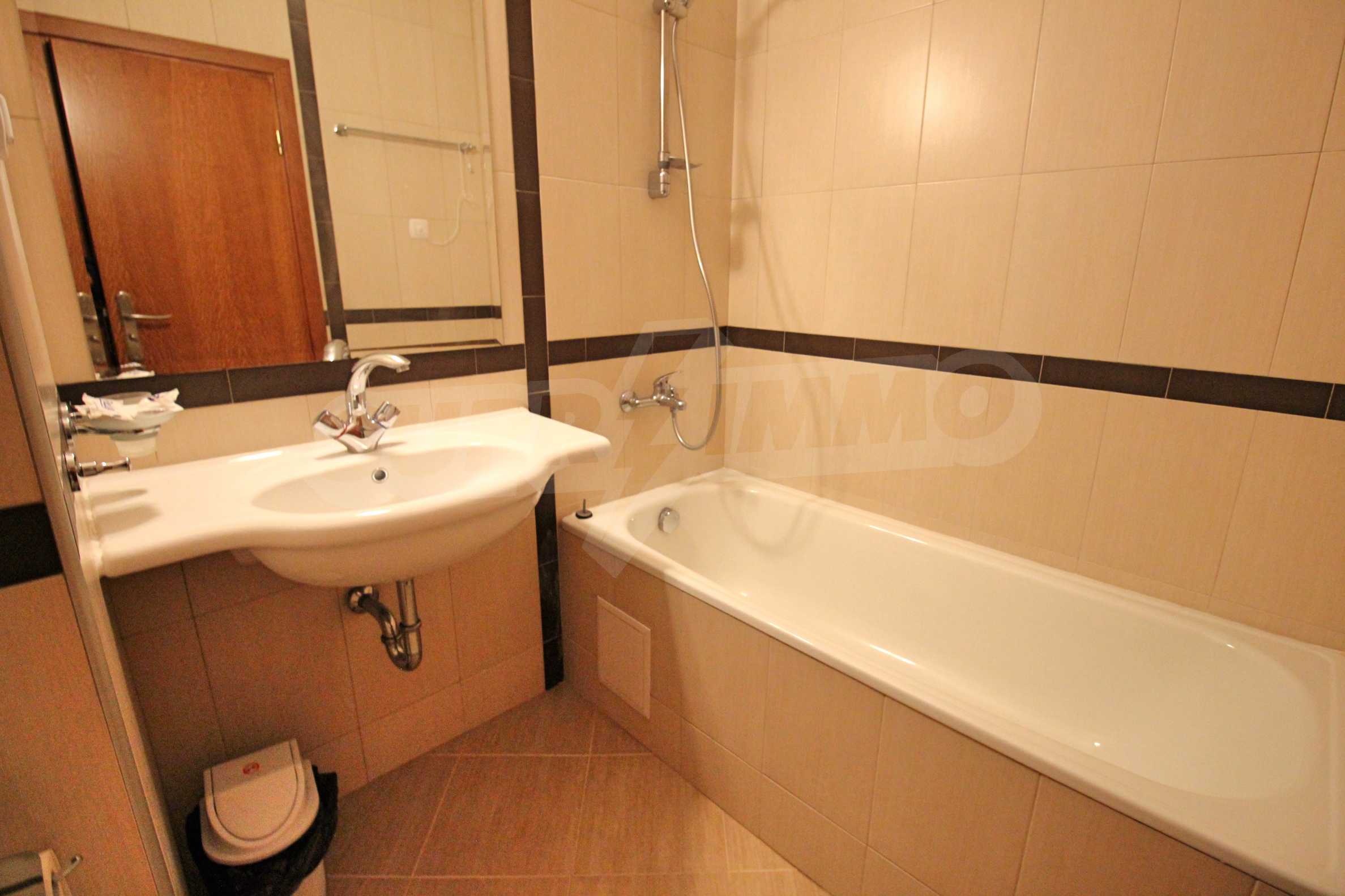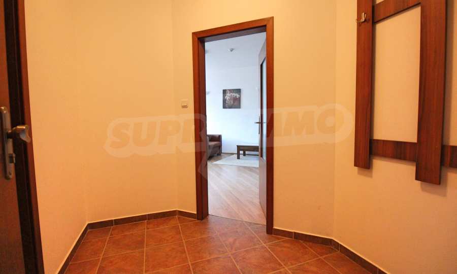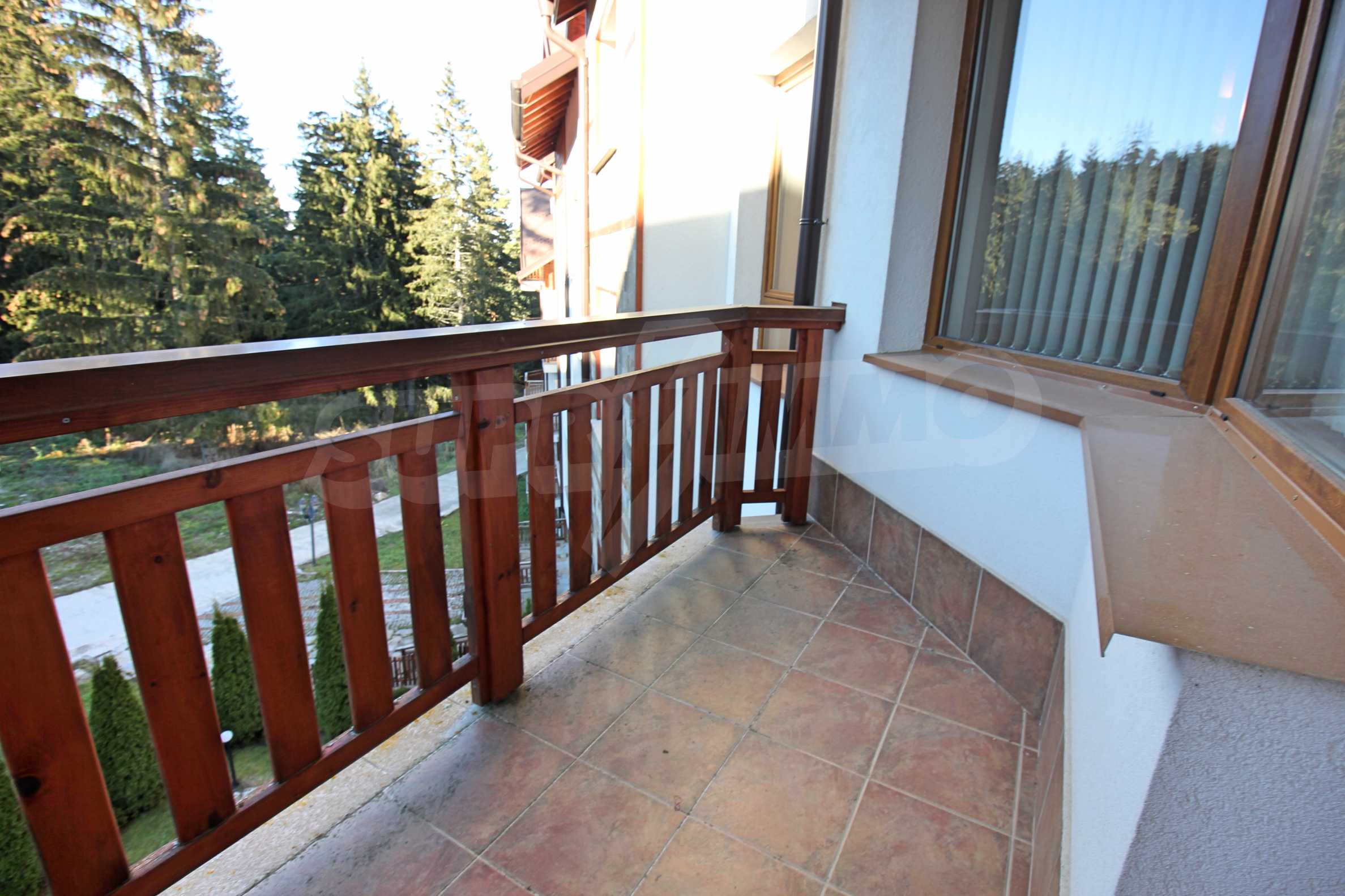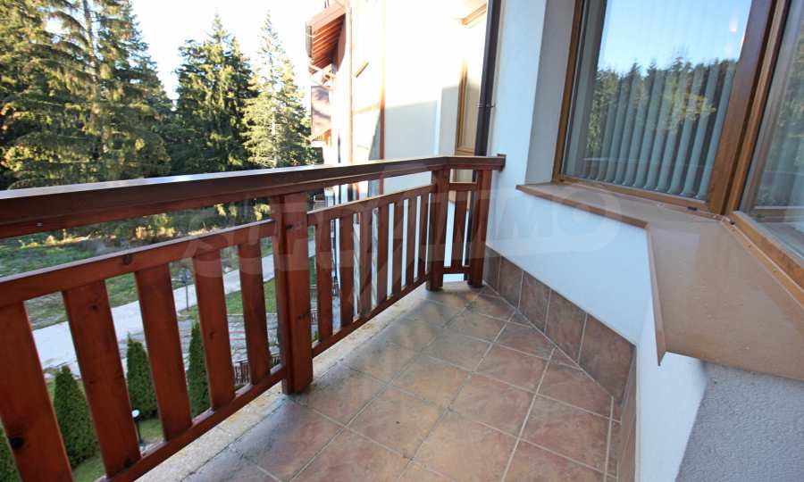 We are glad to present this fully furnished apartment with views of the forest and mountains in the ski resort Borovets. The studio is located on the fourth floor with a total area of 70.94 sq.m., distributed between an entrance hall, a living room with a kitchenette, and bedroom, a bathroom, and a balcony with lovely views. The rooms are finished with walls - latex, floor - laminate in the rooms and granite in the hallway, windows - wooden. The property is furnished and equipped with everything necessary for a comfortable lifestyle. The apartment is wired for internet and cable TV. The heating is with electric convectors.