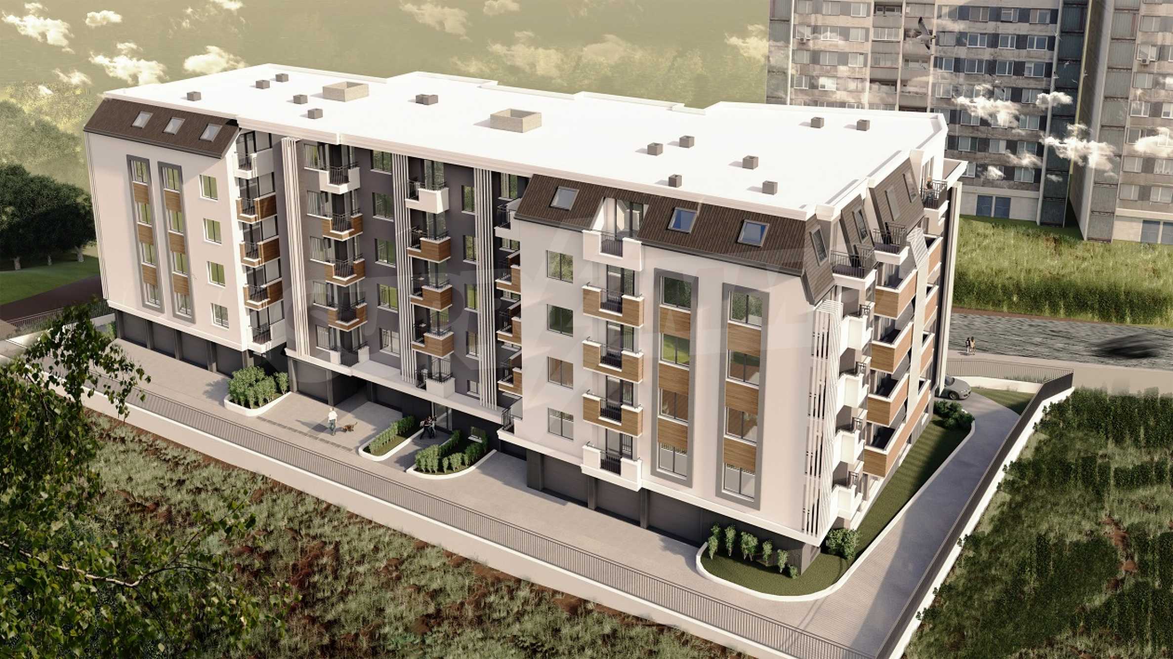 Total number of dwellings in the building - 82, and for sale are 43: studio properties, one-bedroom, two-bedroom and 3-bedroom properties. All apartments will be finished according to Bulgarian Standard, with the possibility of finishing "turnkey", at the request of future owners. There is a possibility to buy a parking space or a garage.