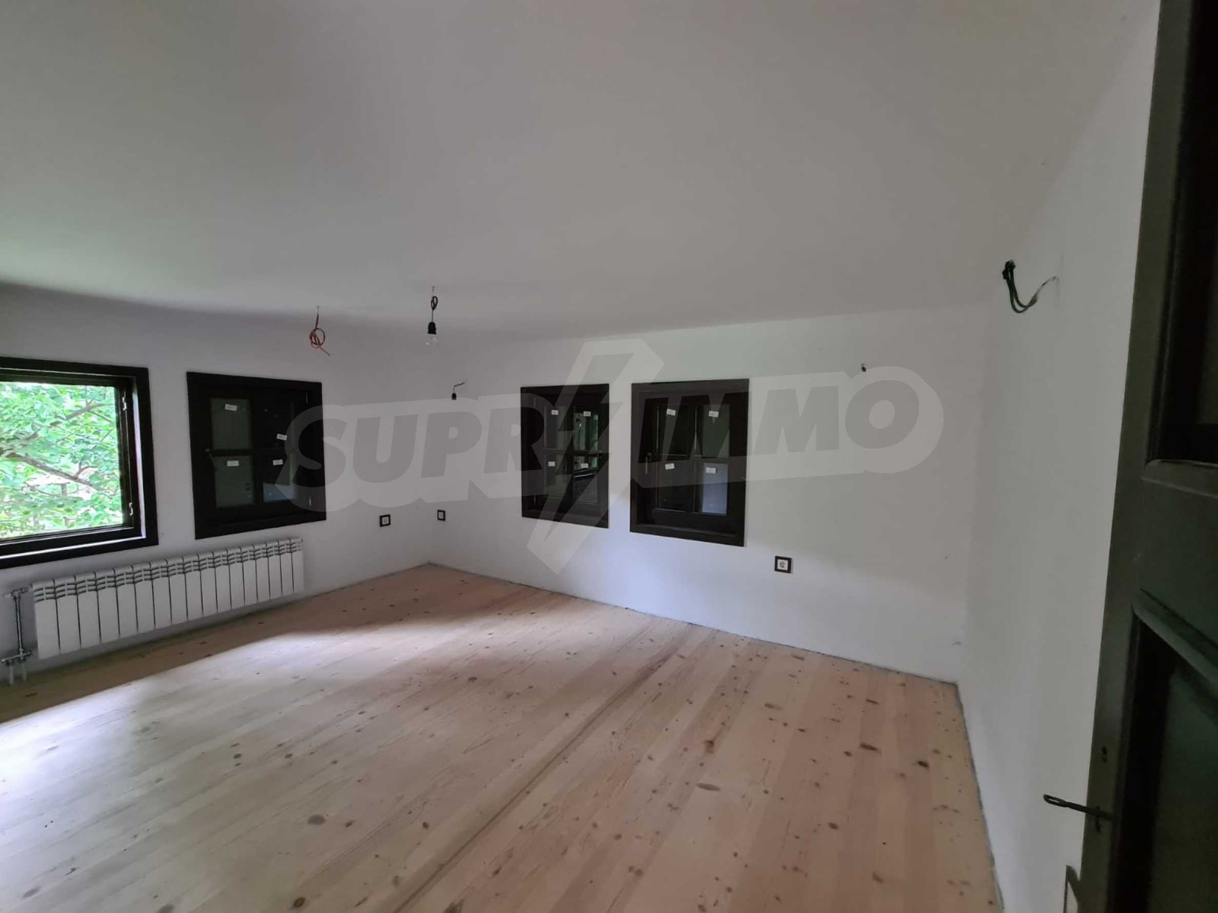 The house is two-story with a basement, with a total area of about 190 sq m and is built in a traditional Bulgarian style, with solid stone and wood.