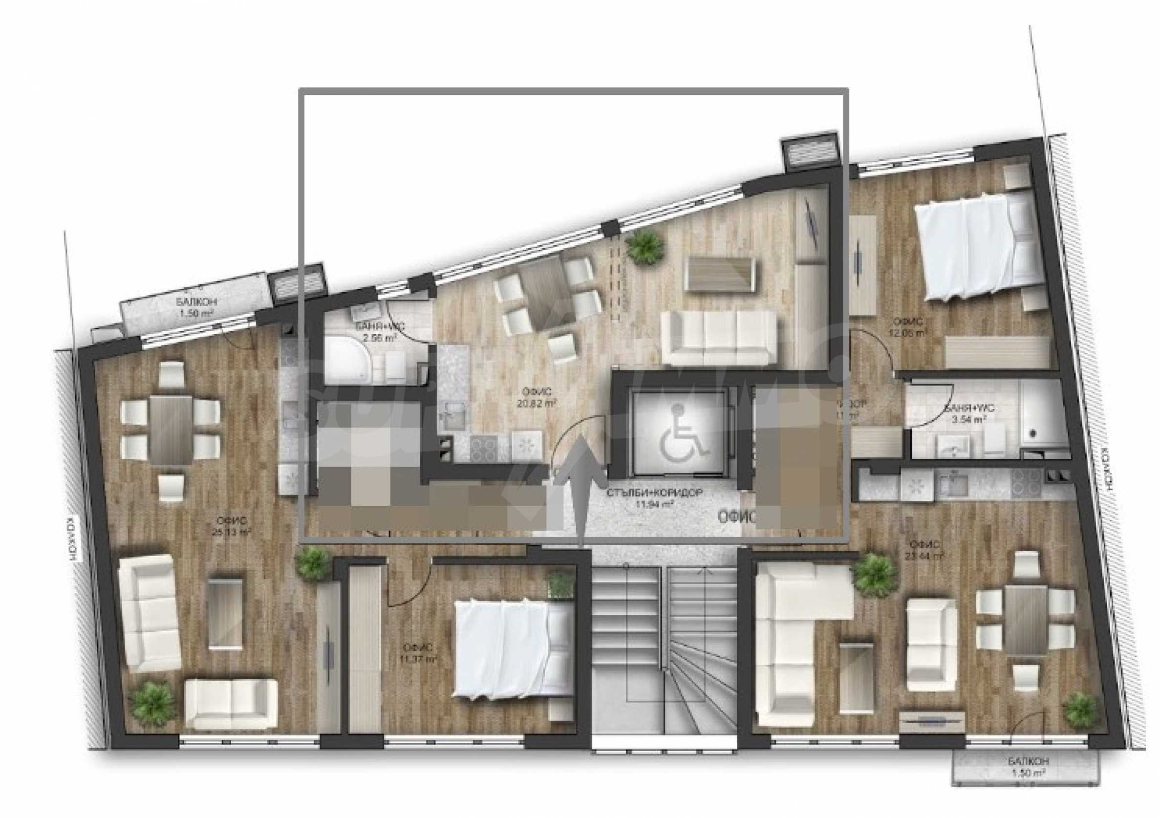 We present a new studio of 34.55 m2, with the status of an office, in a boutique building next to the Opera, in the area of the Ritual Hall: