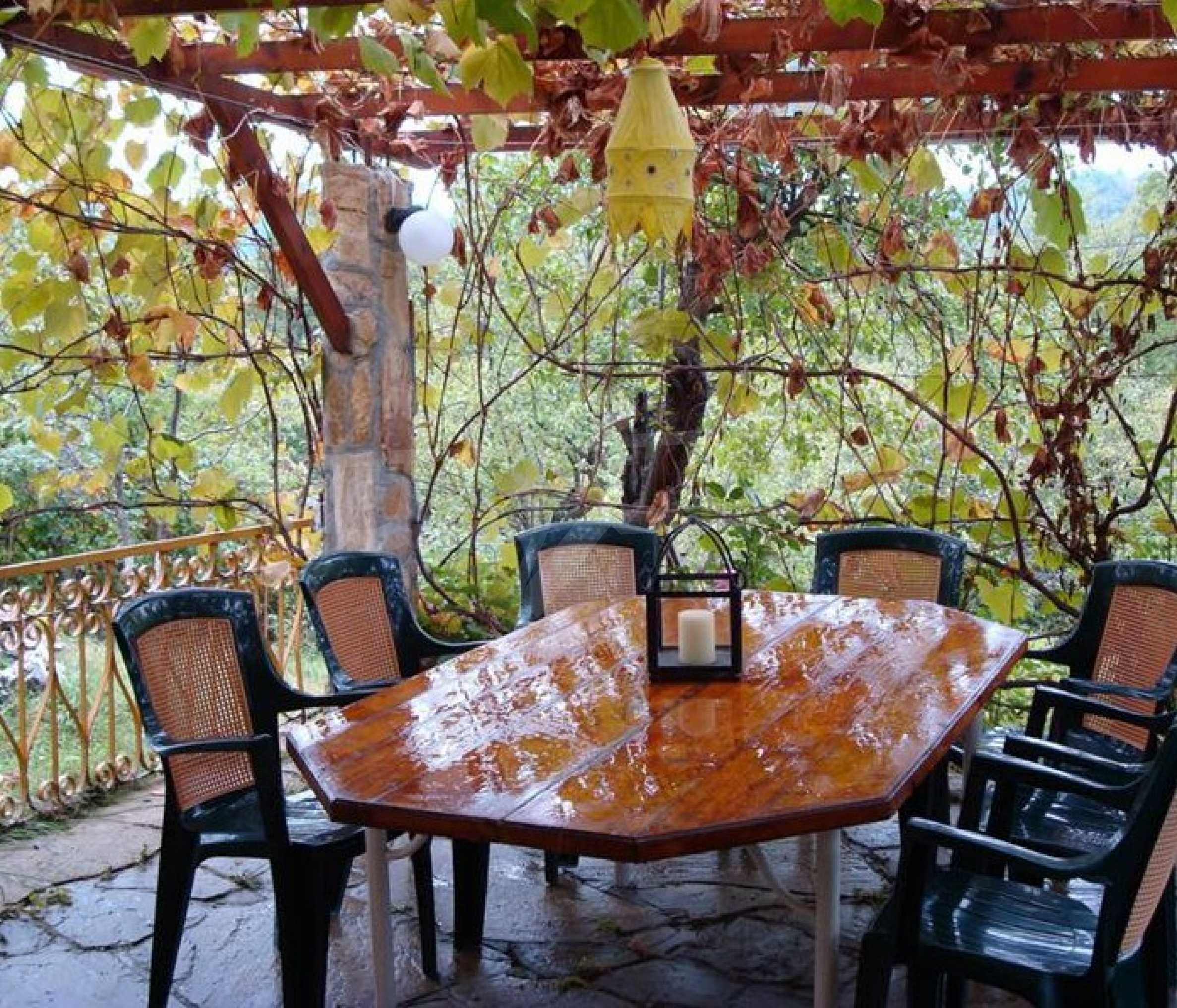 We offer for sale two houses in a large yard only 3.5 km. from Tryavna. The property consists of 2000 m2. yard with two villas, glued together with a total area of about 350 m2. The two villas have been renovated with local heating, PVC windows, roller blinds, a new roof with Bramak tiles and have a total of twelve rooms, four bathrooms with toilets, a billiard room with billiards and a workshop. Each villa has separate entrances and has working fireplaces. They are sold fully furnished and are suitable for rent as guest houses. In the yard of the villa there is a concrete pool with dimensions 7.5x4.7 / 130, lined with glass-ceramic tiles, lighting and treatment plant. By the pool there is a summer kitchen with a barbecue and an oven and a large dining table with a shed. In the yard there is its own water source from two wells of 14 m each, connected in the base to each other and with a hydrophore pump.