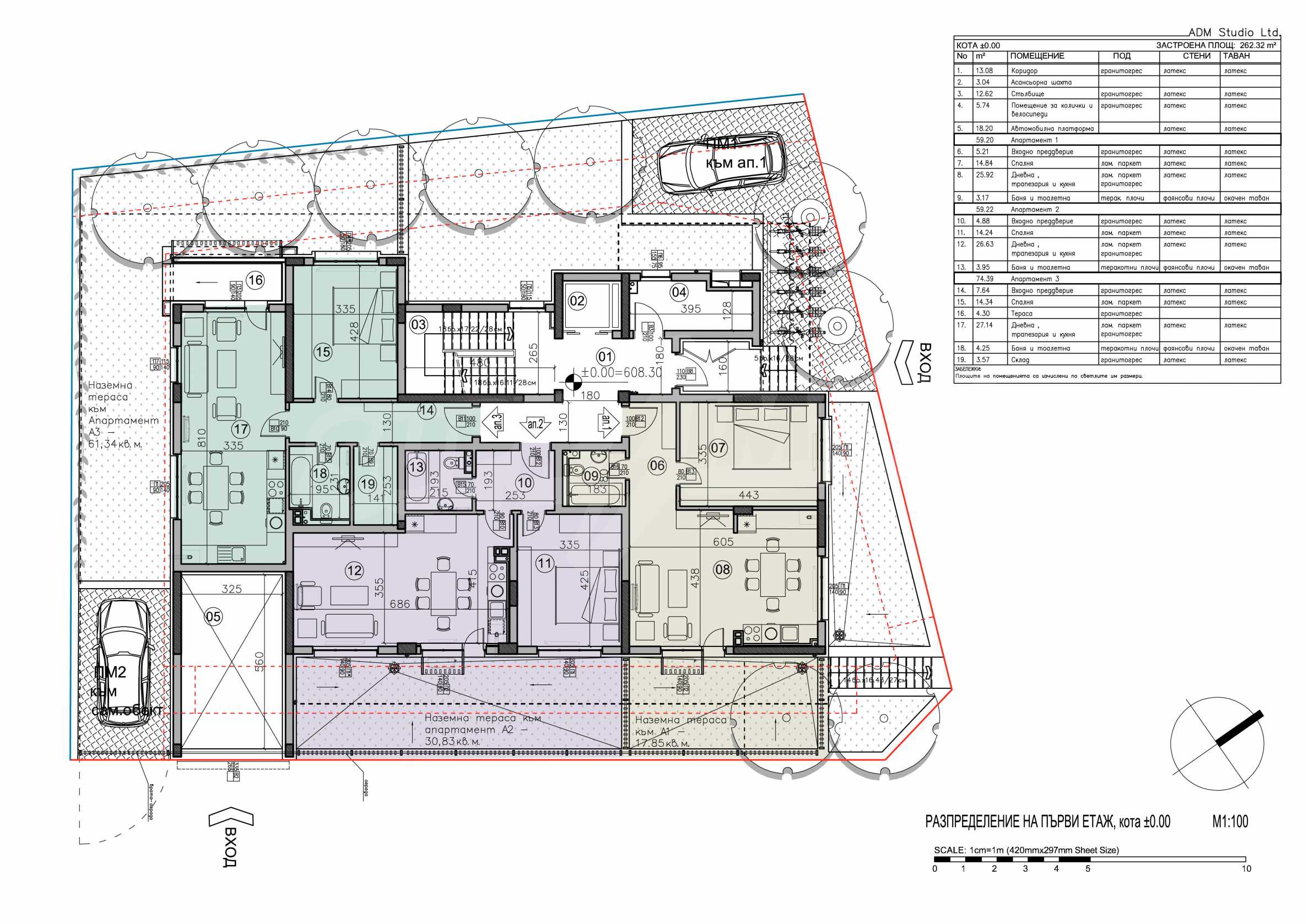 Total area: 70.43 sq. M, common parts 11.23 sq. M. And yard 17.85 sq. M.