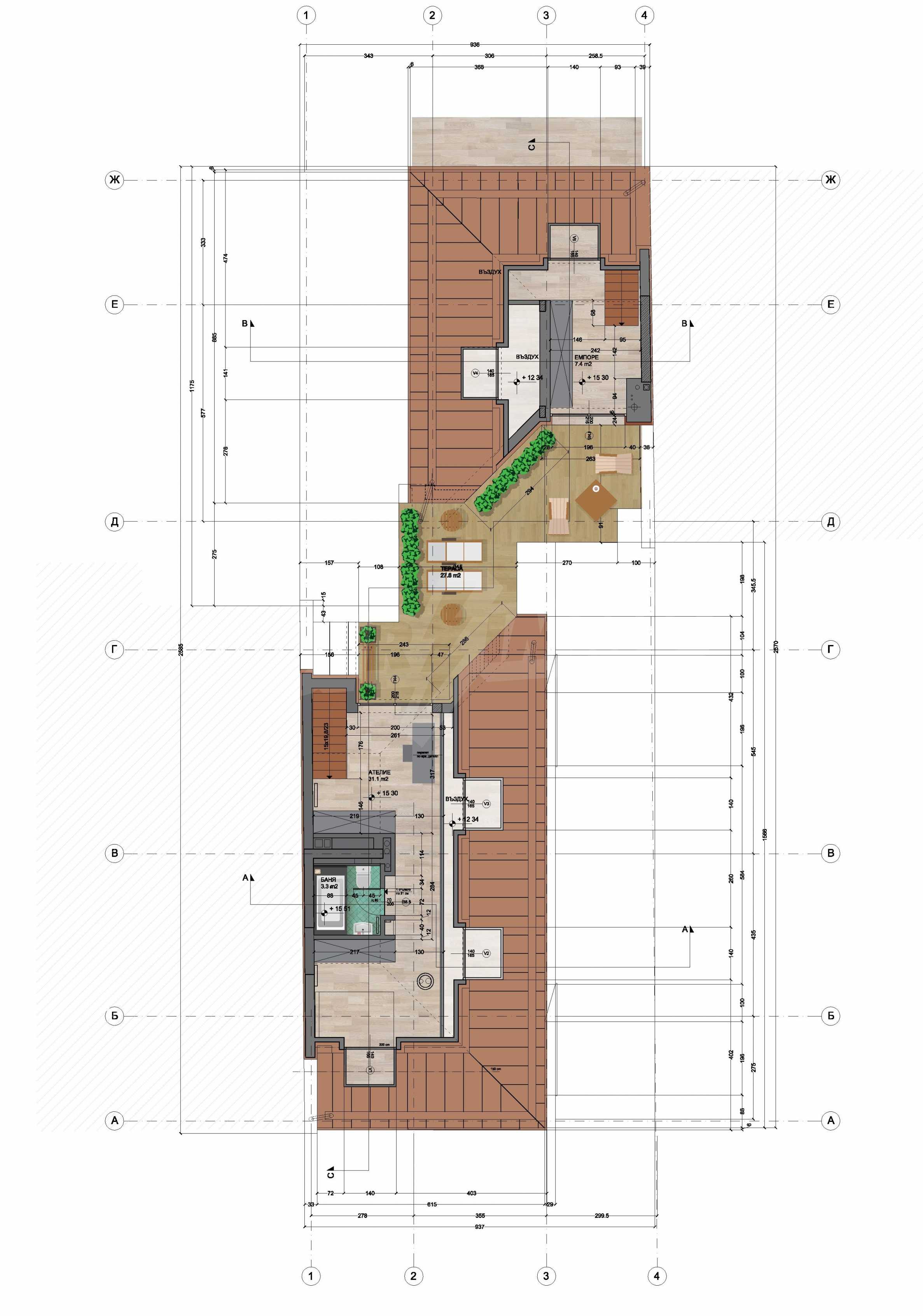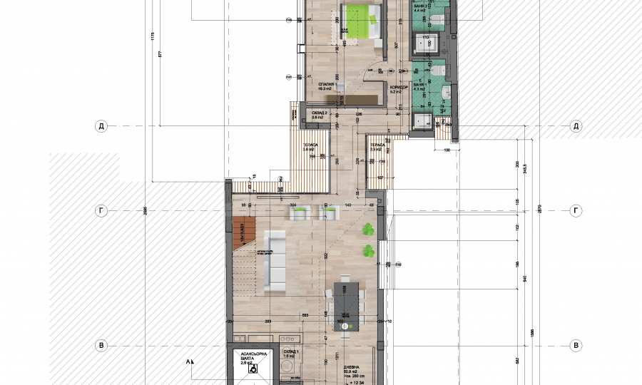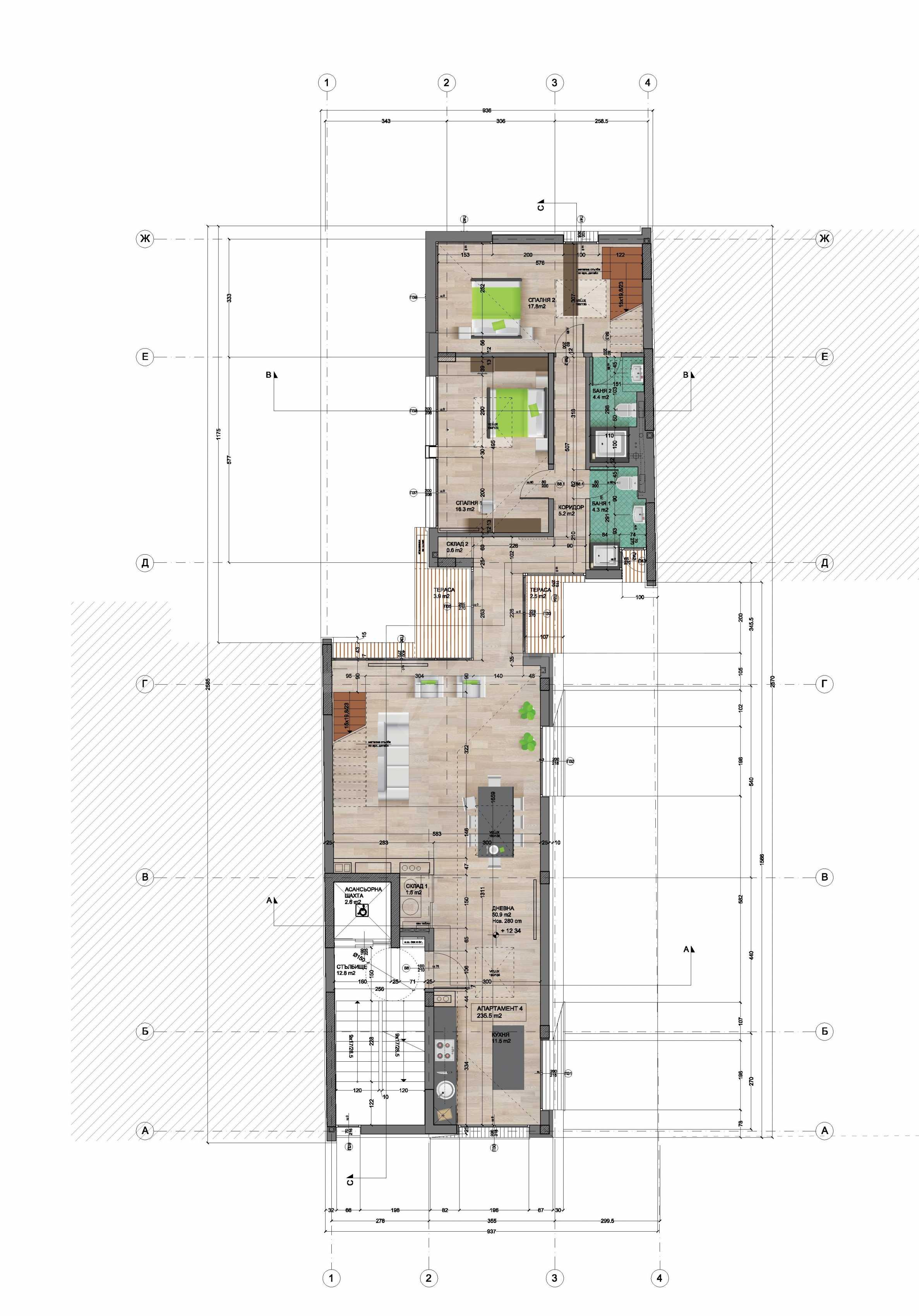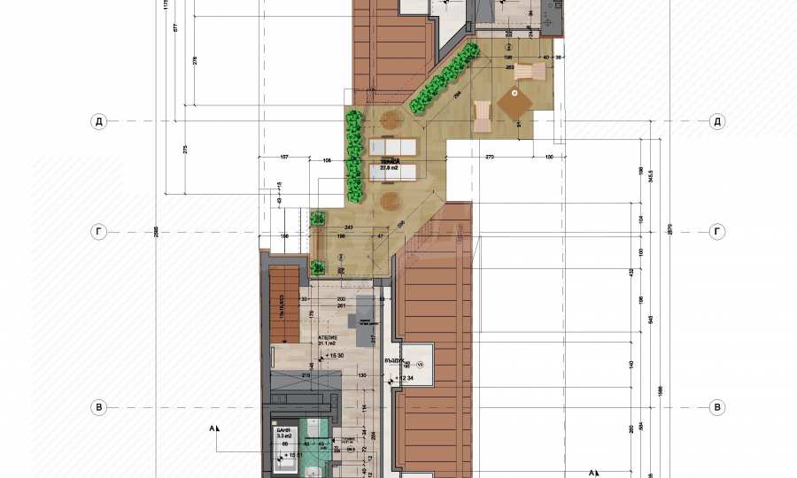 Spacious penthouse in a small residential building, the work of an architectural - design studio. The apartment is situated next to Oborishte Street and the Military Academy “G. S. Rakovski and has an expected permission for use - June 2021. The area is developed and offers all amenities at short distances. The main roads serving the area are Hristo Blvd. and Evlogi Georgievi Blvd.