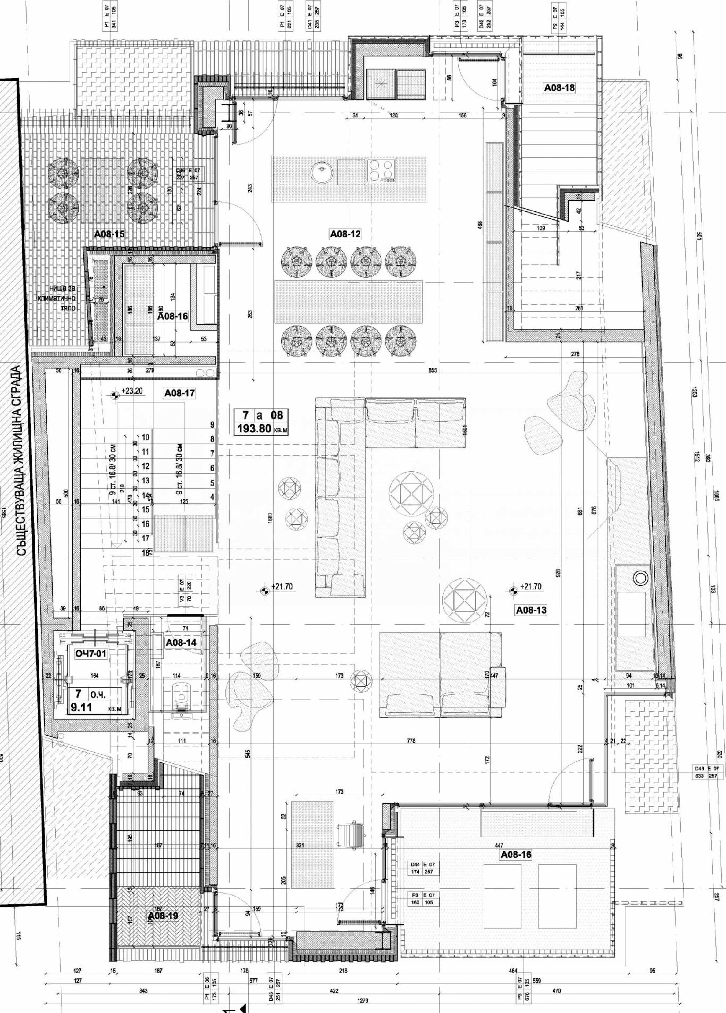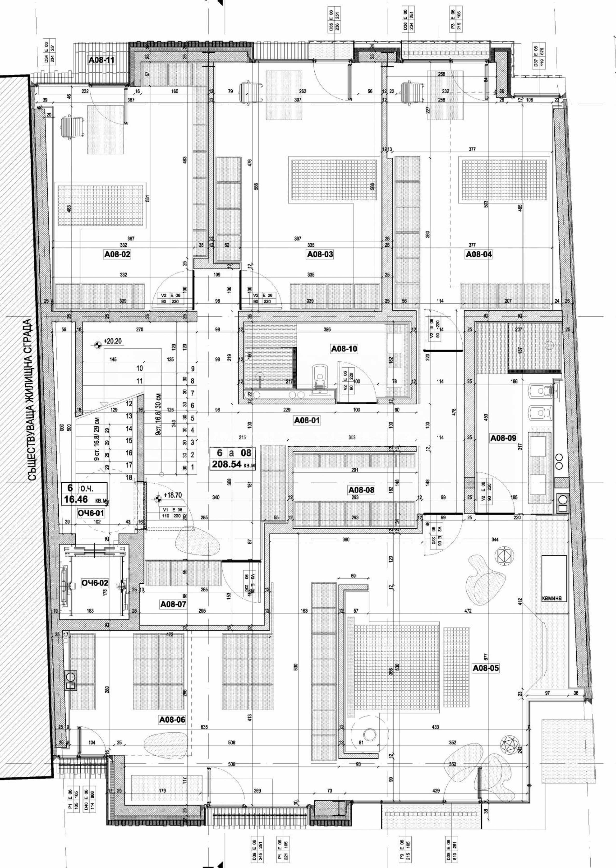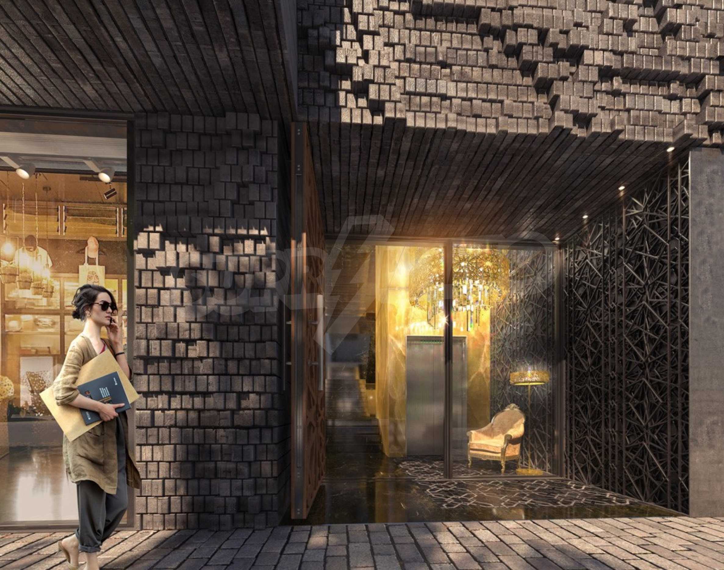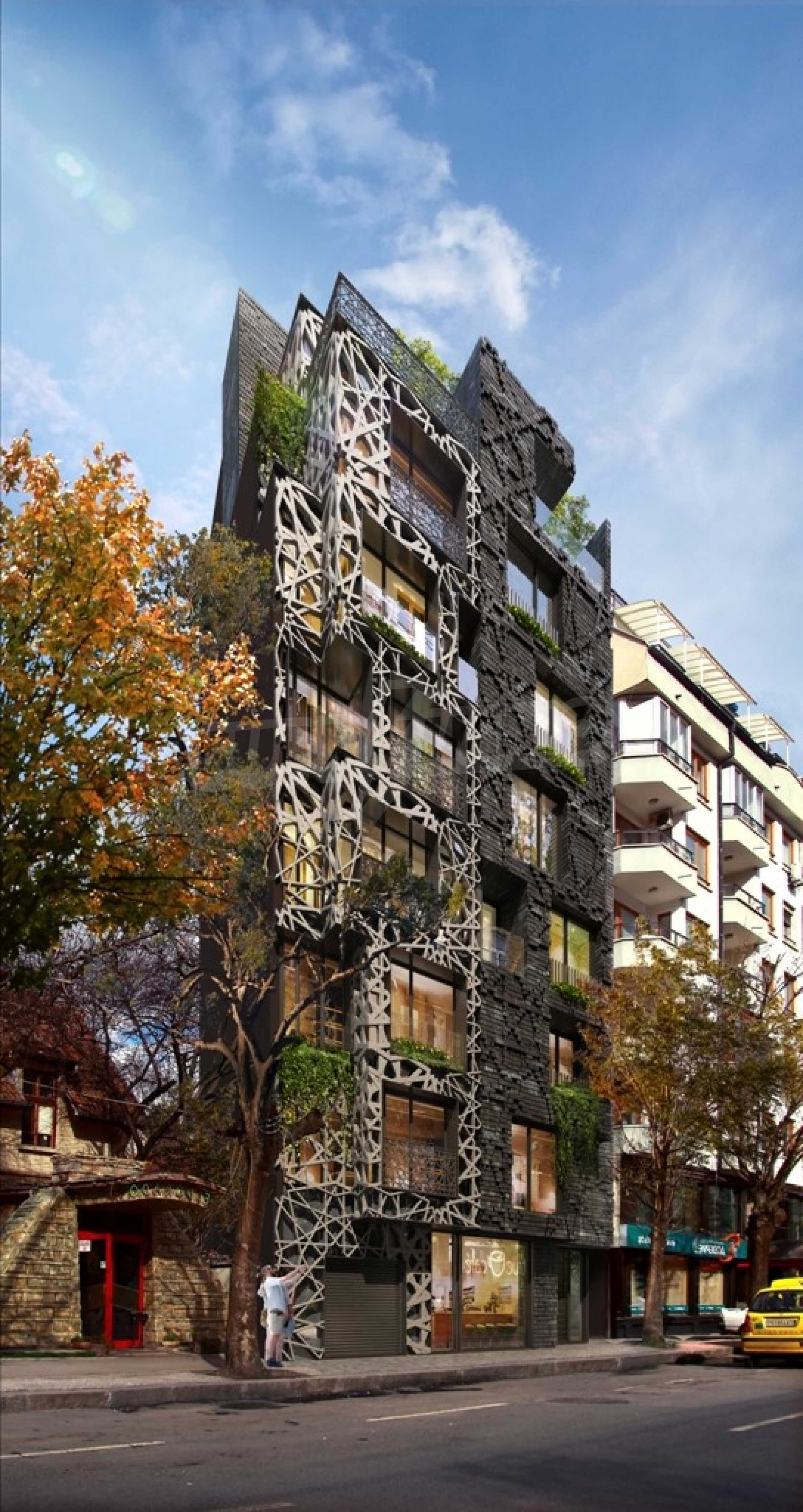 An extremely interesting property in the building is the penthouse on two levels with a total area of 472 m2., having its own roof terrace-yard of 156 m2. An elevator reaches it directly. The huge apartment creates the feeling of a house located high above the ground. The interior of this one-of-a-kind property is absolutely clean, without supporting columns, which implies easy redistribution of the premises. The height of the premises reaches 6 m. The ceiling of the living room and the kitchen is with upper glazing with external ornaments, on which you can walk. The roof areas of 156 m2 are landscaped and have an outdoor barbecue and relaxation area. Each floor of the penthouse has one or two terraces.