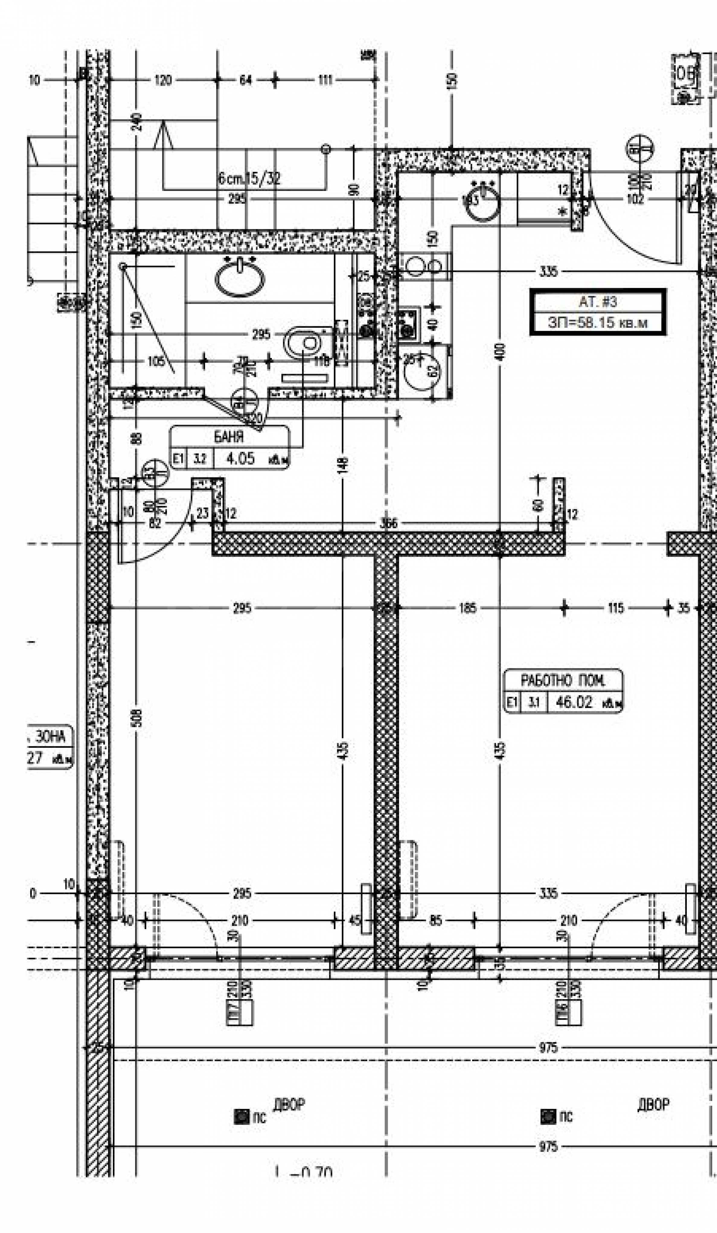 The studio is plastered and has an area of 65.36 m2. and a yard with an area of 22.67 m2.