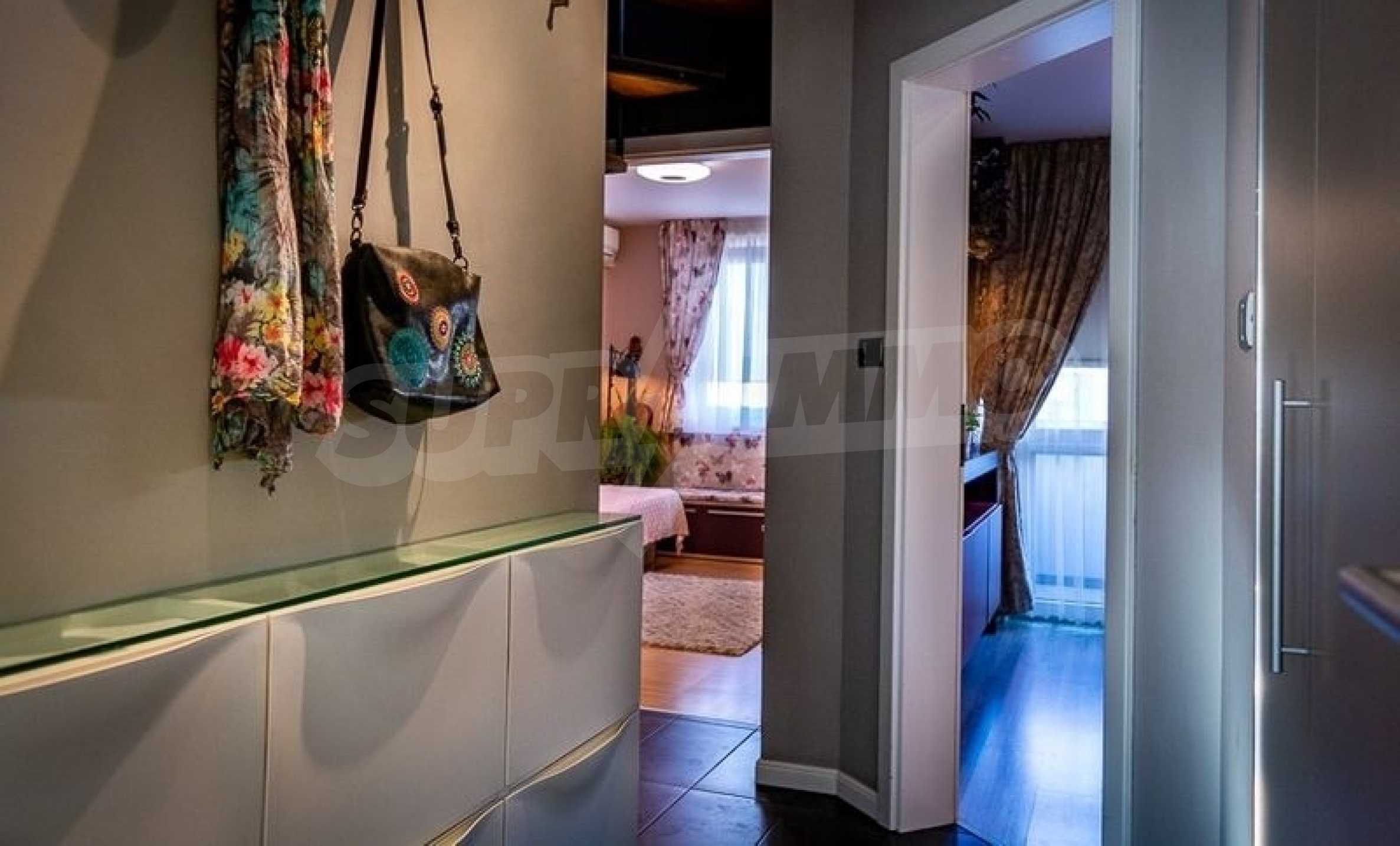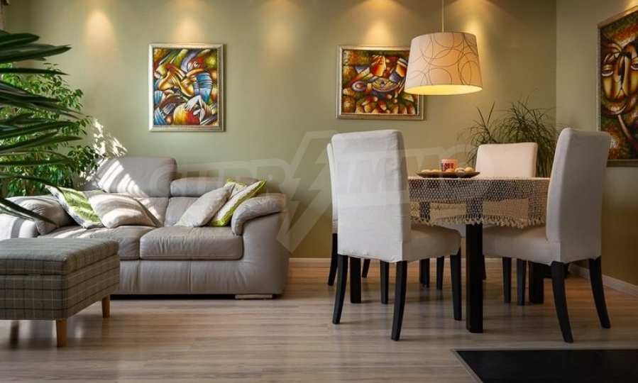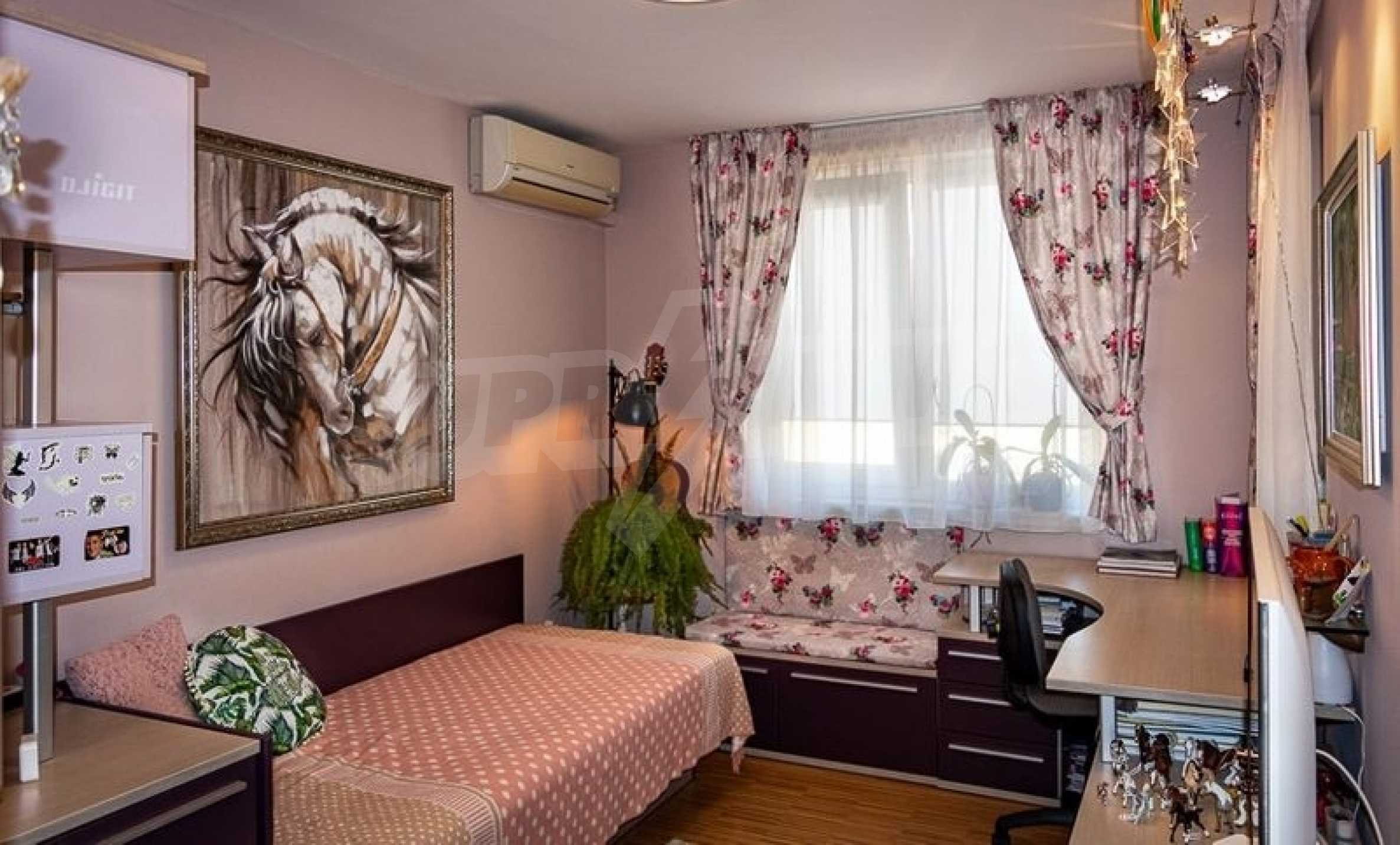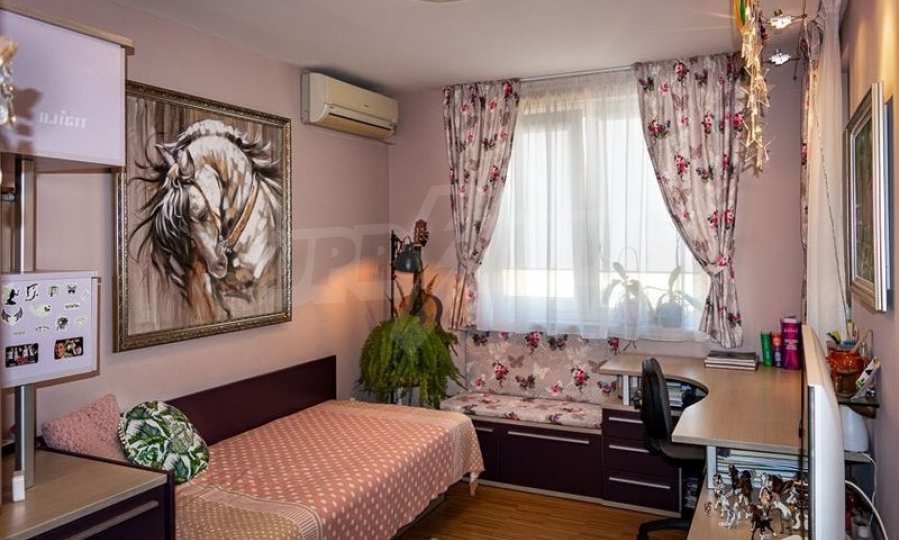 This spacious three-bedroom apartment with a panoramic terrace (winter and summer garden) is located on a quiet street near Chataldja Blvd., the Sports Hall and the Sea Garden, within walking distance of the center of Varna.