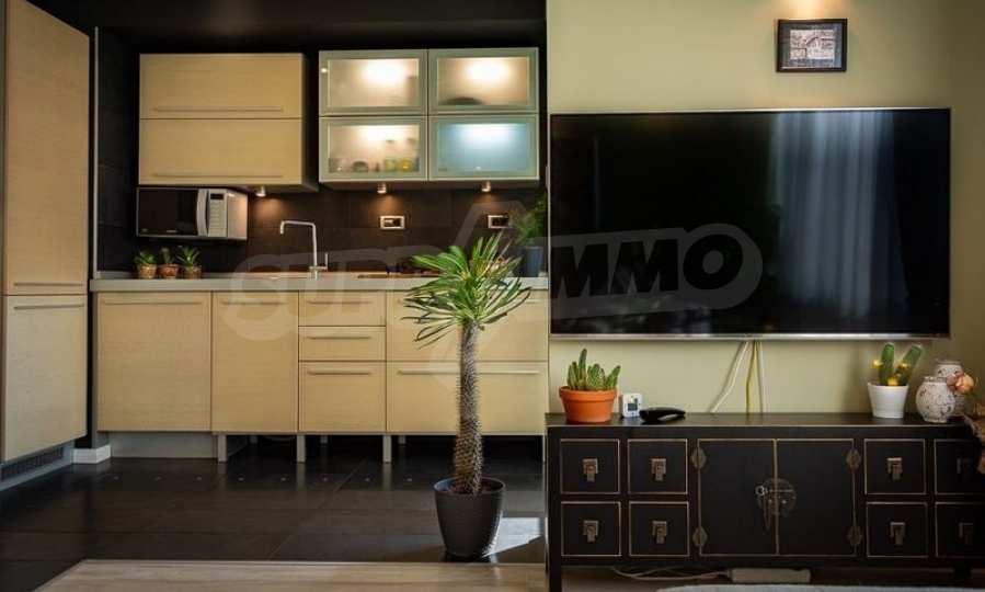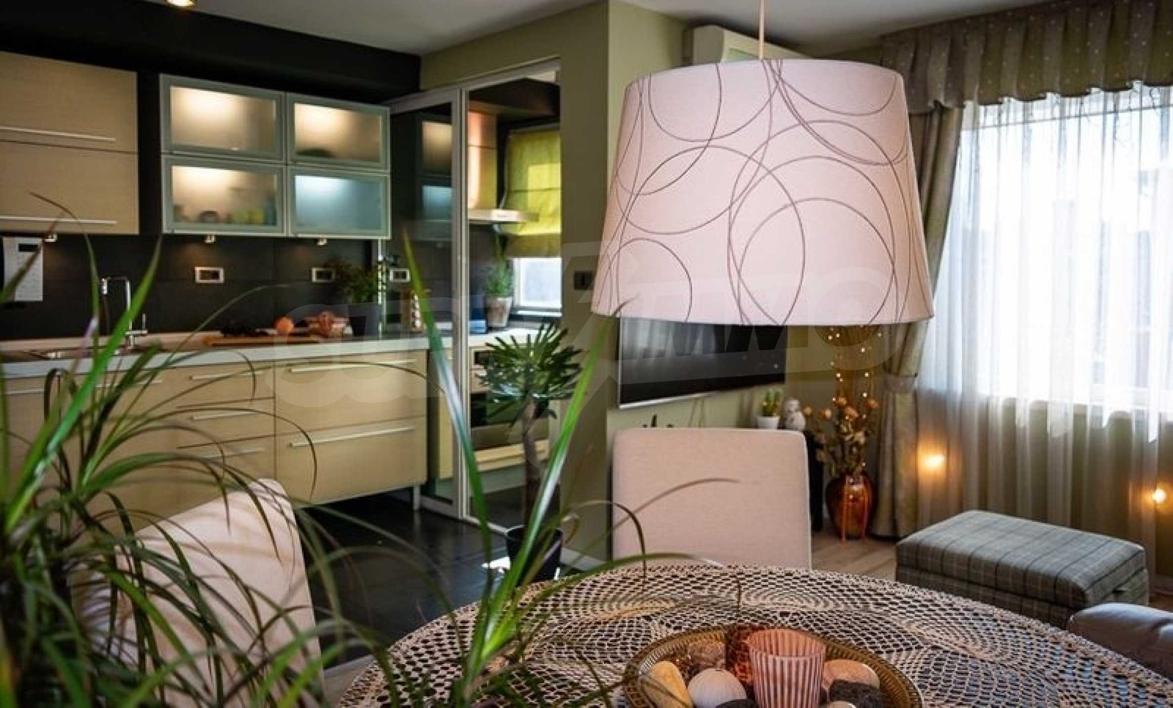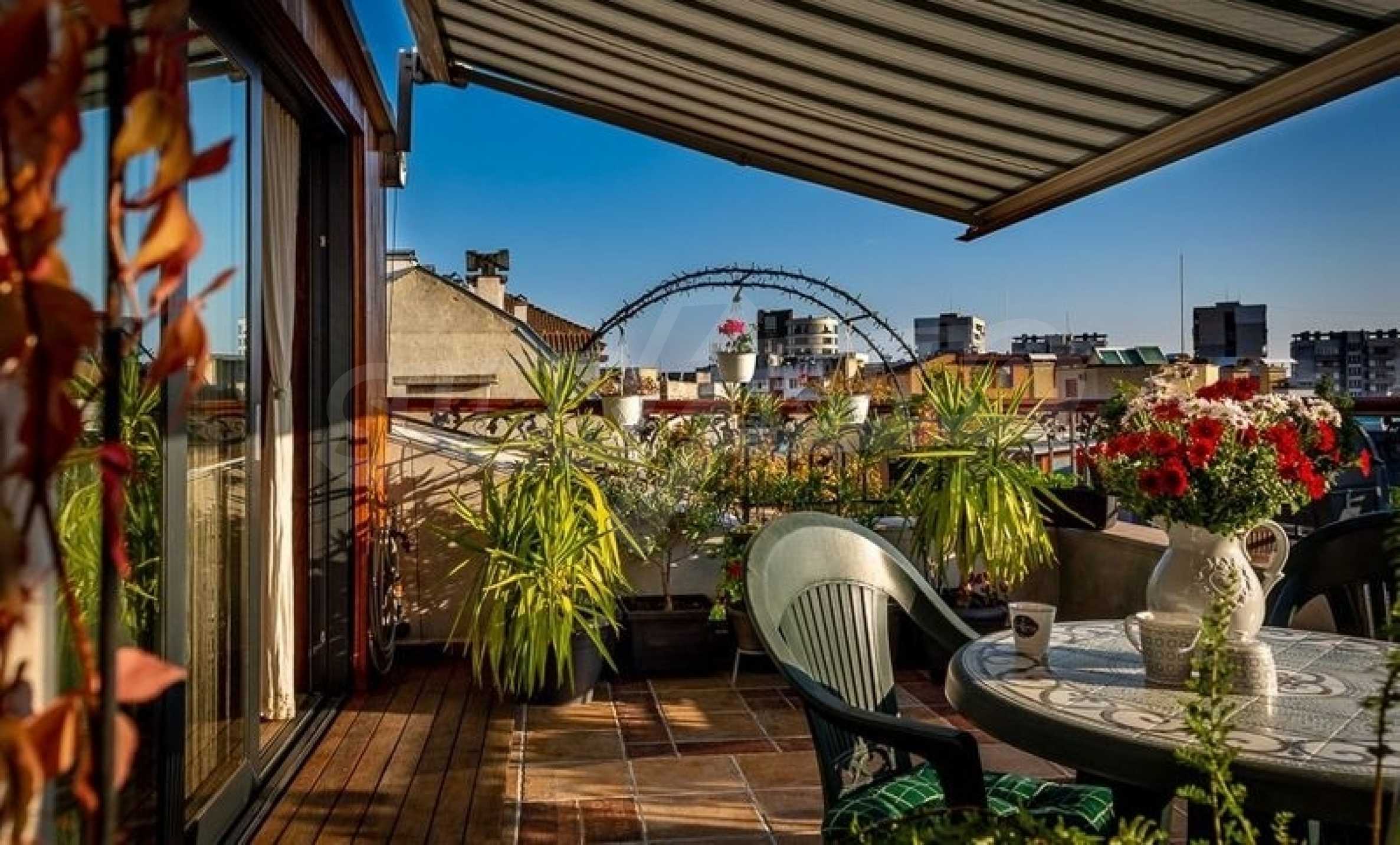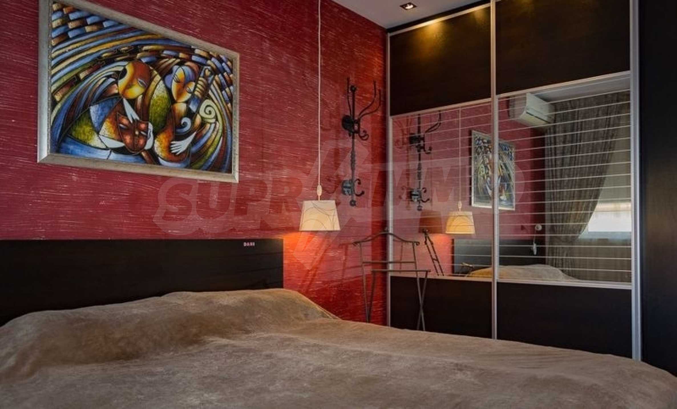 This spacious three-bedroom apartment with a panoramic terrace (winter and summer garden) is located on a quiet street near Chataldja Blvd., the Sports Hall and the Sea Garden, within walking distance of the center of Varna.