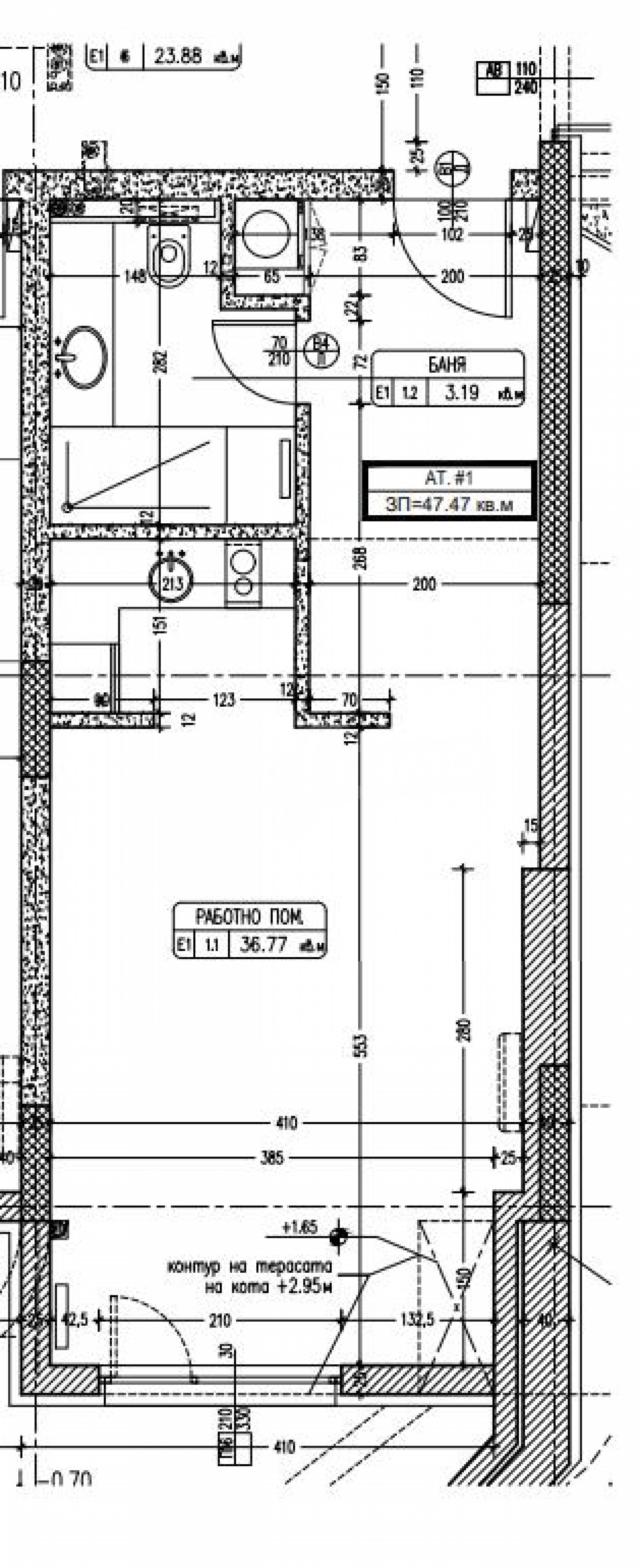 The studio is plastered and has a total area of 32.38 m2. and a yard with an area of 11.20 m2.