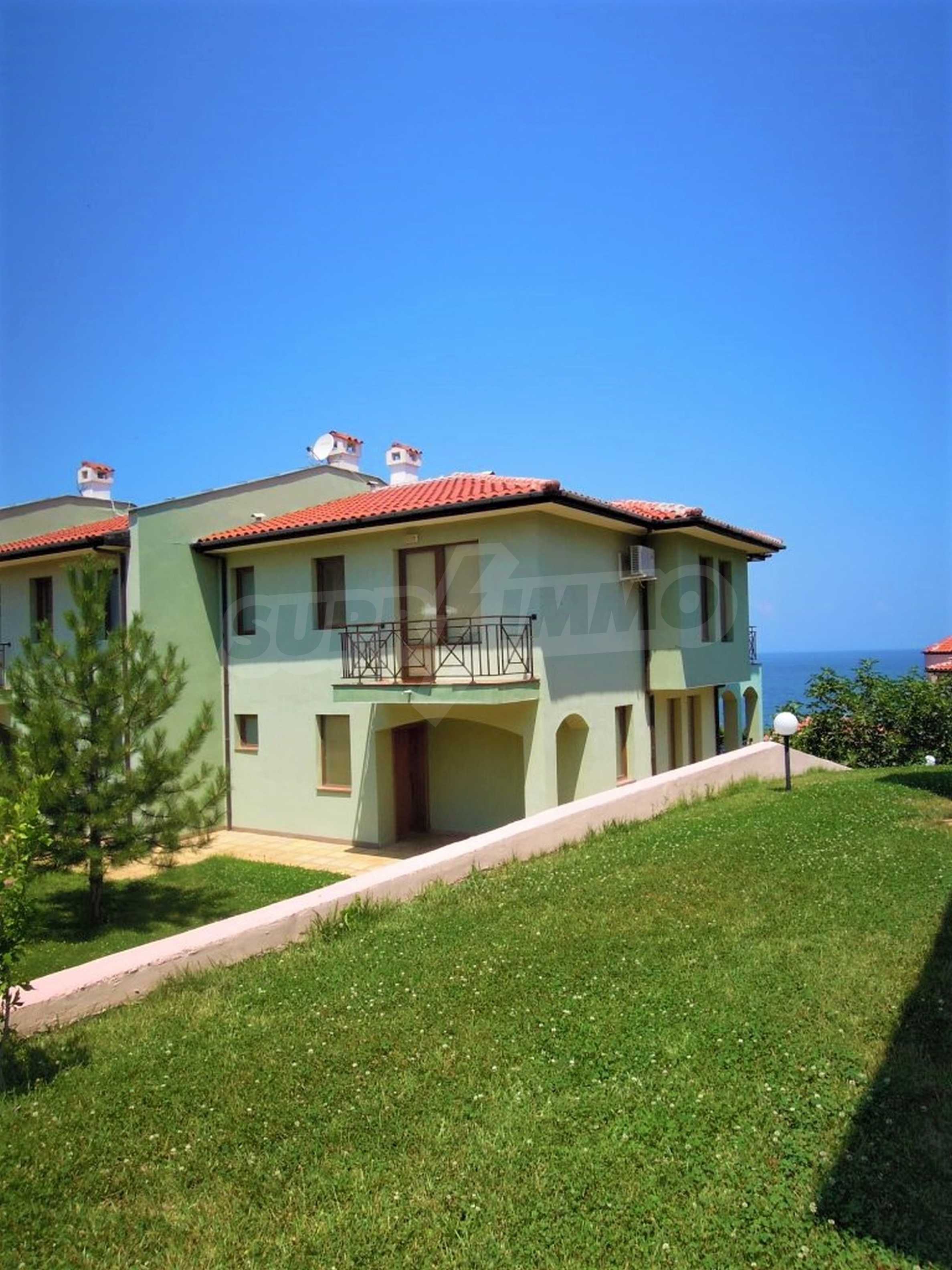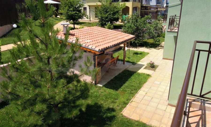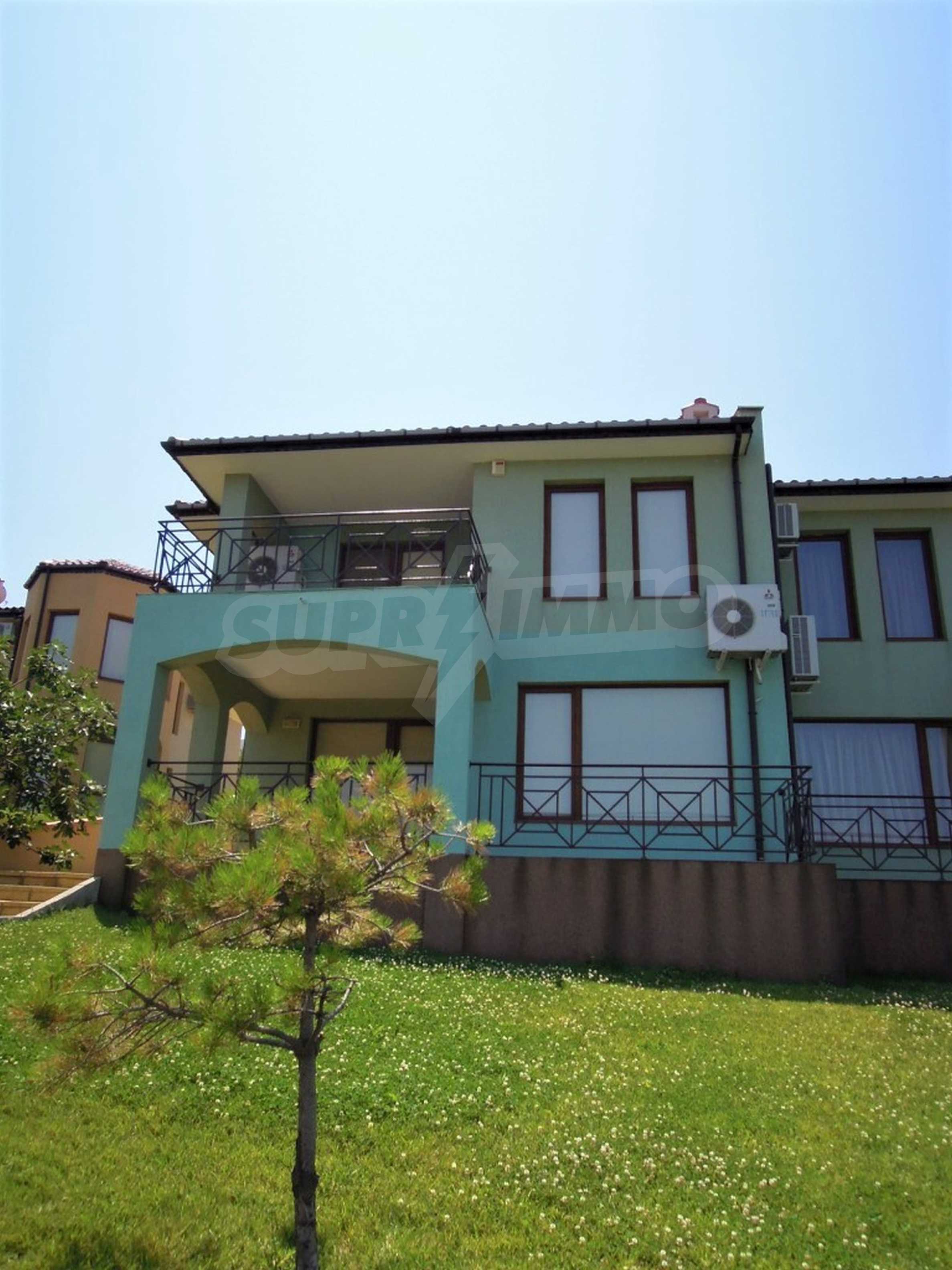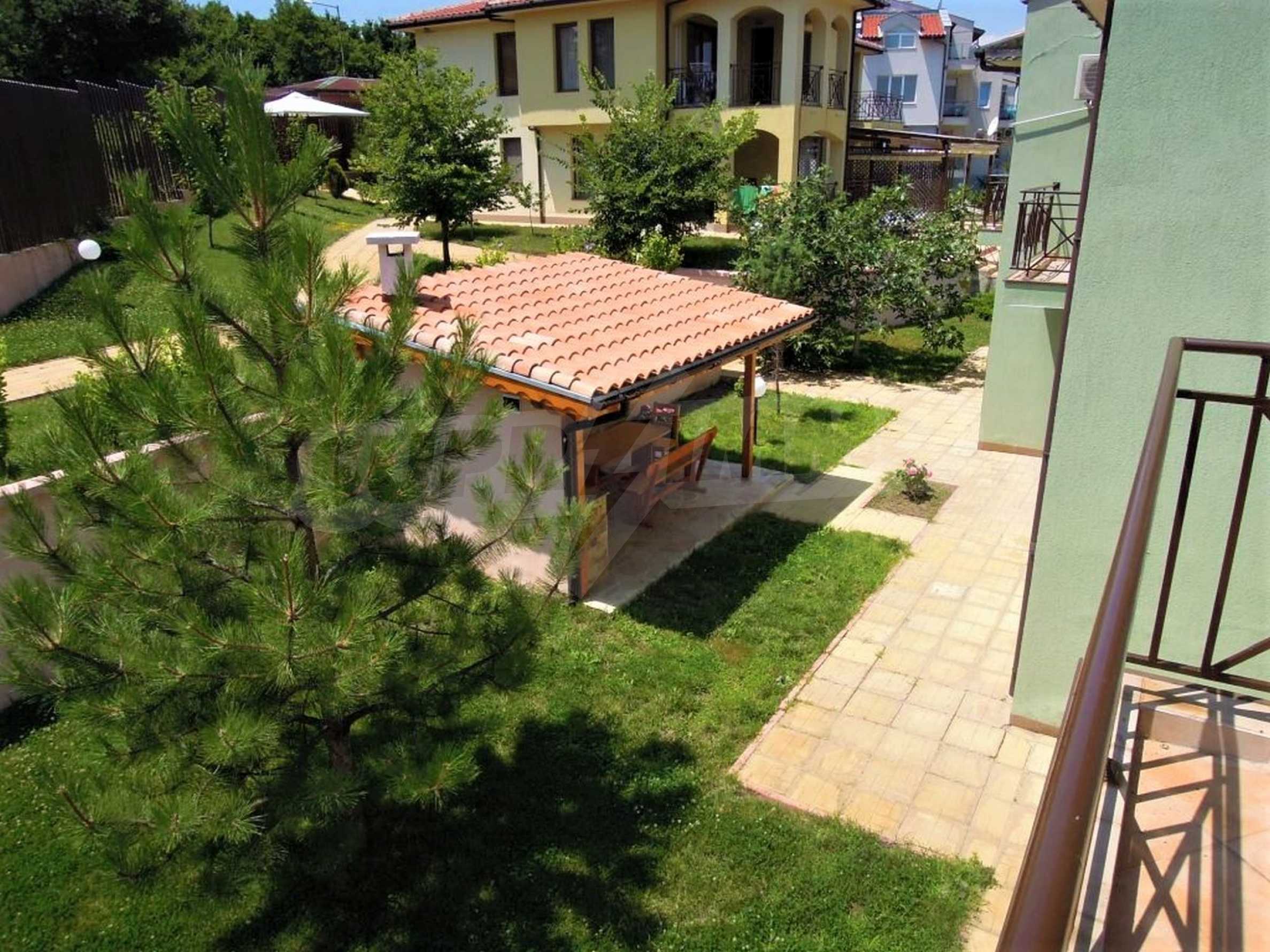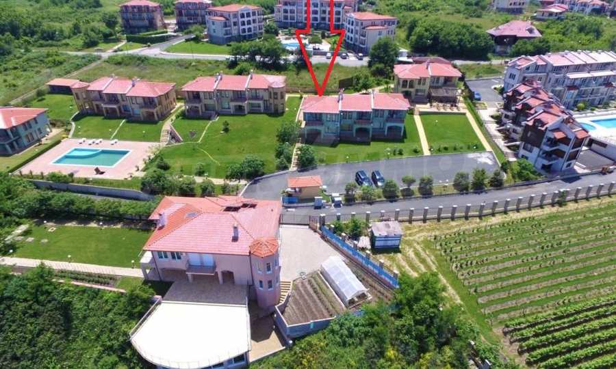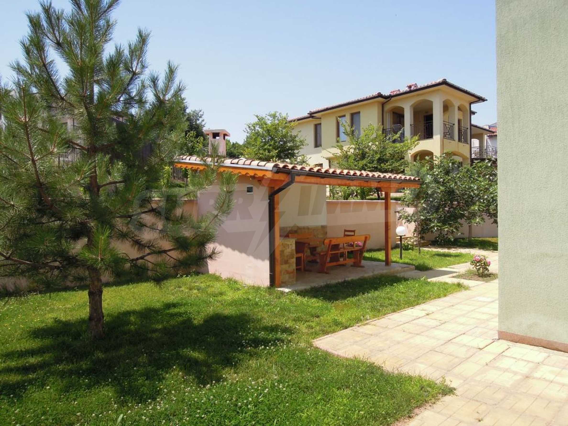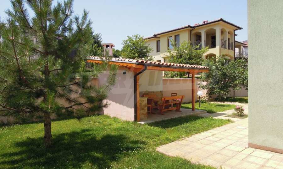 The sunny property is part of a gated complex of houses, located meters from the sea, in the area next to the popular complex "Sozopolis". The area is completely restricted to outsiders, with 24-hour security and free parking for cars. There is an outdoor pool, recreation area and barbecue, lots of greenery and a beach, within walking distance is the new hypermarket LIDL.
