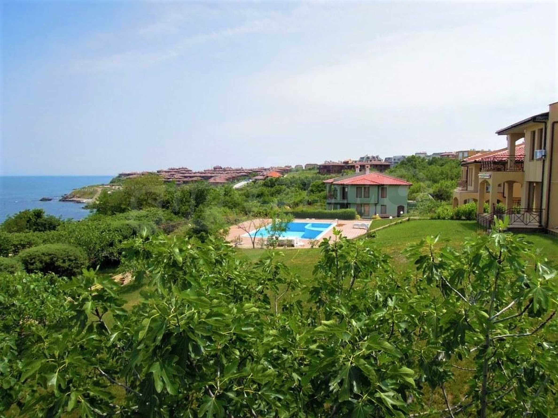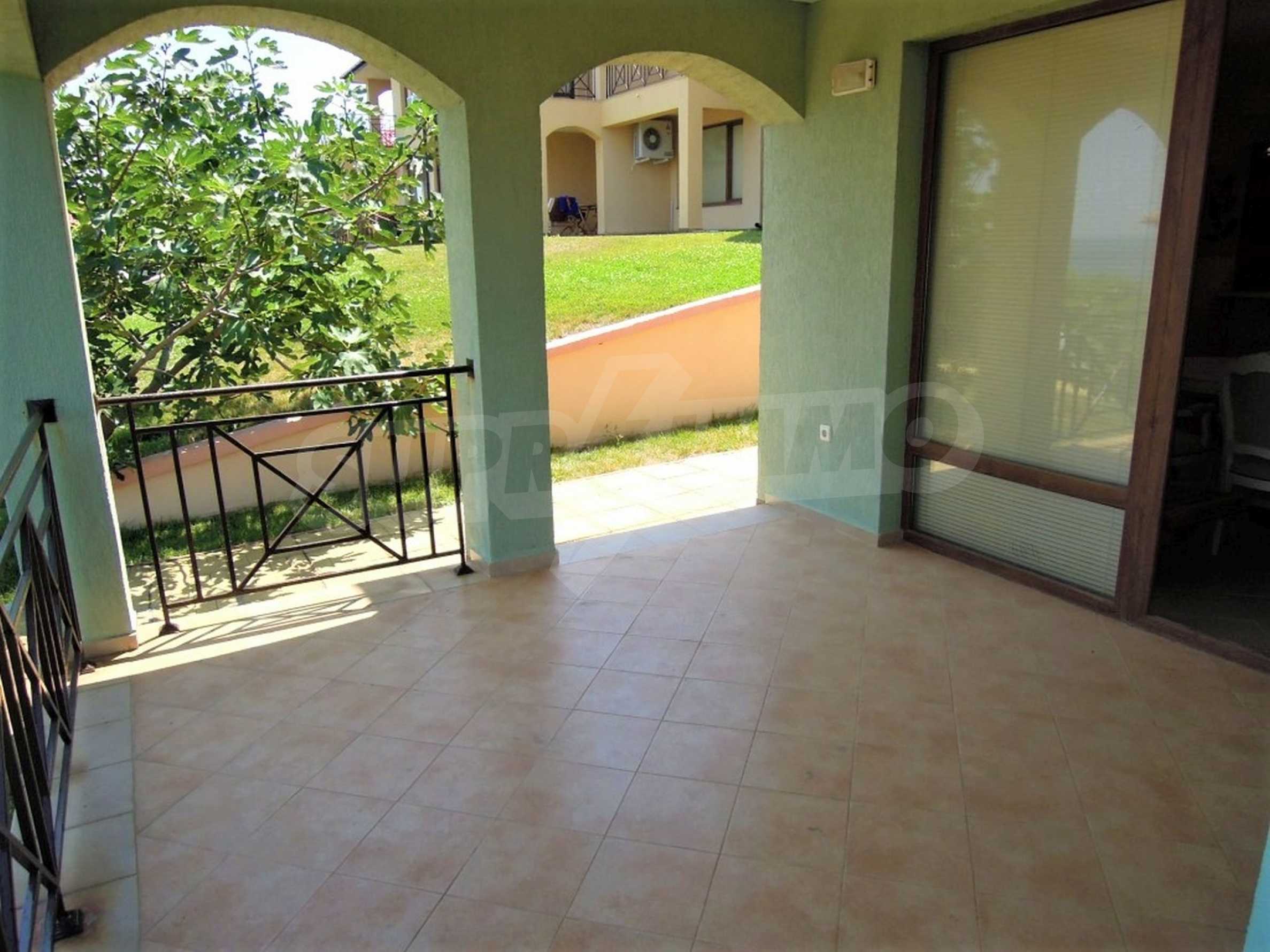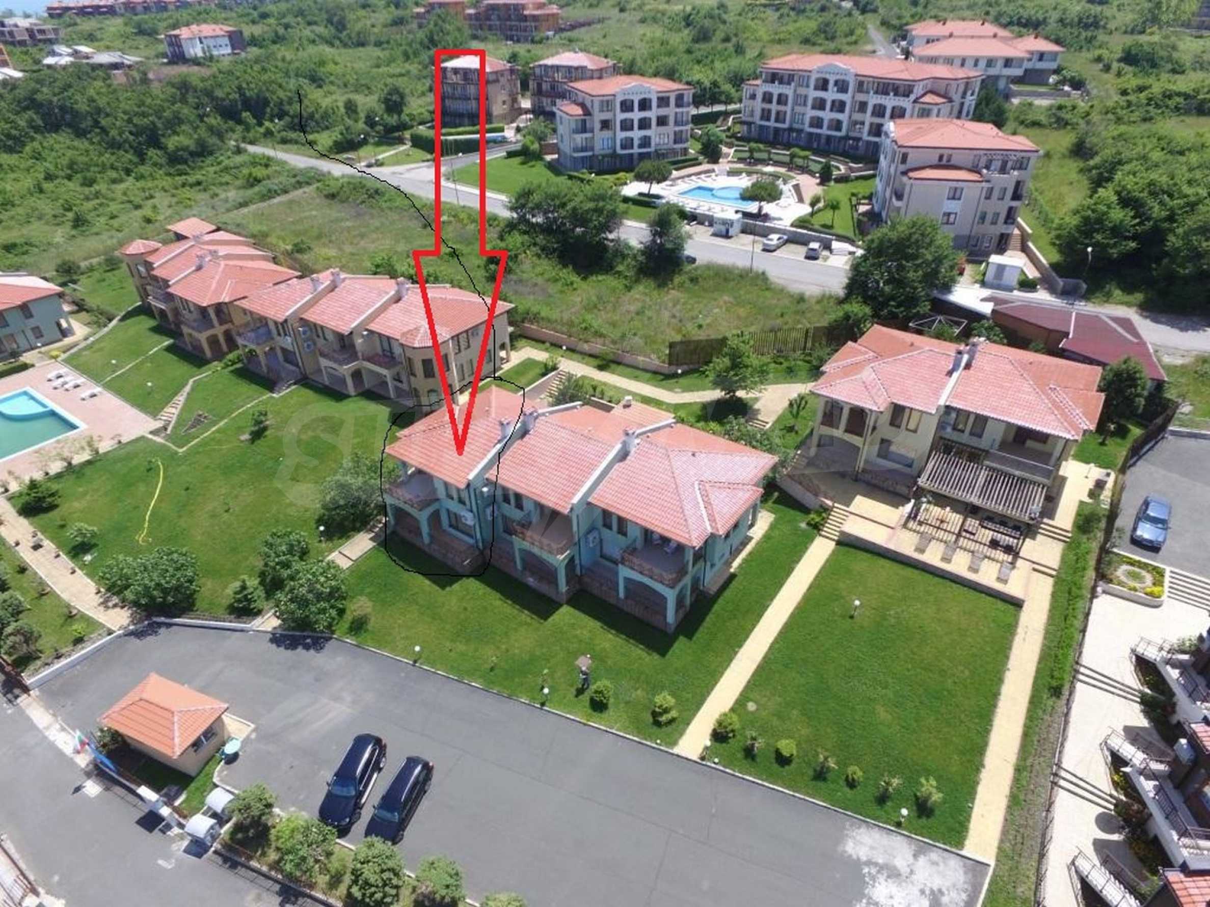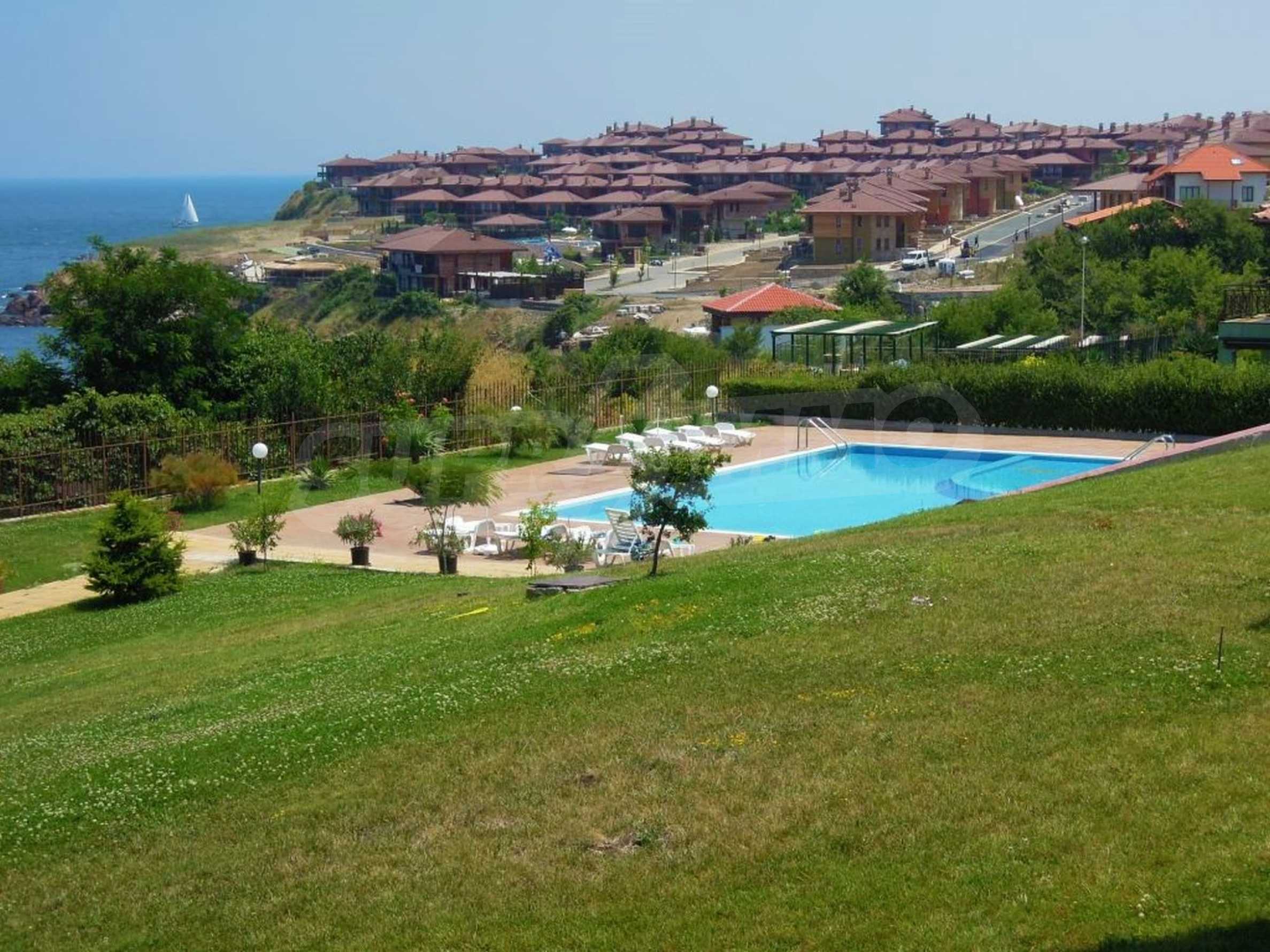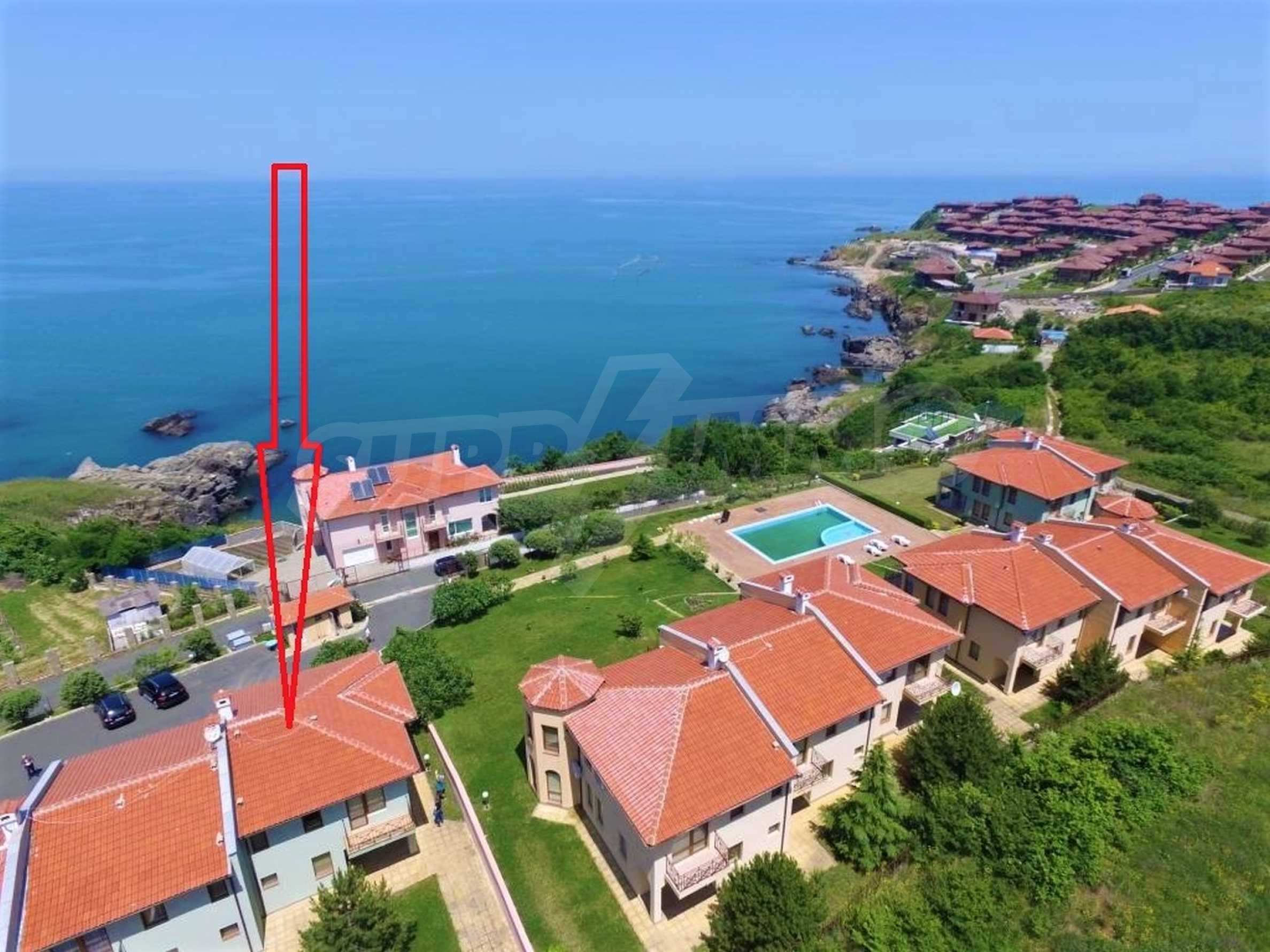 The sunny property is part of a gated complex of houses, located meters from the sea, in the area next to the popular complex "Sozopolis". The area is completely restricted to outsiders, with 24-hour security and free parking for cars. There is an outdoor pool, recreation area and barbecue, lots of greenery and a beach, within walking distance is the new hypermarket LIDL.