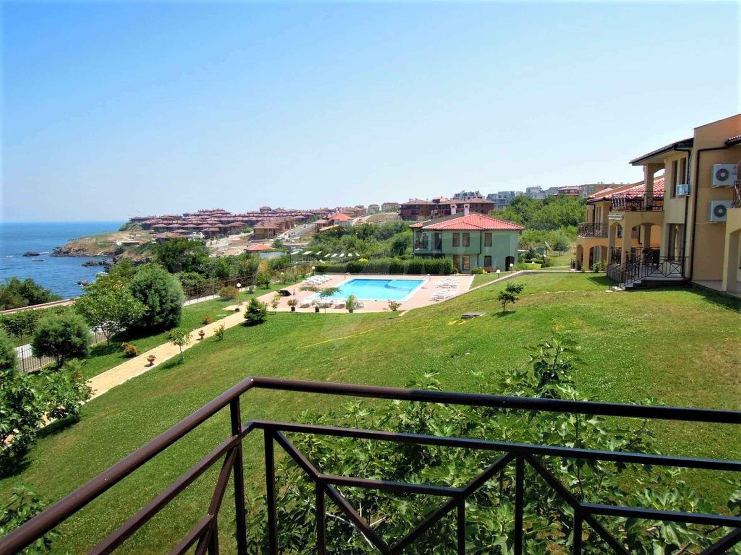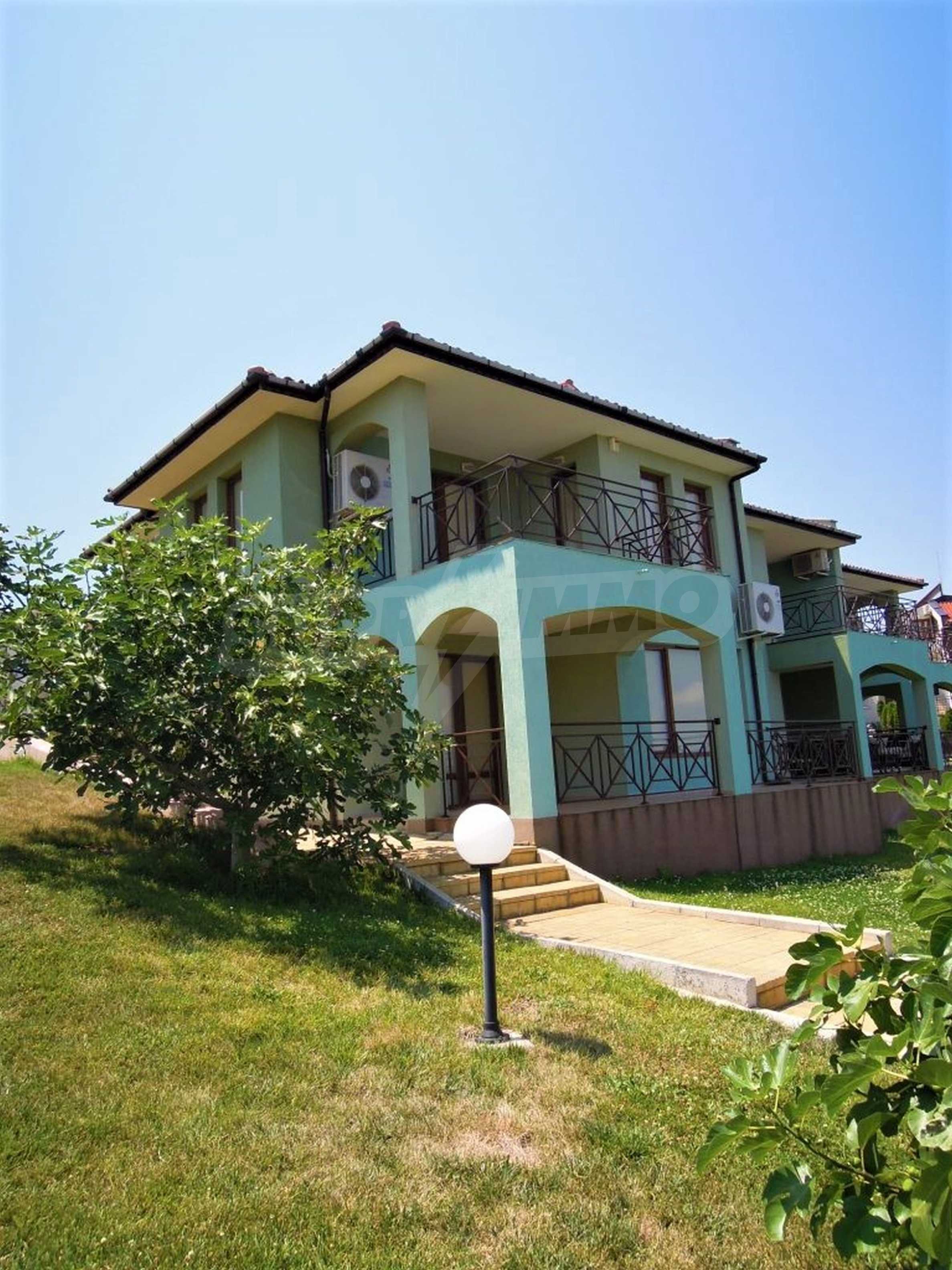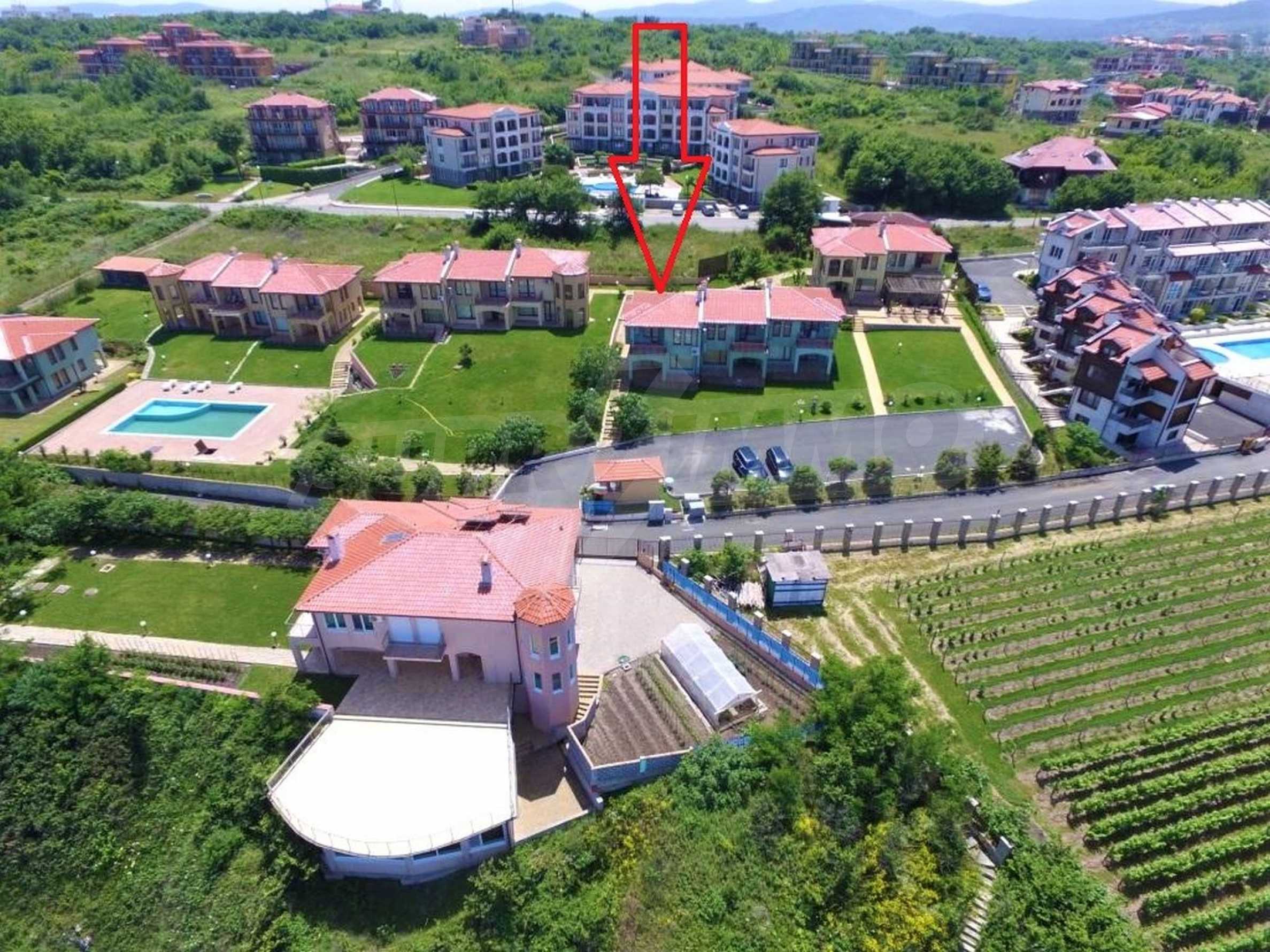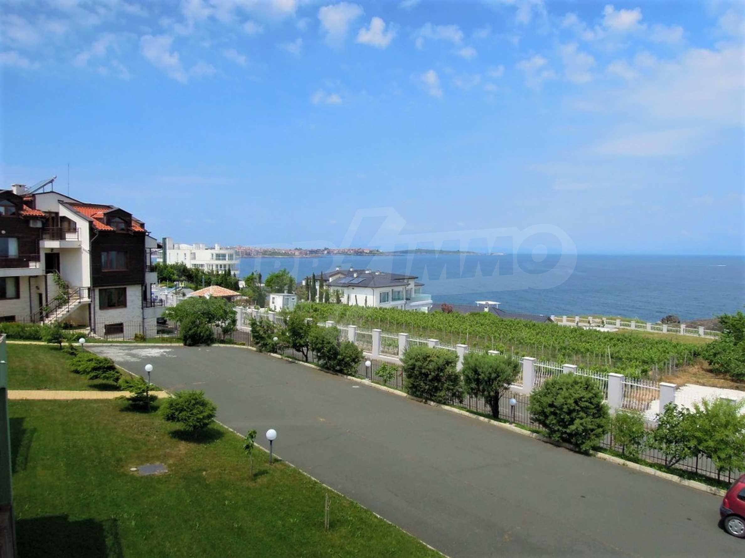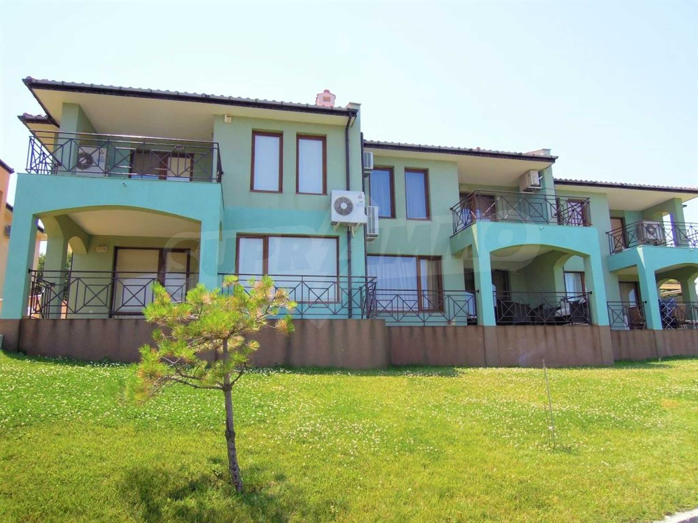 The sunny property is part of a gated complex of houses, located meters from the sea, in the area next to the popular complex "Sozopolis". The area is completely restricted to outsiders, with 24-hour security and free parking for cars. There is an outdoor pool, recreation area and barbecue, lots of greenery and a beach, within walking distance is the new hypermarket LIDL.