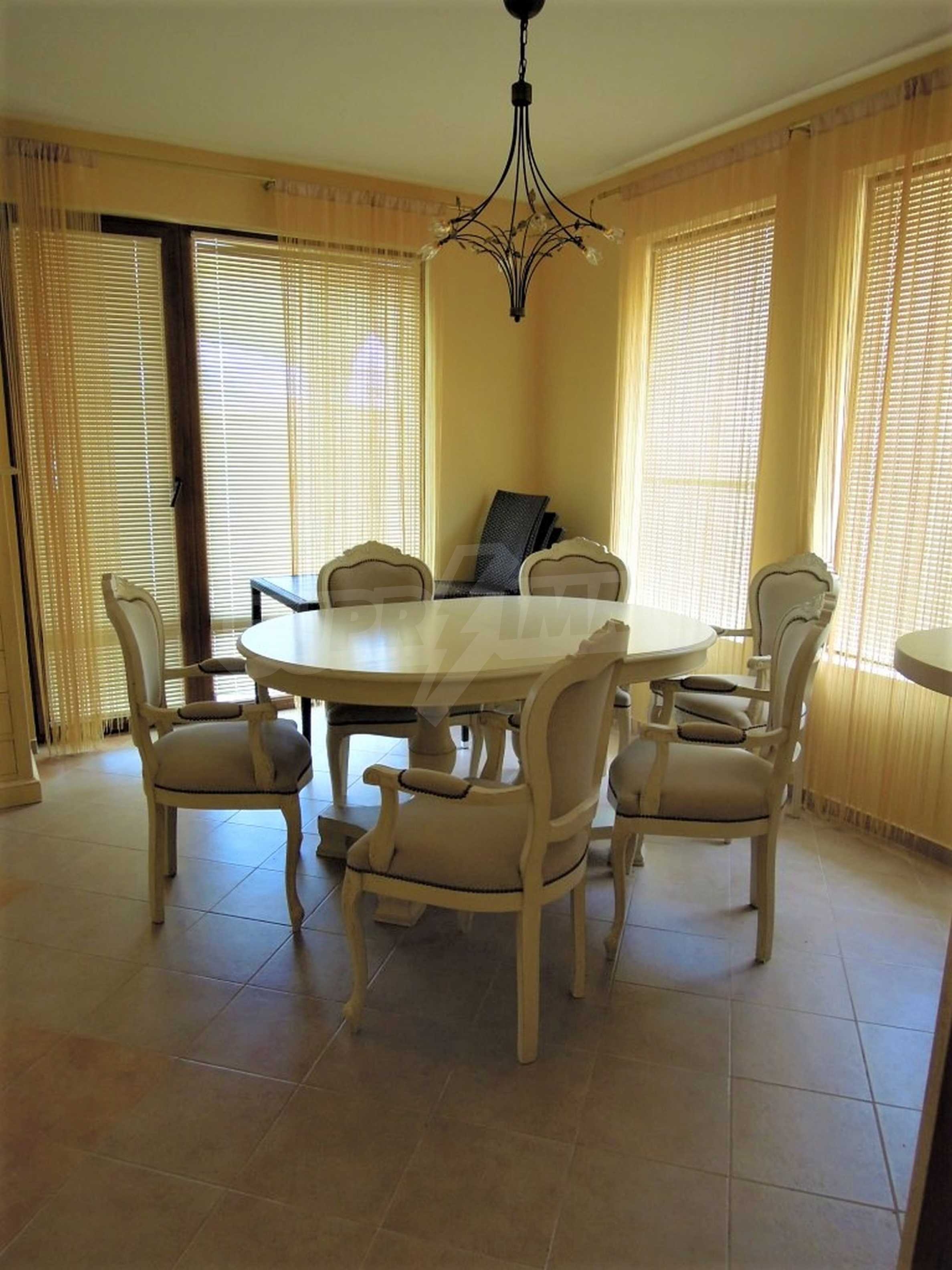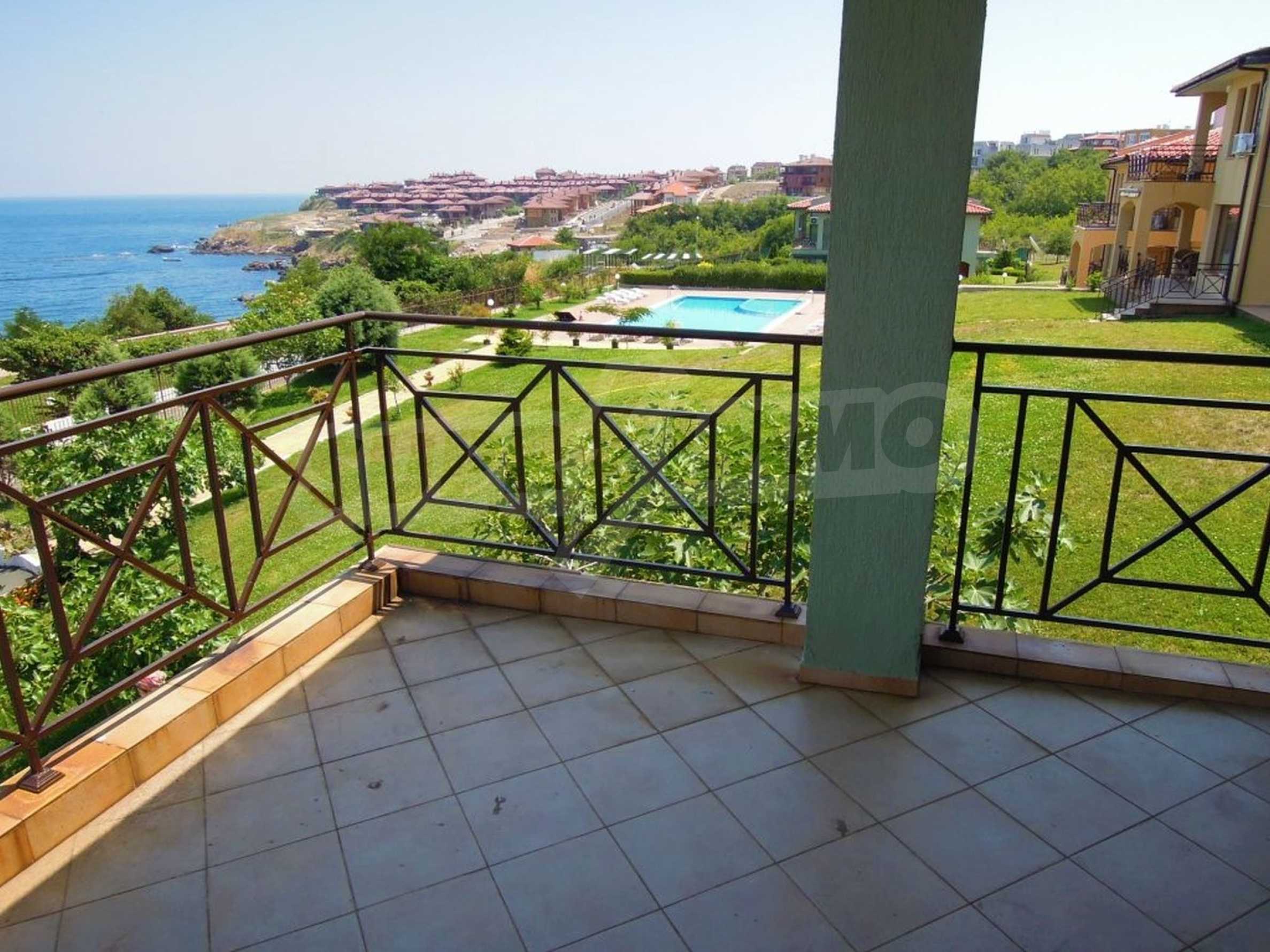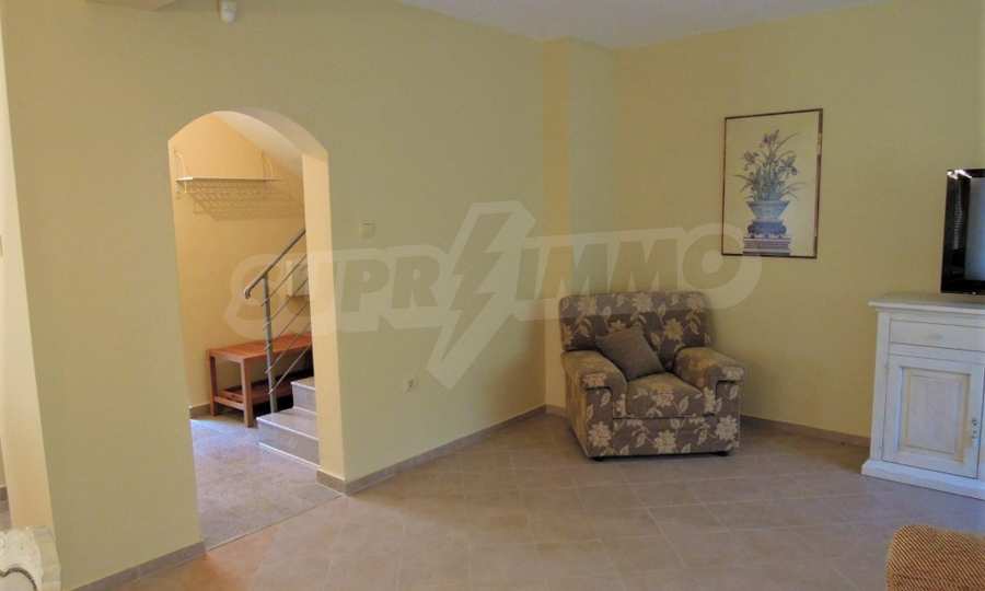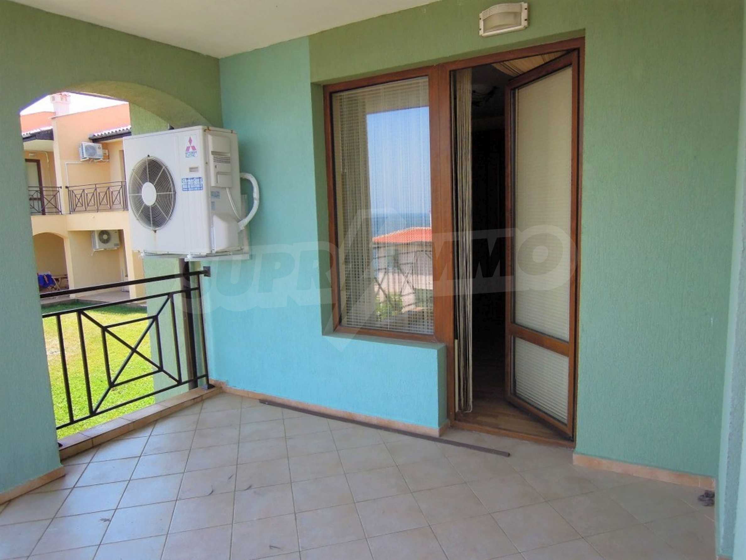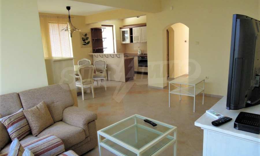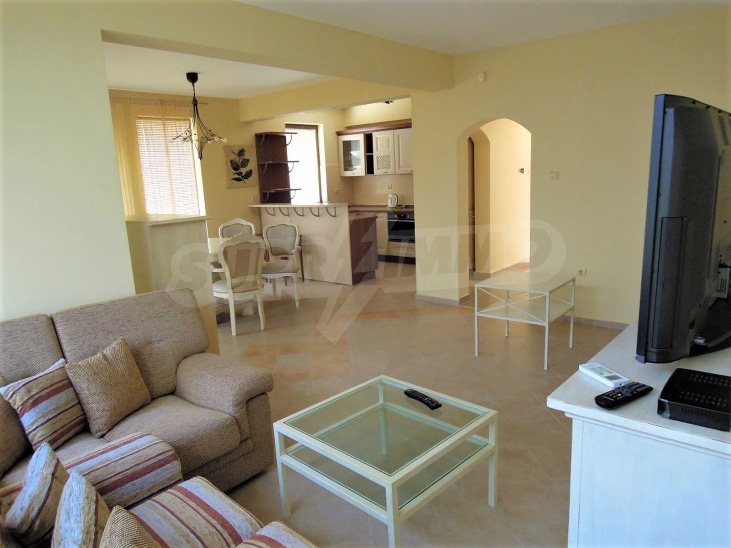 The sunny property is part of a gated complex of houses, located meters from the sea, in the area next to the popular complex "Sozopolis". The area is completely restricted to outsiders, with 24-hour security and free parking for cars. There is an outdoor pool, recreation area and barbecue, lots of greenery and a beach, within walking distance is the new hypermarket LIDL.