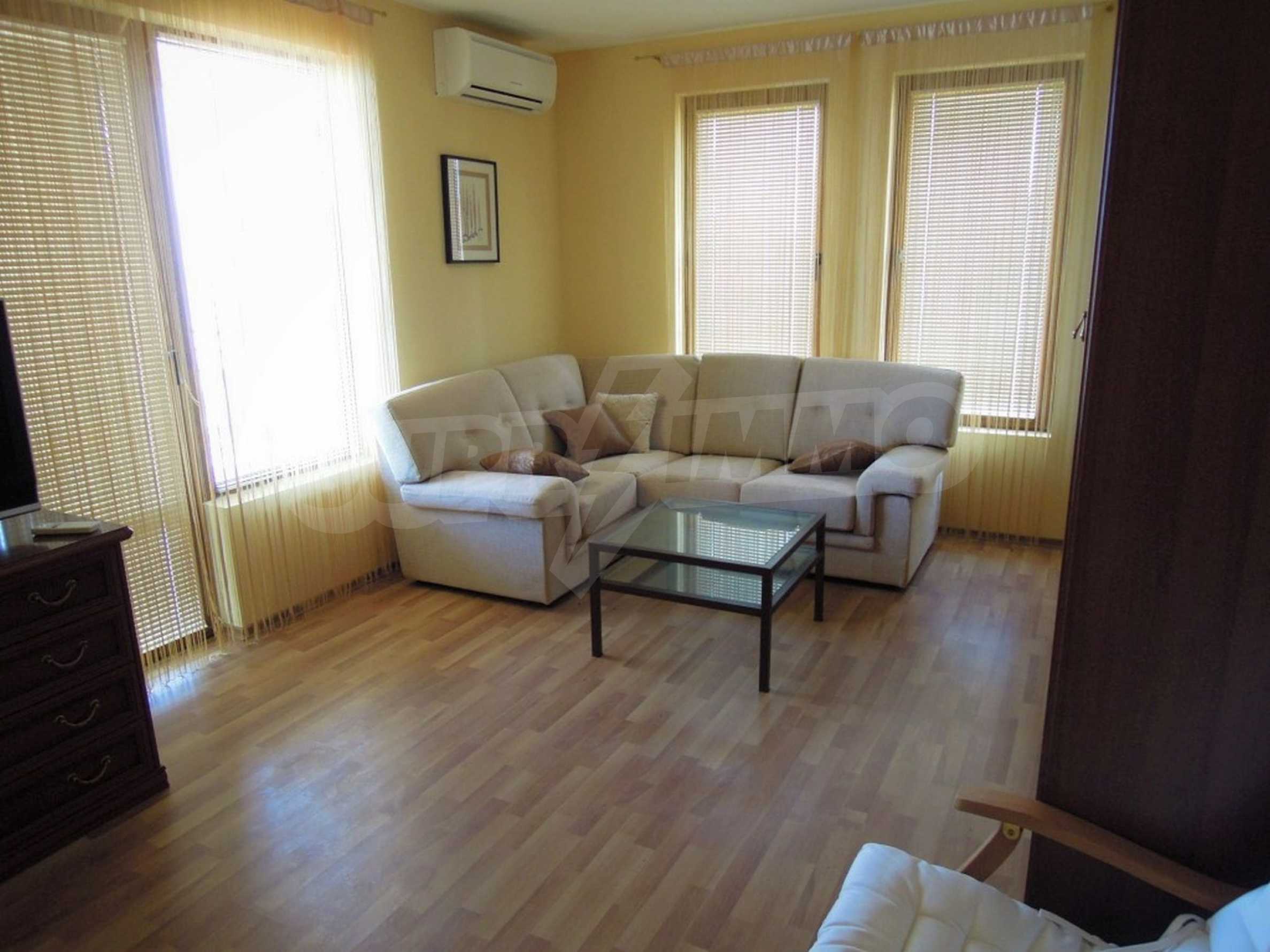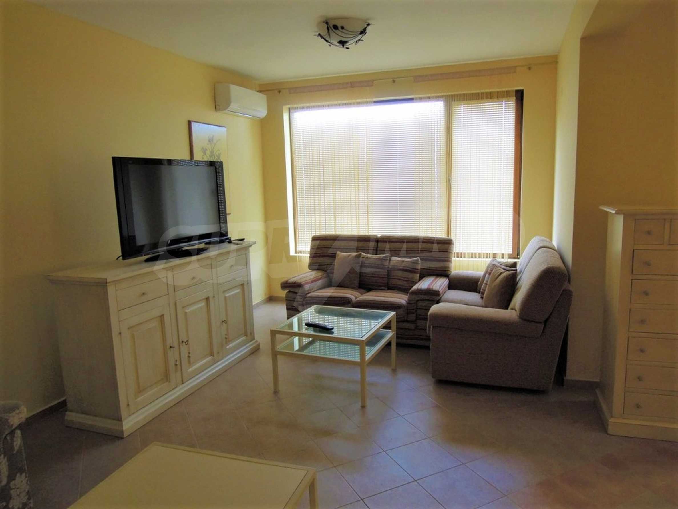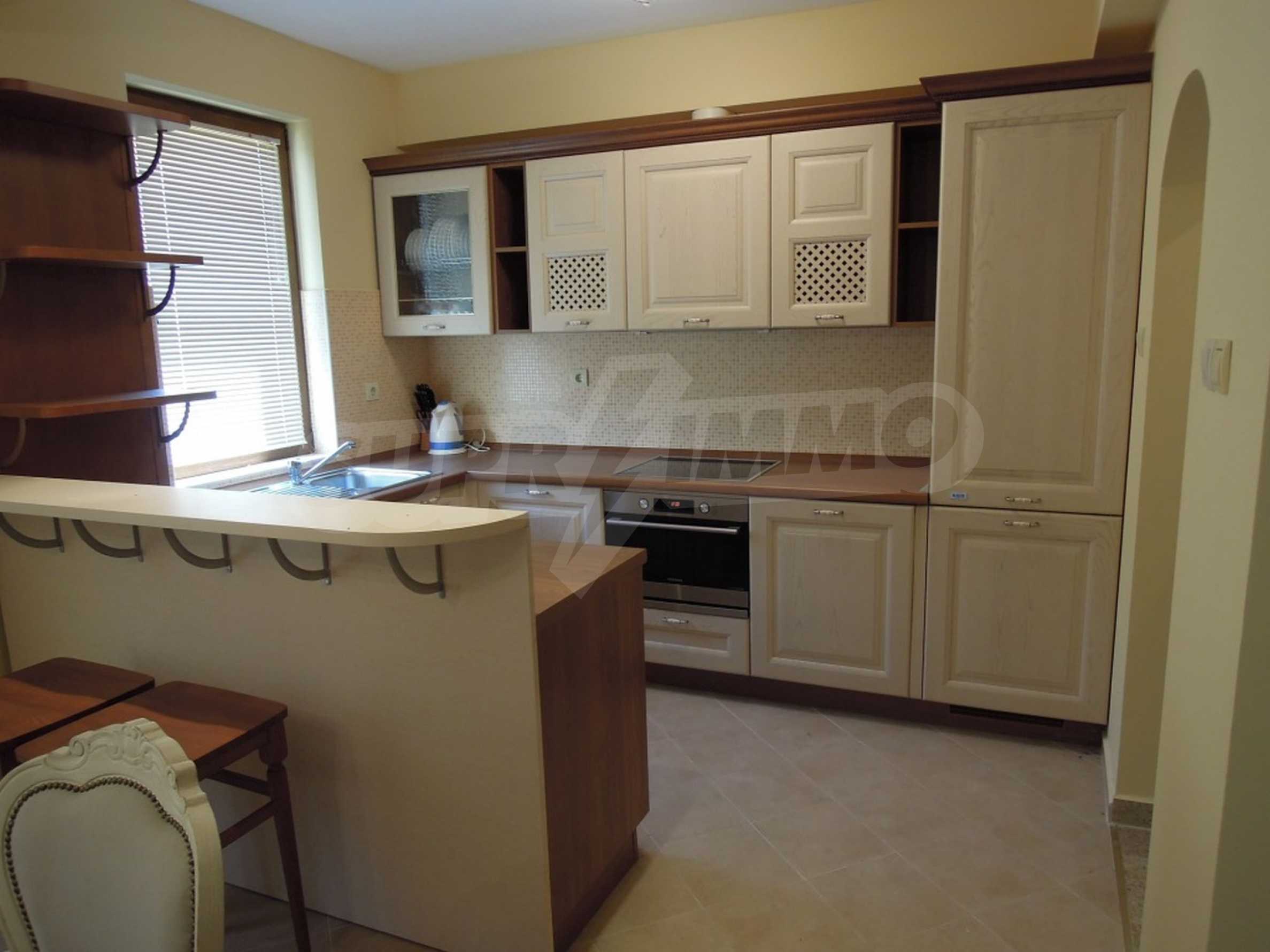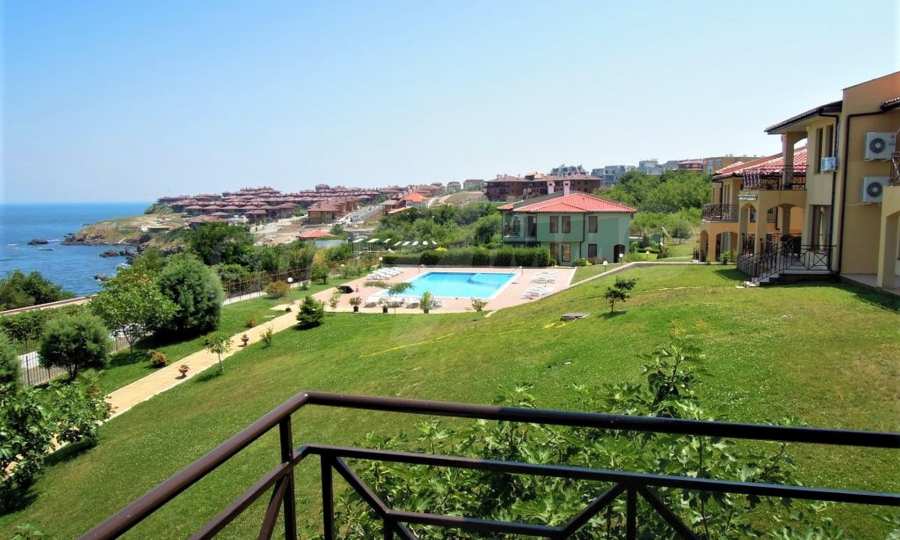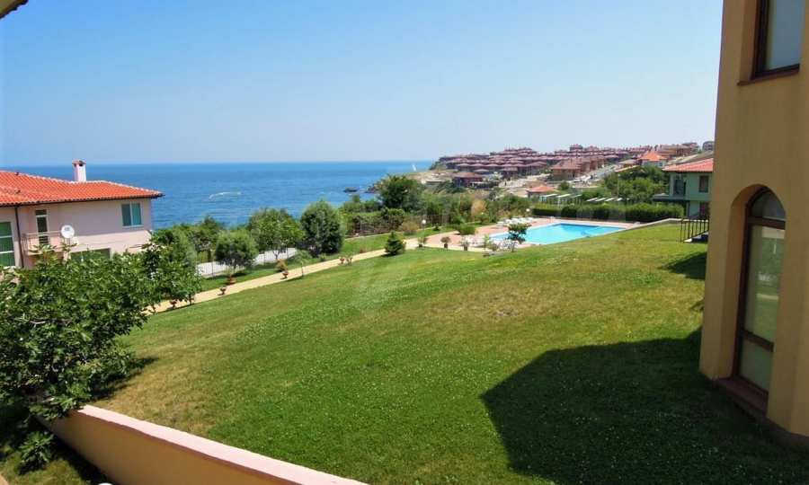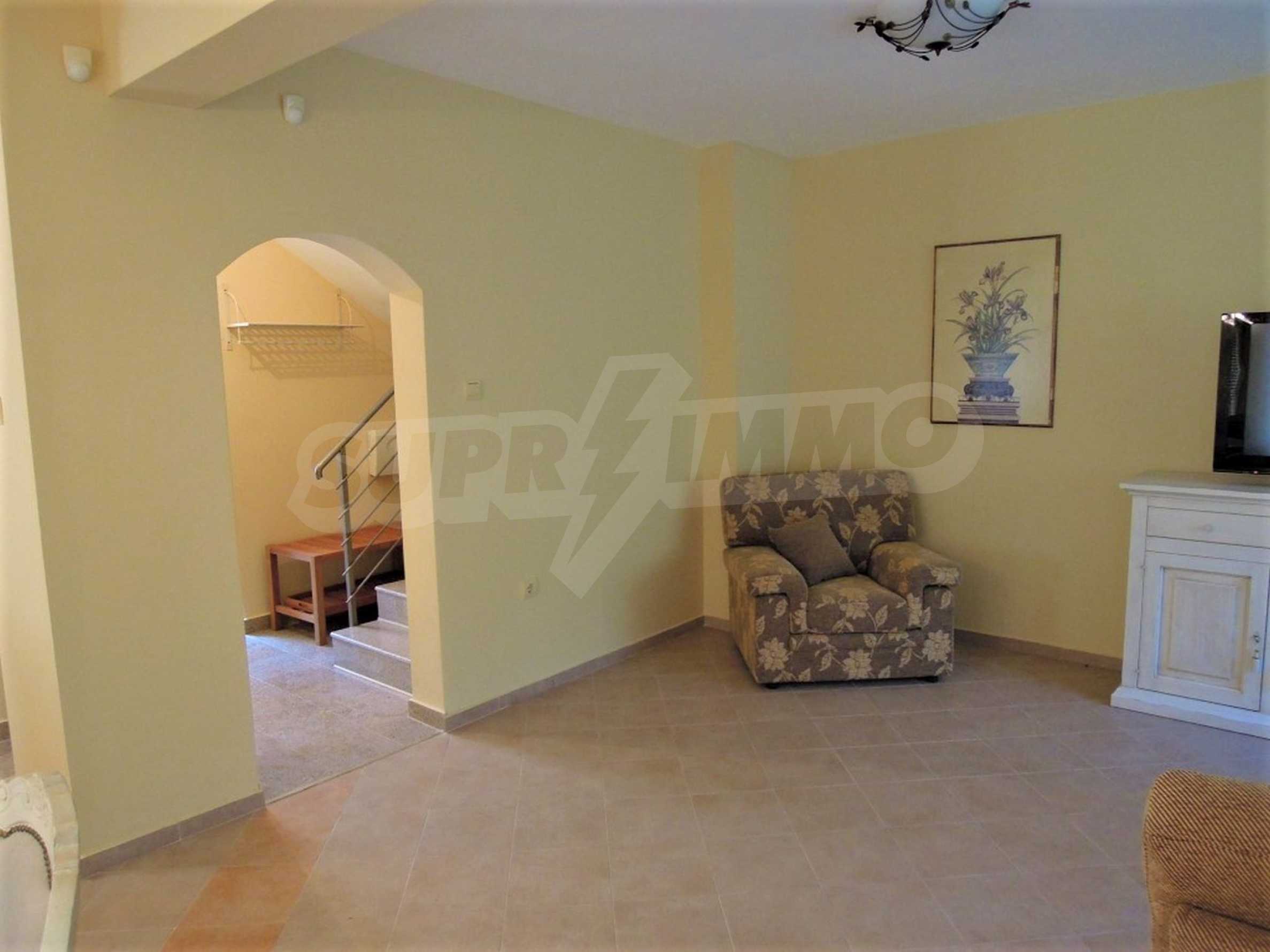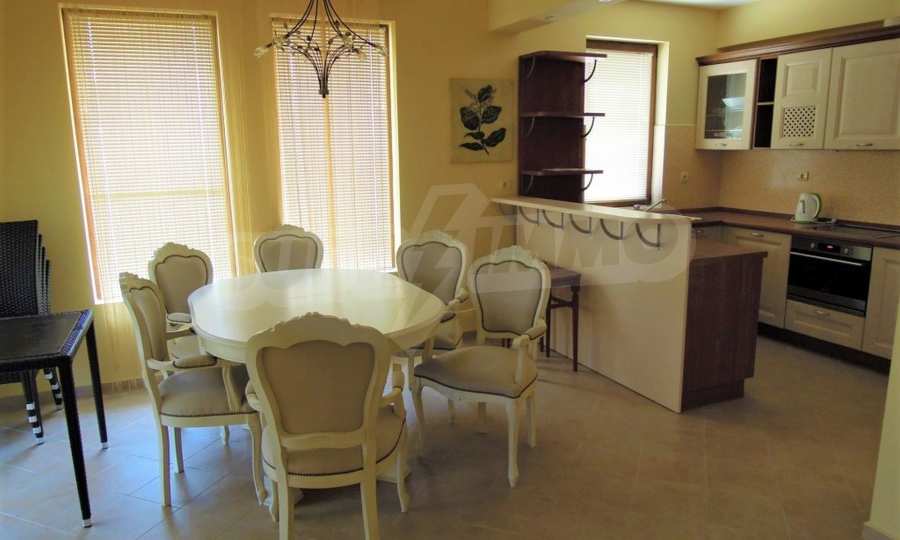 The sunny property is part of a gated complex of houses, located meters from the sea, in the area next to the popular complex "Sozopolis". The area is completely restricted to outsiders, with 24-hour security and free parking for cars. There is an outdoor pool, recreation area and barbecue, lots of greenery and a beach, within walking distance is the new hypermarket LIDL.