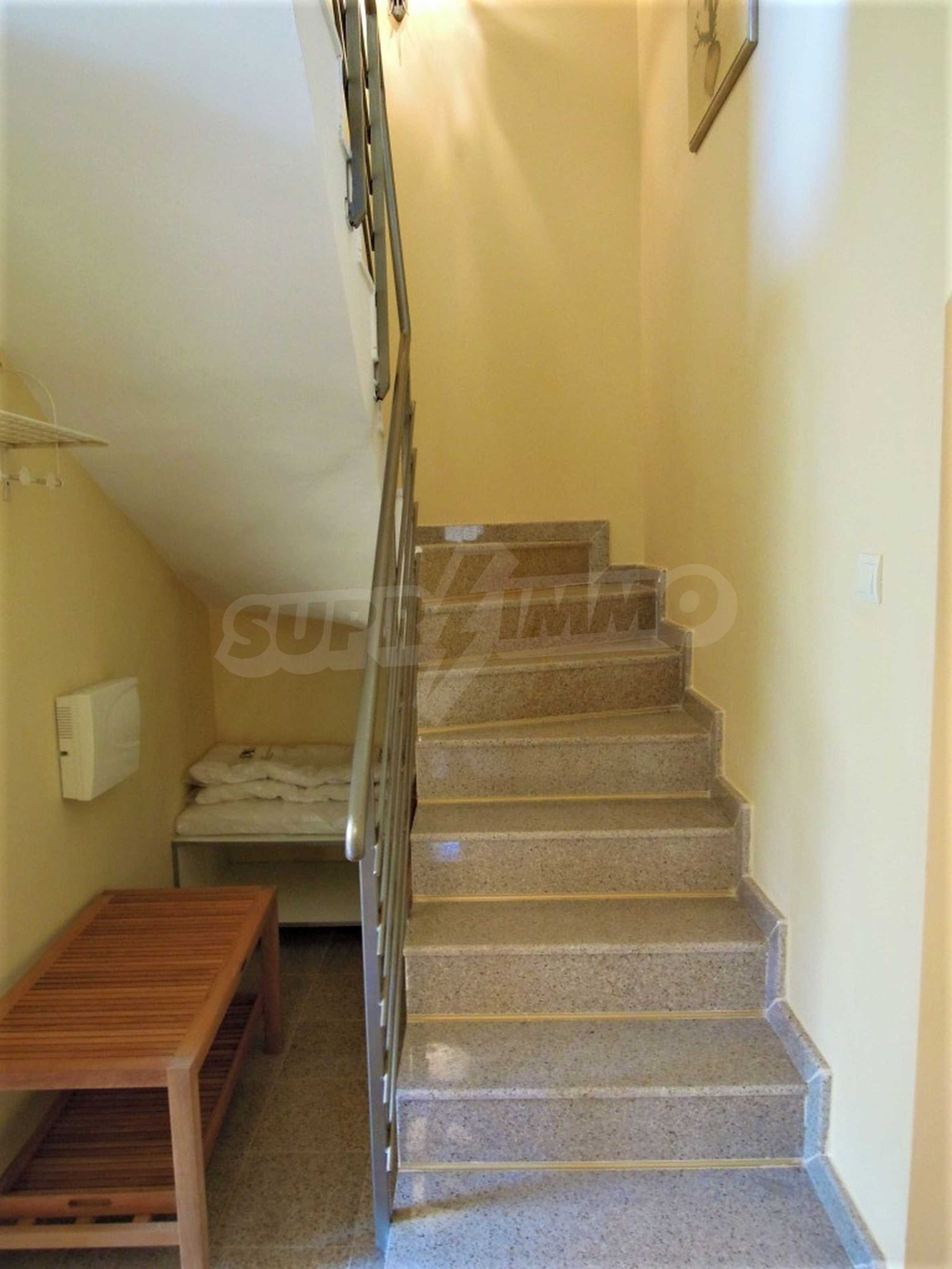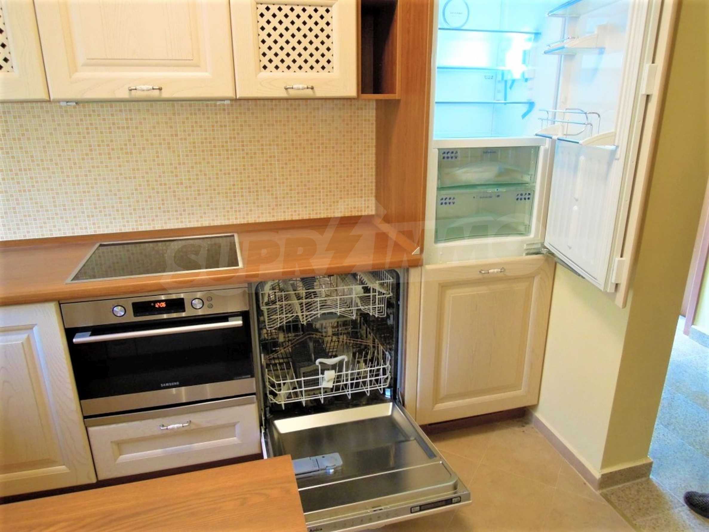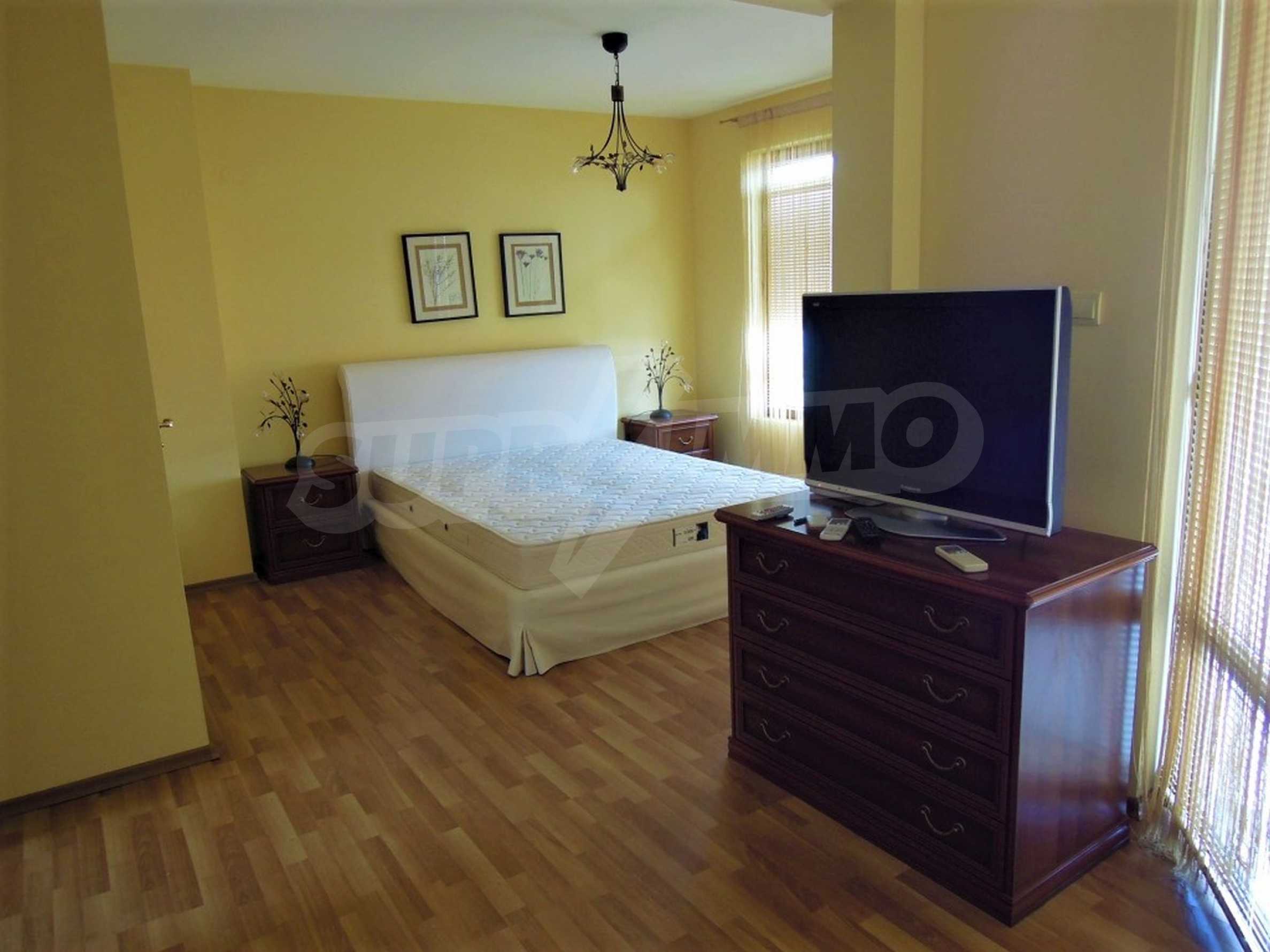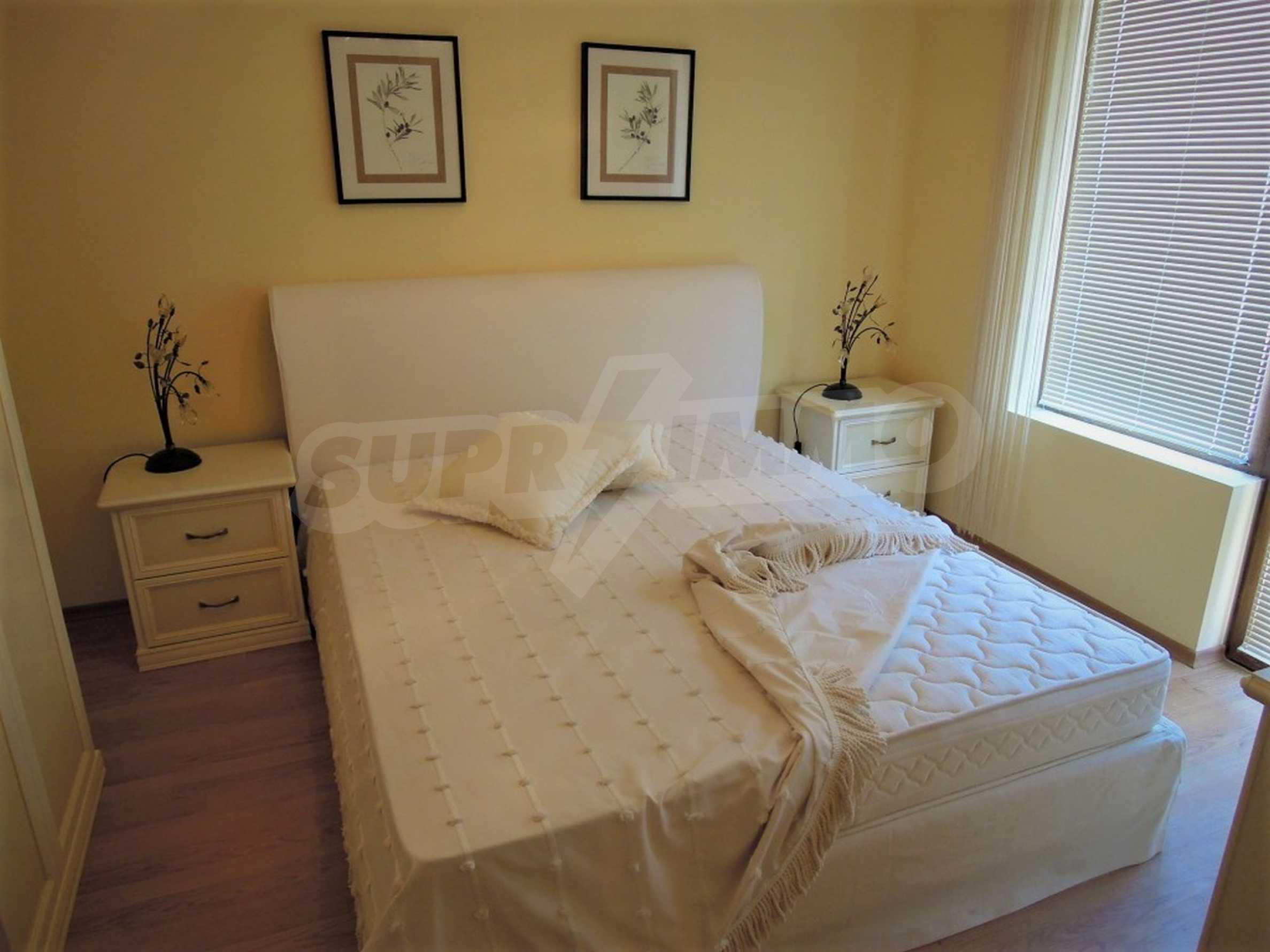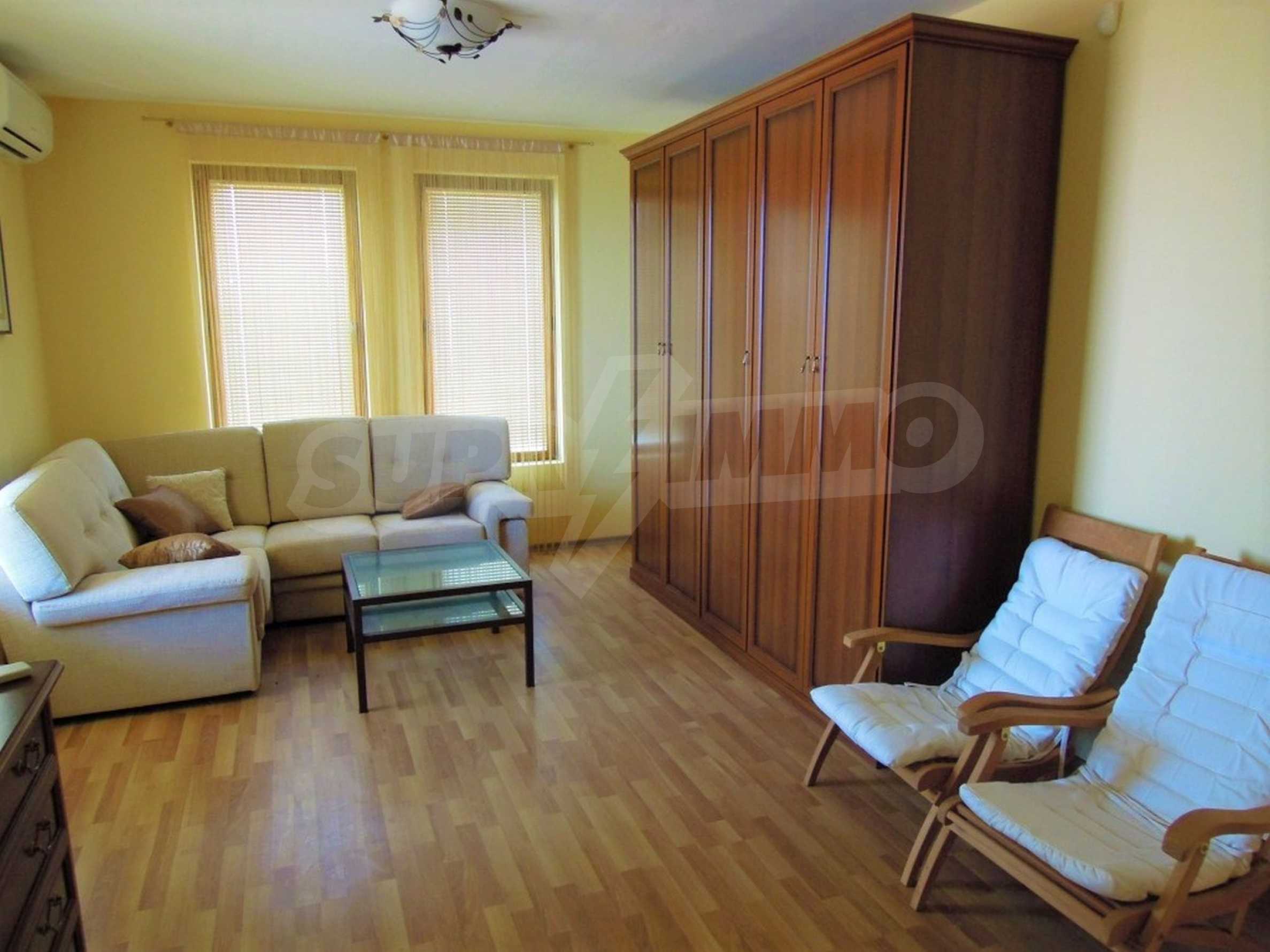 The sunny property is part of a gated complex of houses, located meters from the sea, in the area next to the popular complex "Sozopolis". The area is completely restricted to outsiders, with 24-hour security and free parking for cars. There is an outdoor pool, recreation area and barbecue, lots of greenery and a beach, within walking distance is the new hypermarket LIDL.