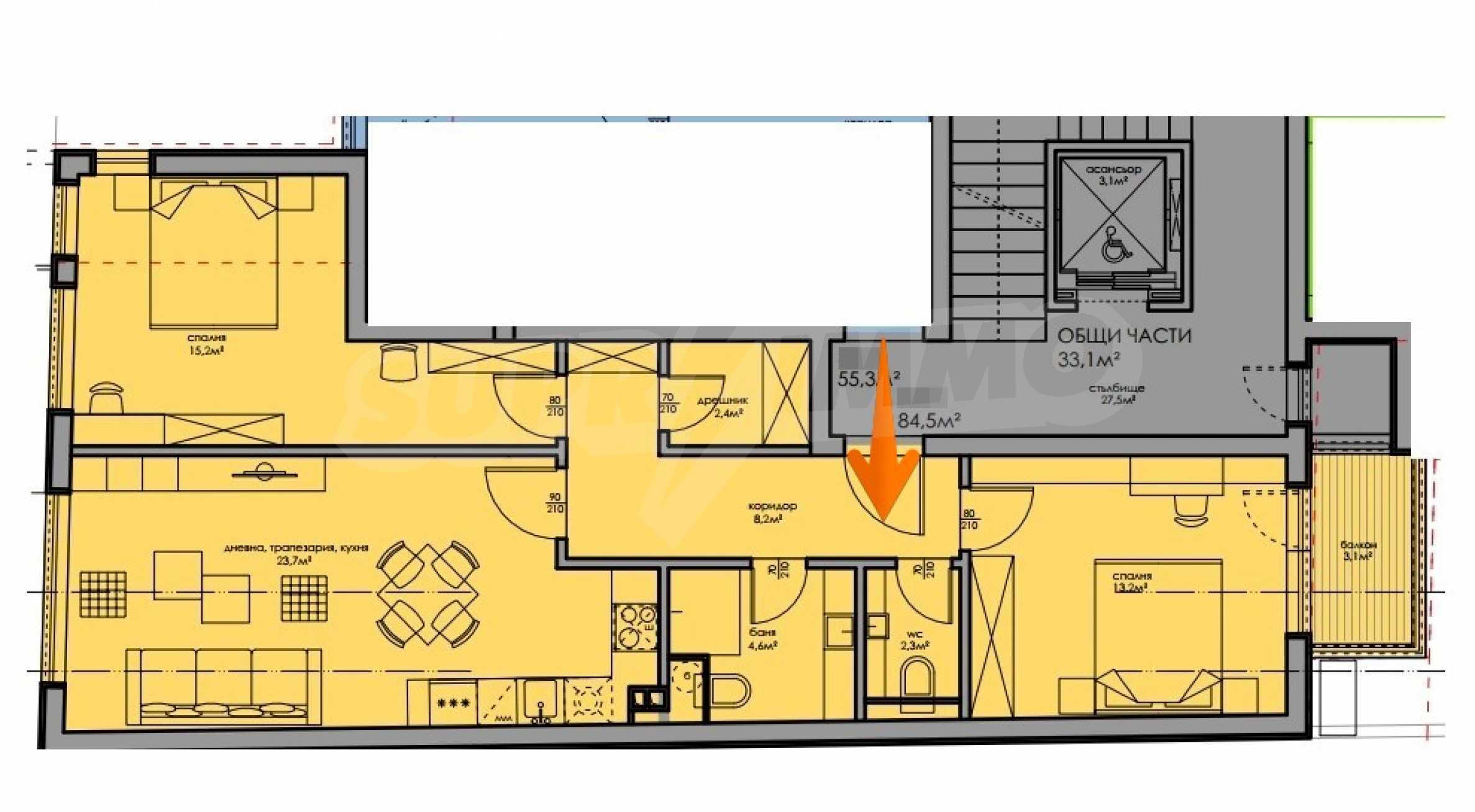 The apartment is issued according to Bulgarian state standard (plaster and putty).