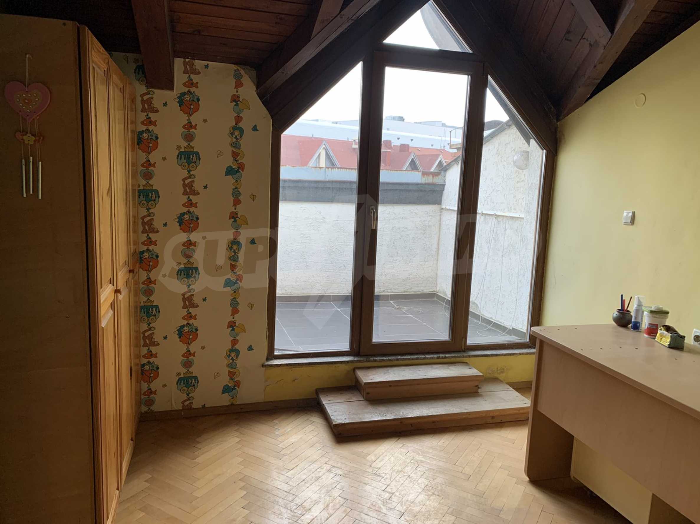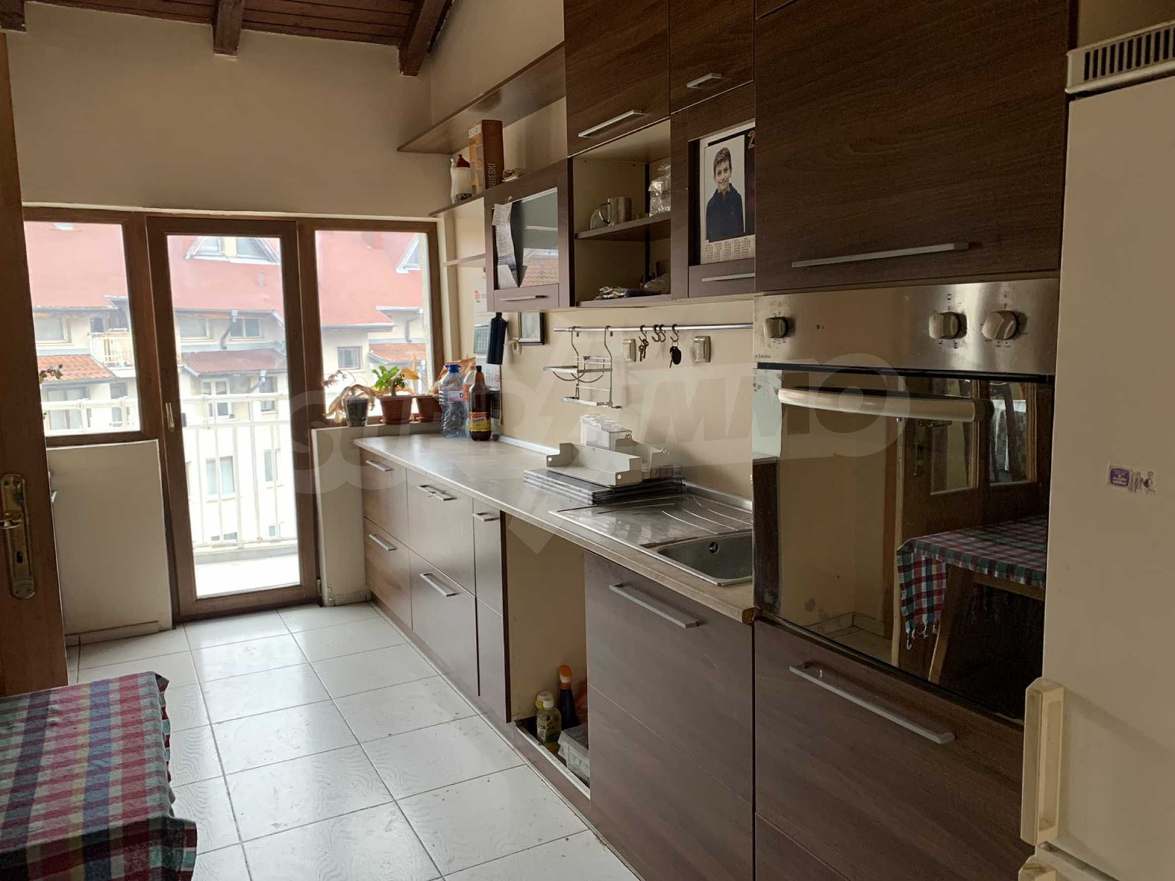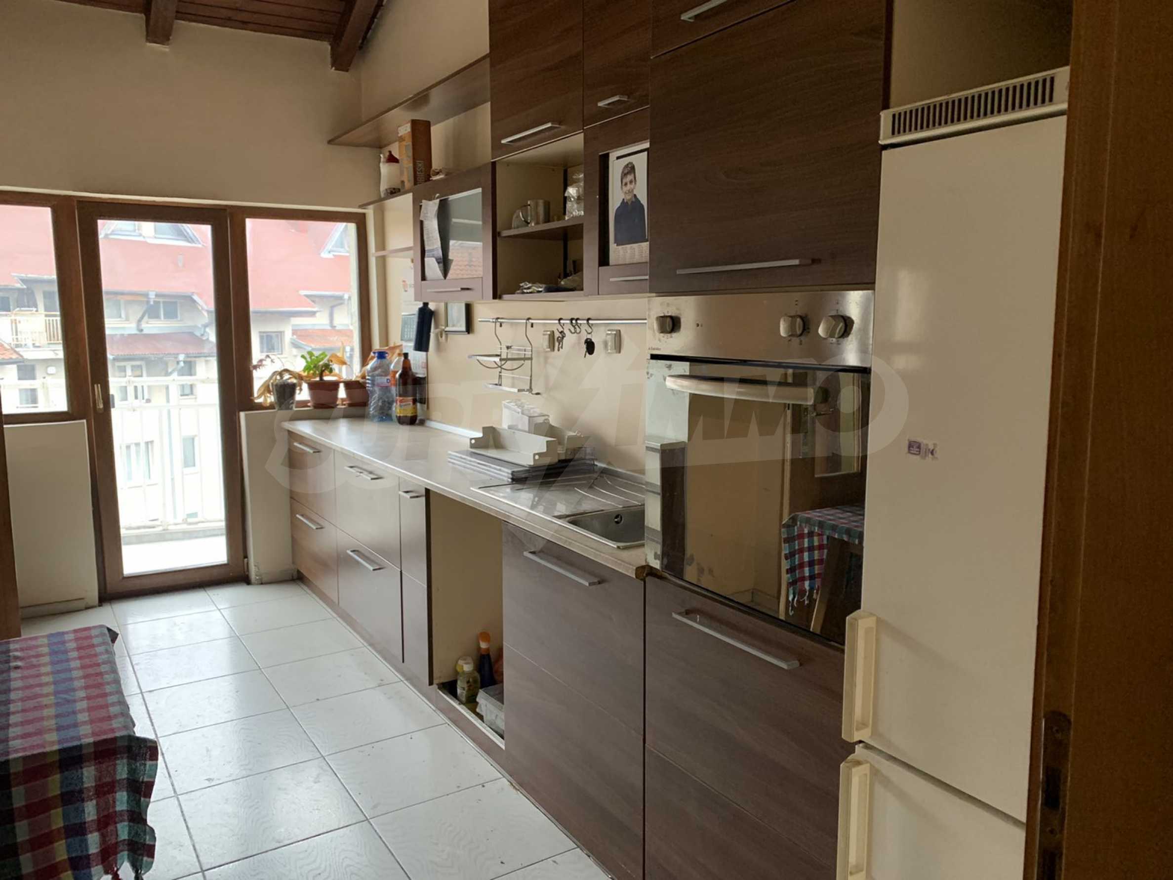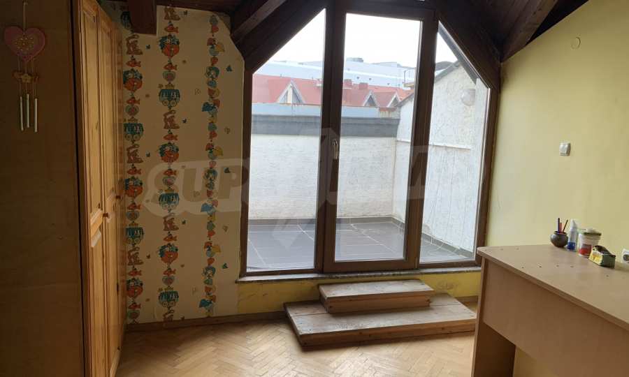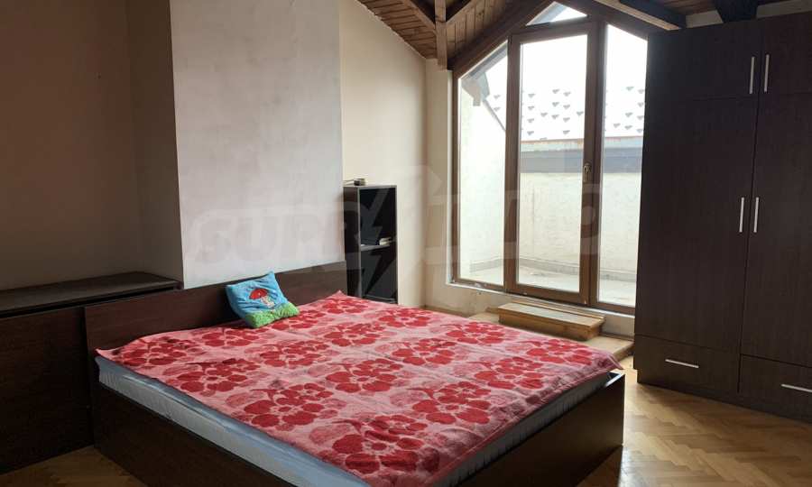 The building is brick since 1996, with an elevator. The apartment is on two levels, with large, bright and spacious rooms. All rooms have a large panoramic terrace, which provides beautiful views of both Vitosha Mountain and the city. The kitchen and dining room are facing south, and the other rooms are very bright and warm, which helps to realize low energy costs. The apartment has five-chamber windows. The flooring is parquet in the rooms and terracotta in the bathrooms.