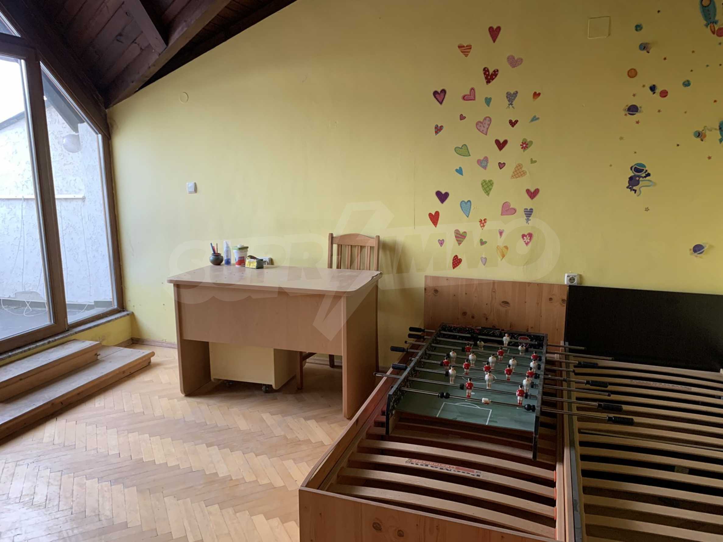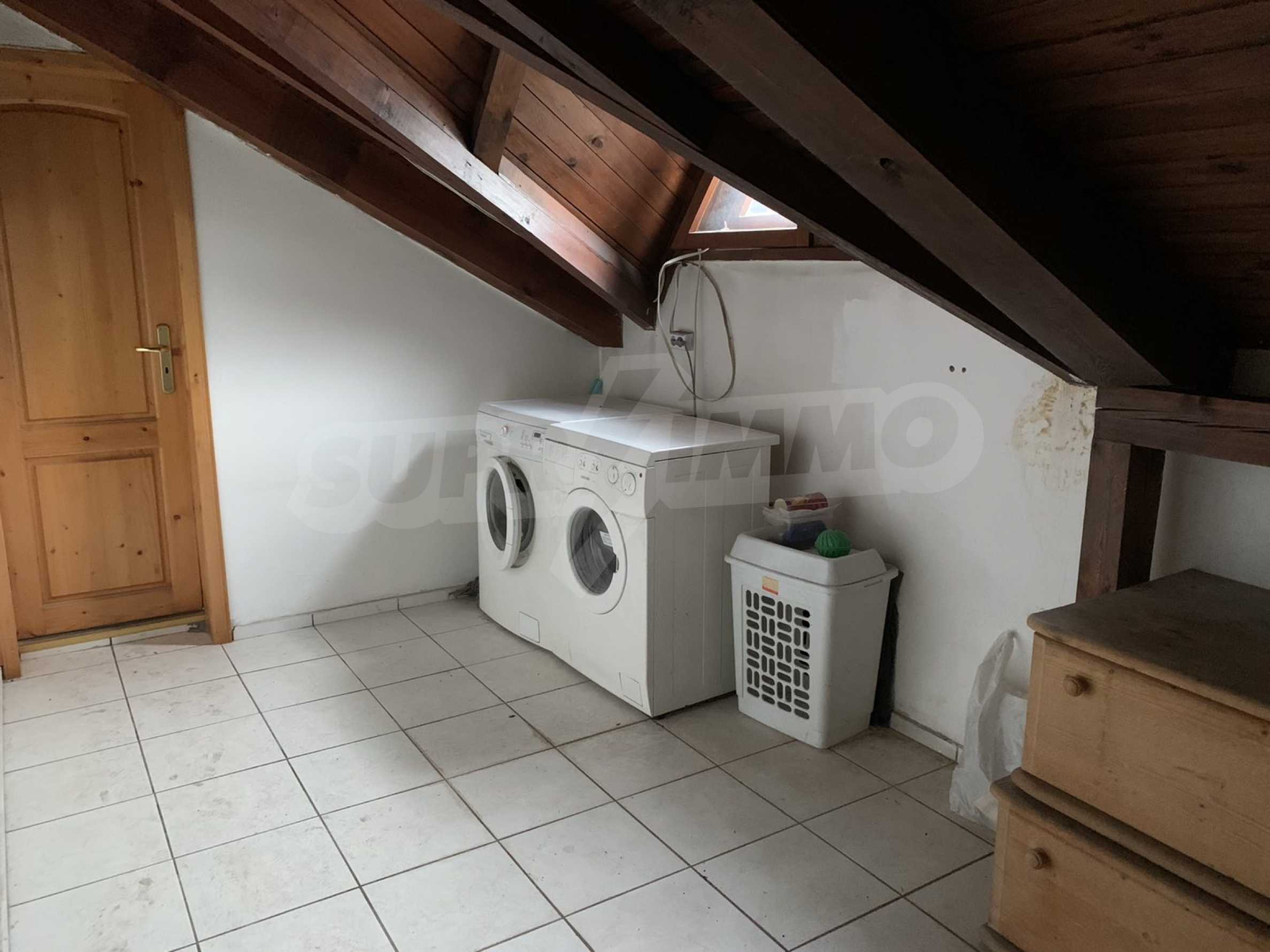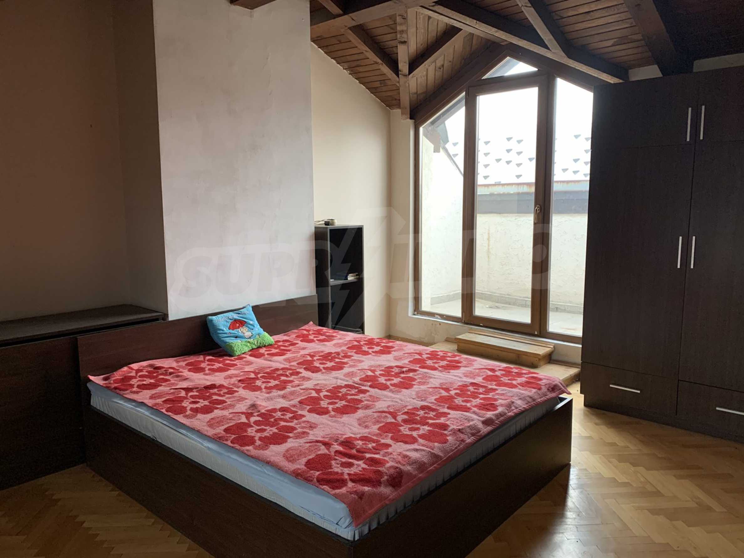 The building is brick since 1996, with an elevator. The apartment is on two levels, with large, bright and spacious rooms. All rooms have a large panoramic terrace, which provides beautiful views of both Vitosha Mountain and the city. The kitchen and dining room are facing south, and the other rooms are very bright and warm, which helps to realize low energy costs. The apartment has five-chamber windows. The flooring is parquet in the rooms and terracotta in the bathrooms.