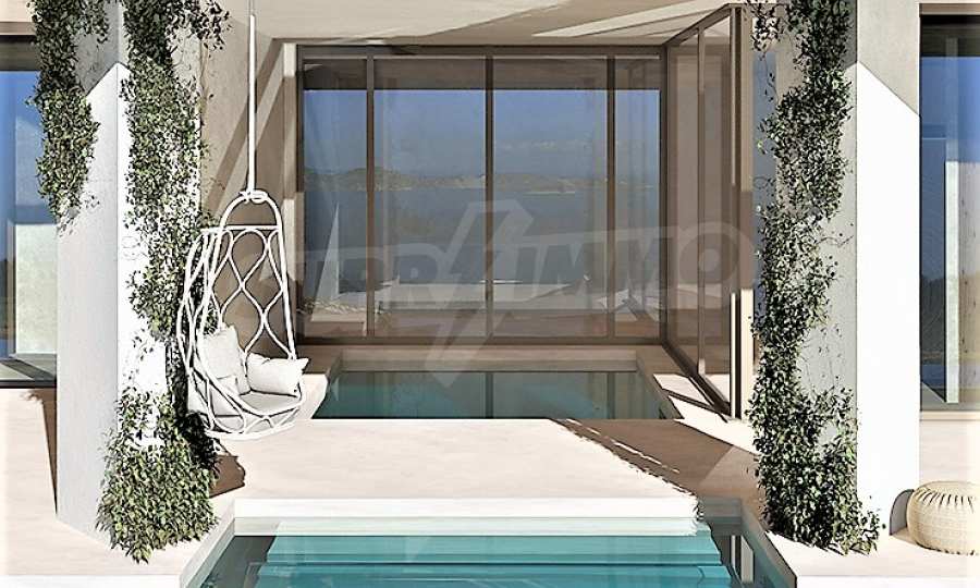 Comfortable and fully furnished rooms with panoramic views of the sea and Marathonisi Island. Elegantly designed terrace around the pool and amazing green areas. Villa Gaia, designed for people who have a sweet dream to merge with the beautiful island of Zakynthos. The color palette of this project does not scream, but whispers. It flows, floats, merges with the surrounding landscape and becomes part of it. Only soft, smooth and calm shades.