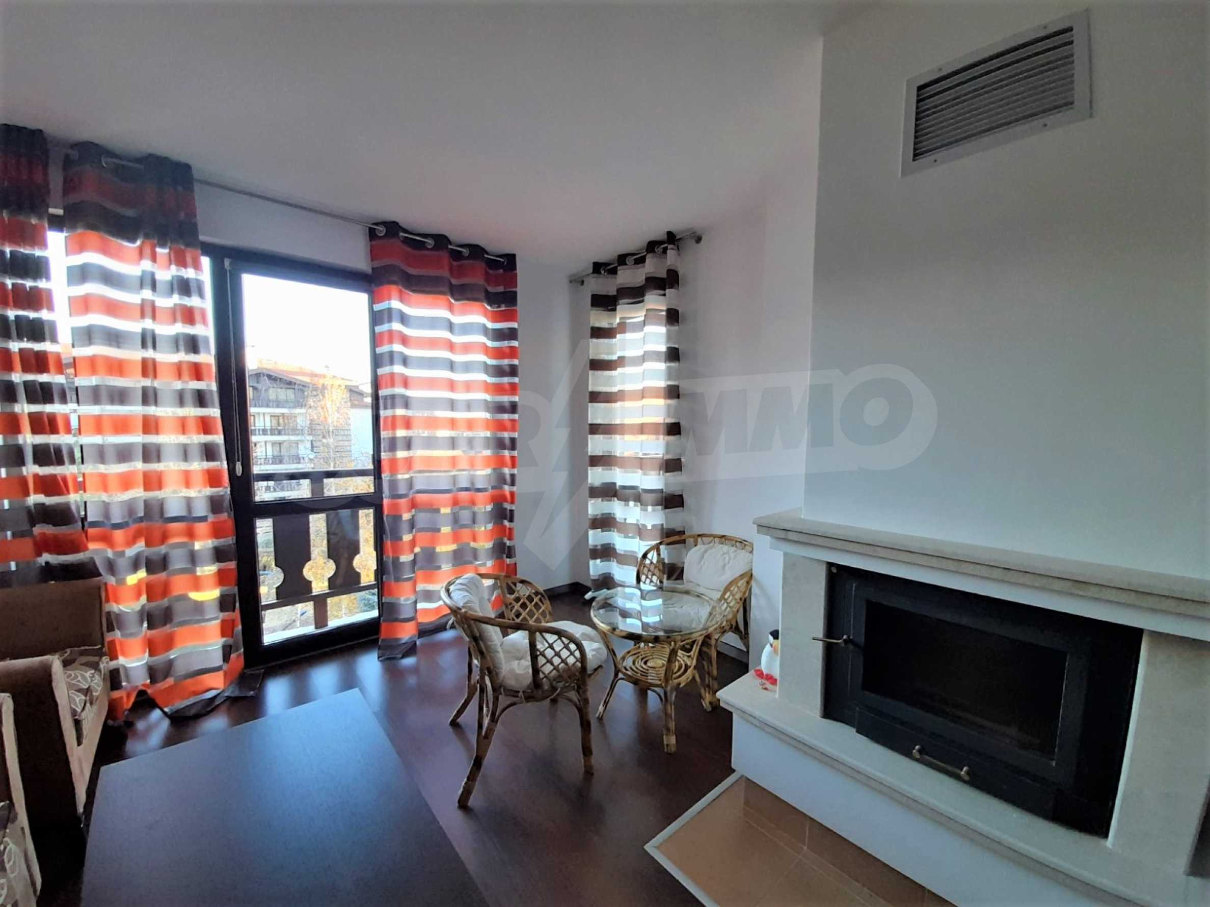 Fully furnished two-bedroom apartment located in a gated complex Winslow Infinity, near the Pirin National Park and the starting station of the gondola. The apartment is located on the third floor. The rooms are finished with walls - latex, floors - laminate and terracotta and PVC windows. Distribution: corridor, spacious kitchen with living room and fireplace, terrace overlooking the courtyard, two bedrooms, two bathrooms. The apartment is suitable for investment or year-round living.