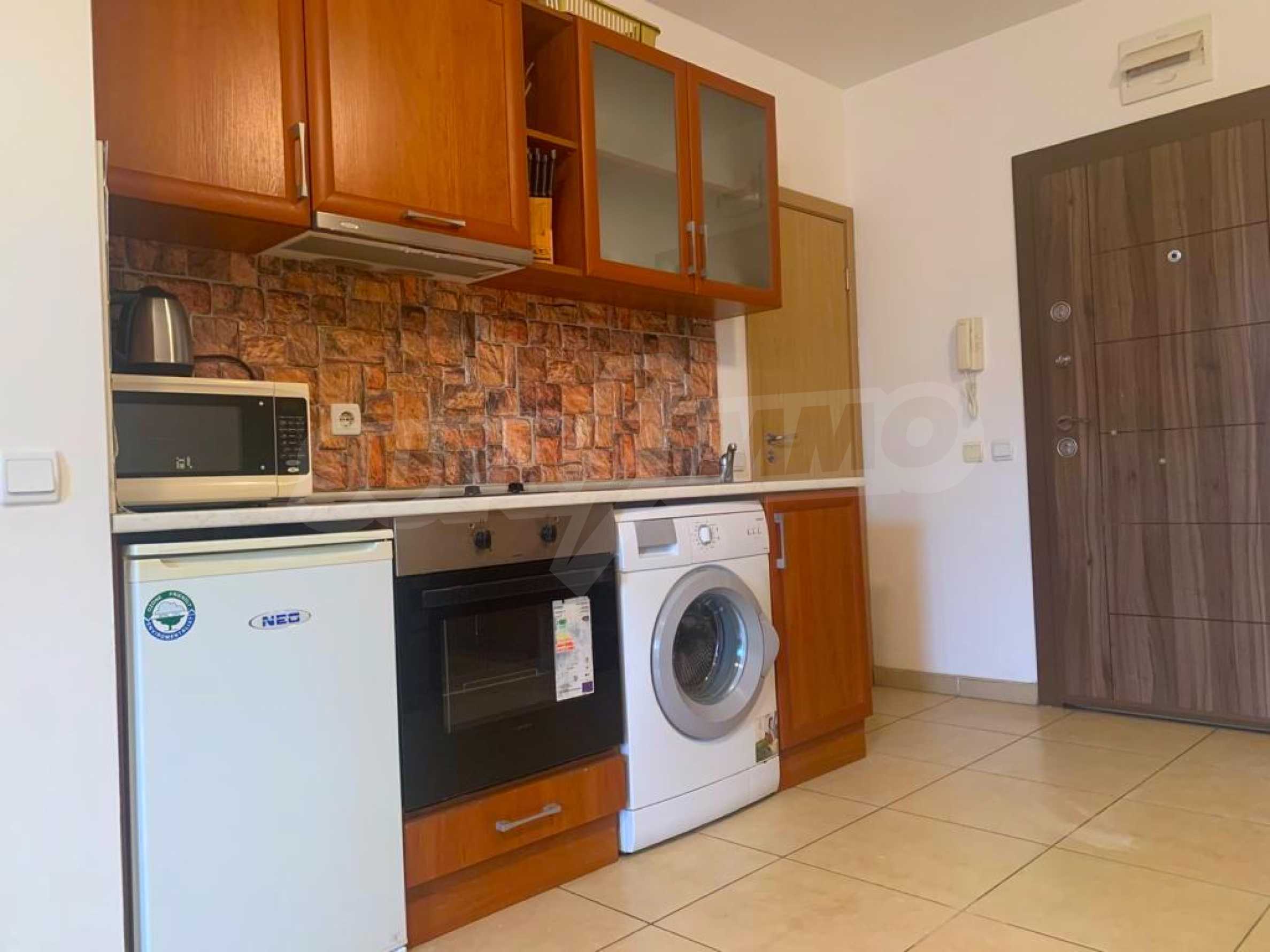 The apartment is in good condition, fully equipped with furniture and appliances. It consists of a bedroom, living room with kitchenette, bathroom and separate toilet, large terrace overlooking the park.