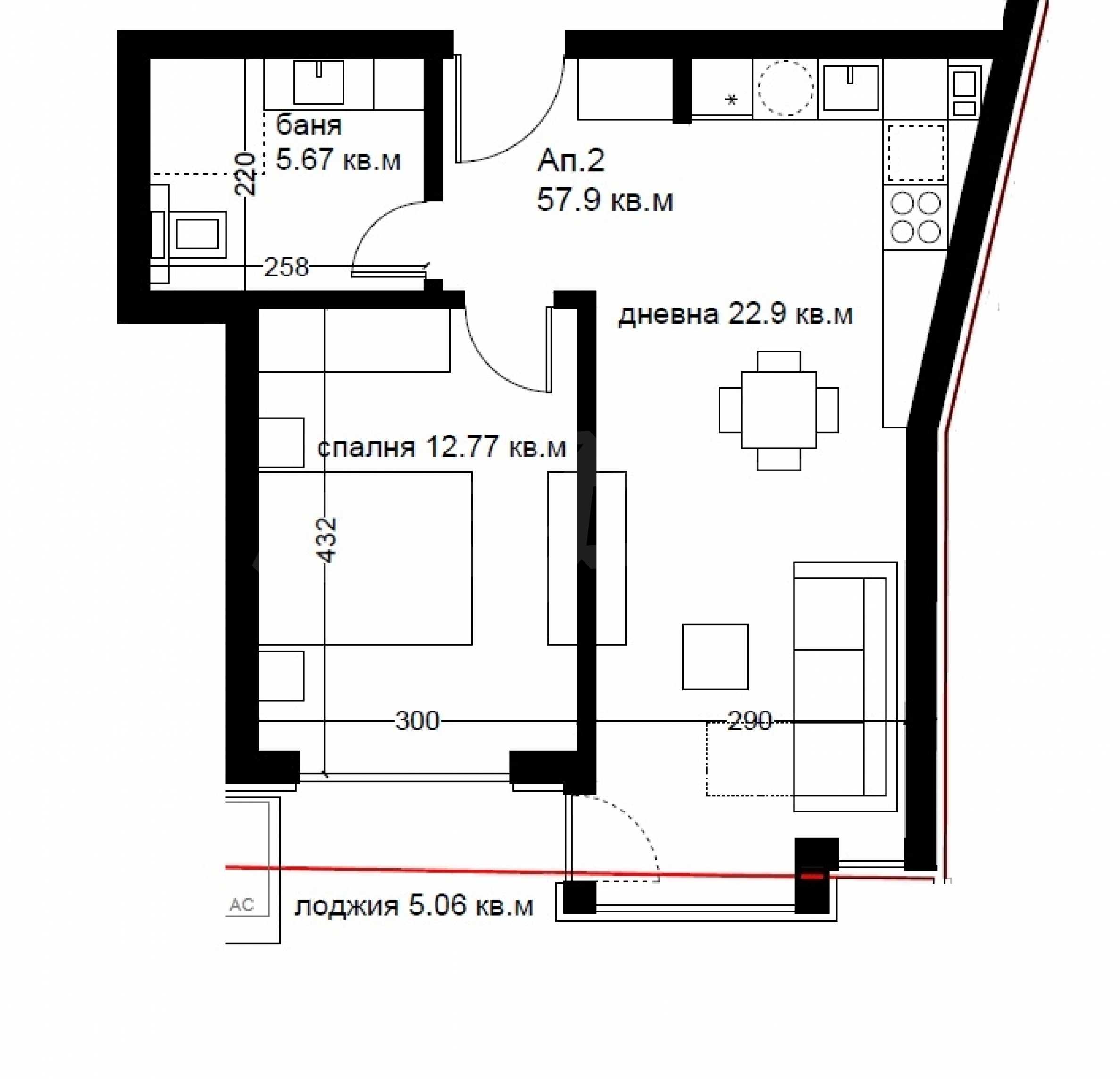 We present to you a new one-bedroom apartment of 66.6 m2, which will be located on the 6th floor in Section "B" in the new complex in Varna.